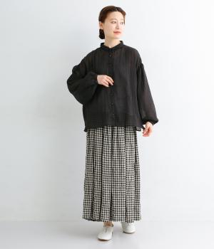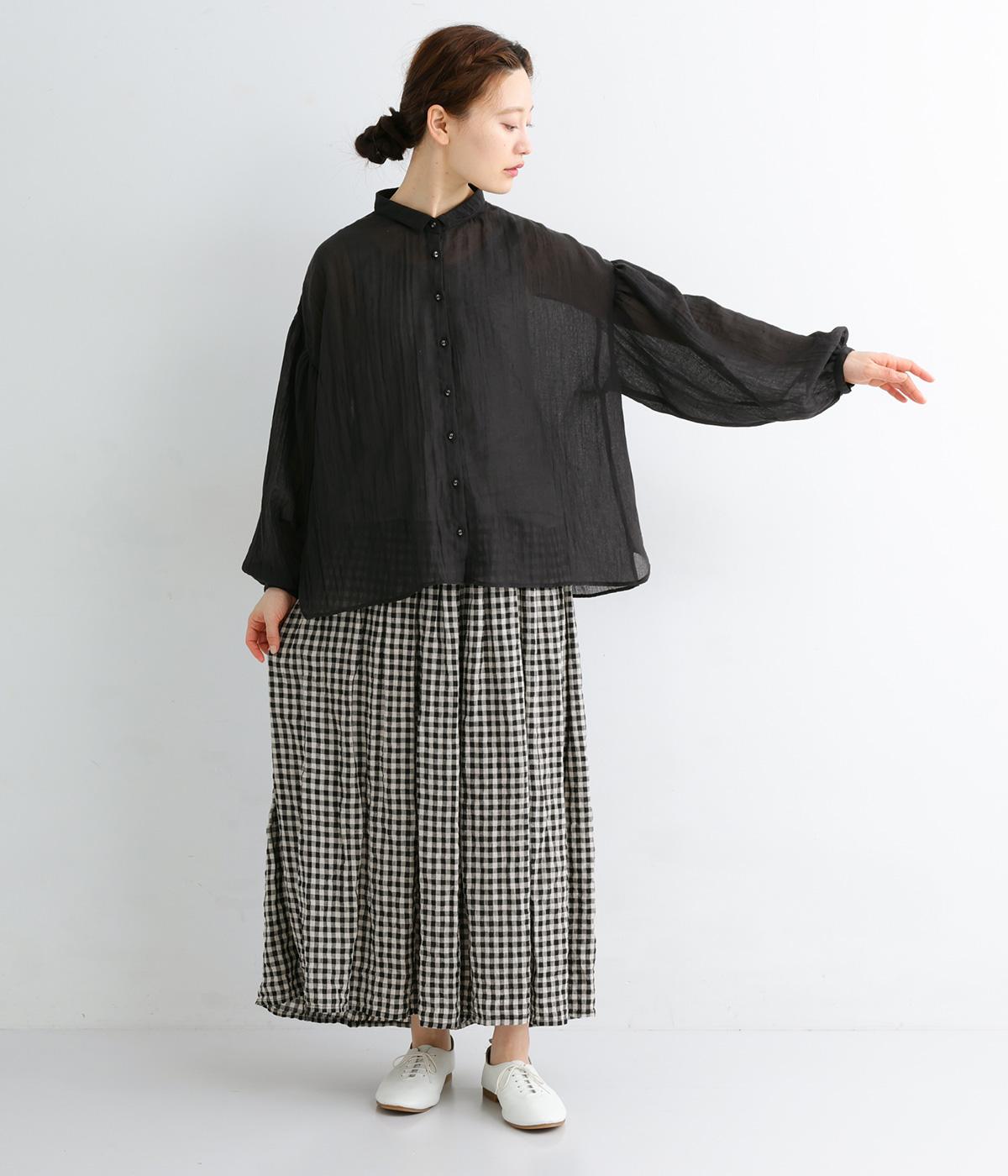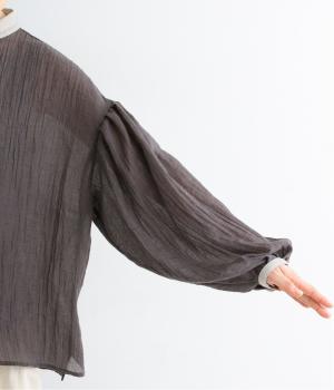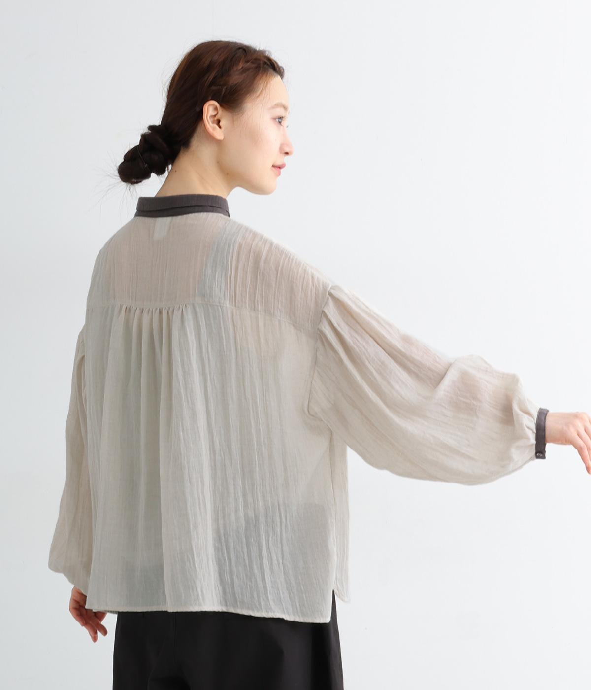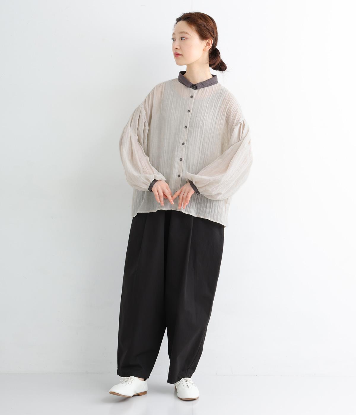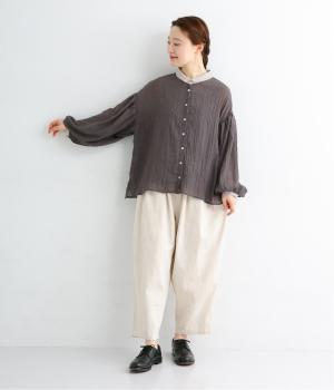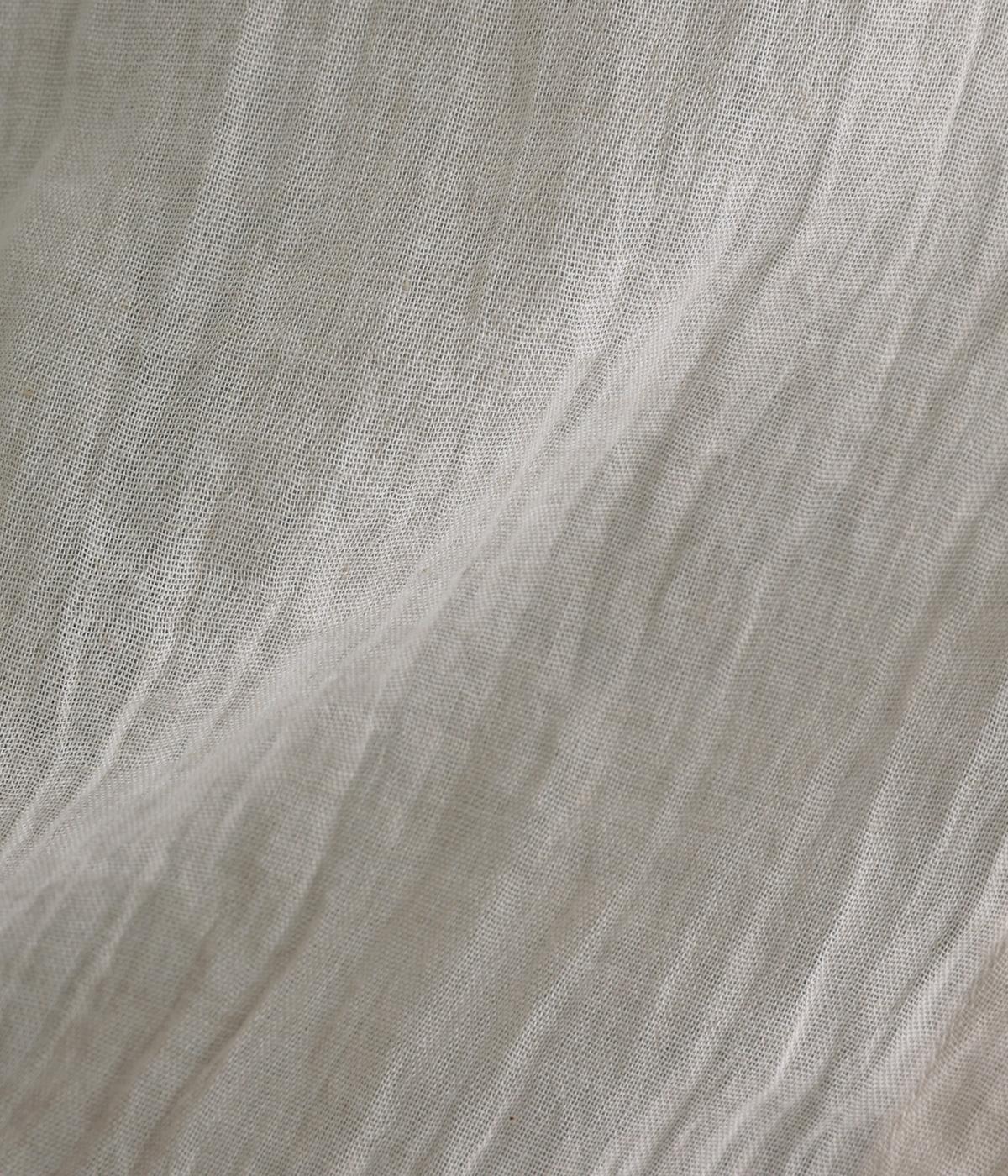 適度なシアー感のある、やわらかくて軽いガーゼ素材を採用。肌に触れるたびに癒されるような心地よい生地です。自然なシワのある表情が、コーディネートに奥行きをプラスします。