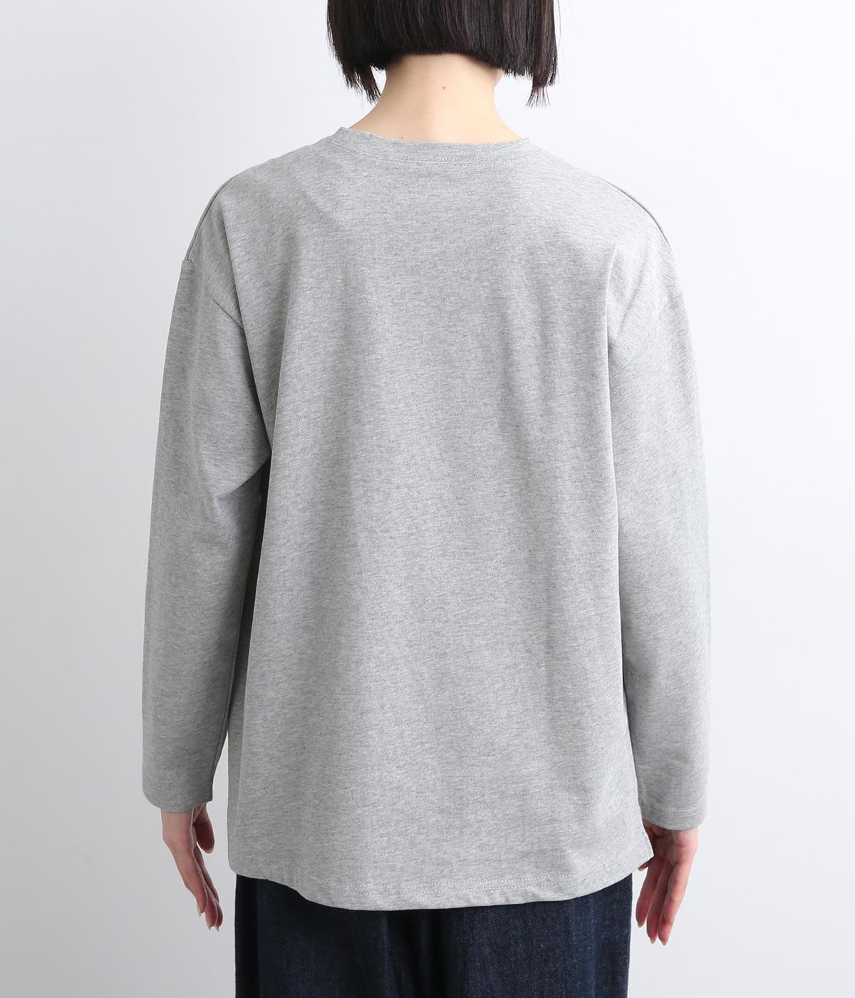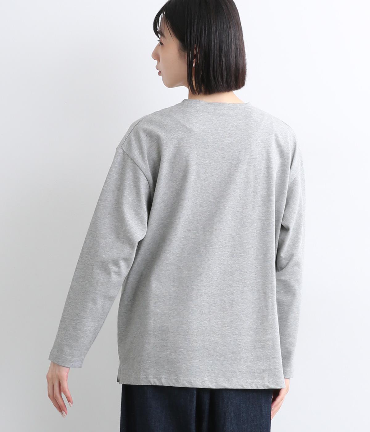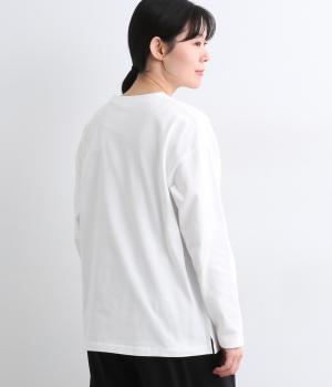 目の詰まった強撚コットンフライスを使用しています。薄めの中厚手ながらしっかりとした肉感があり、一枚着でもシルエットが決まる生地感です。