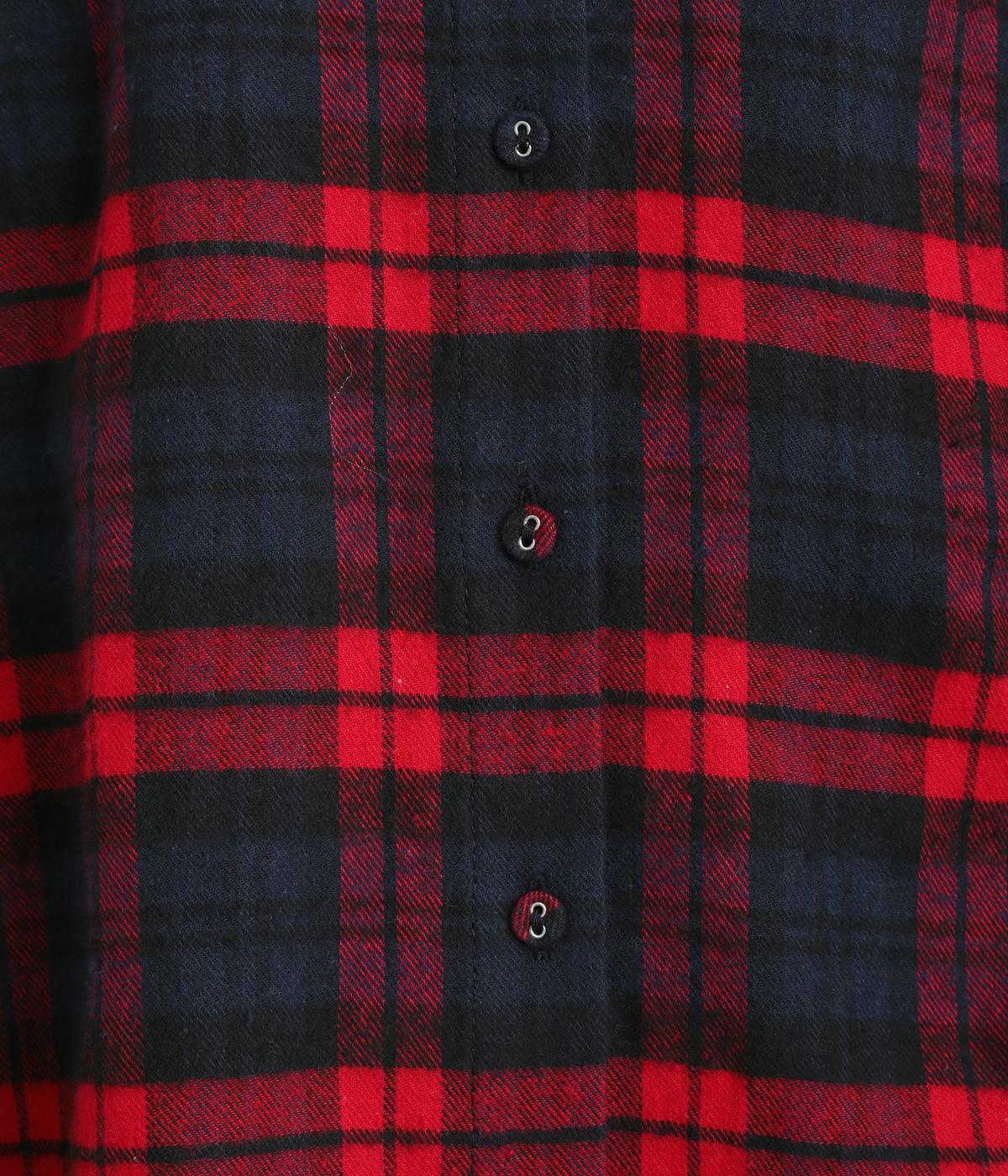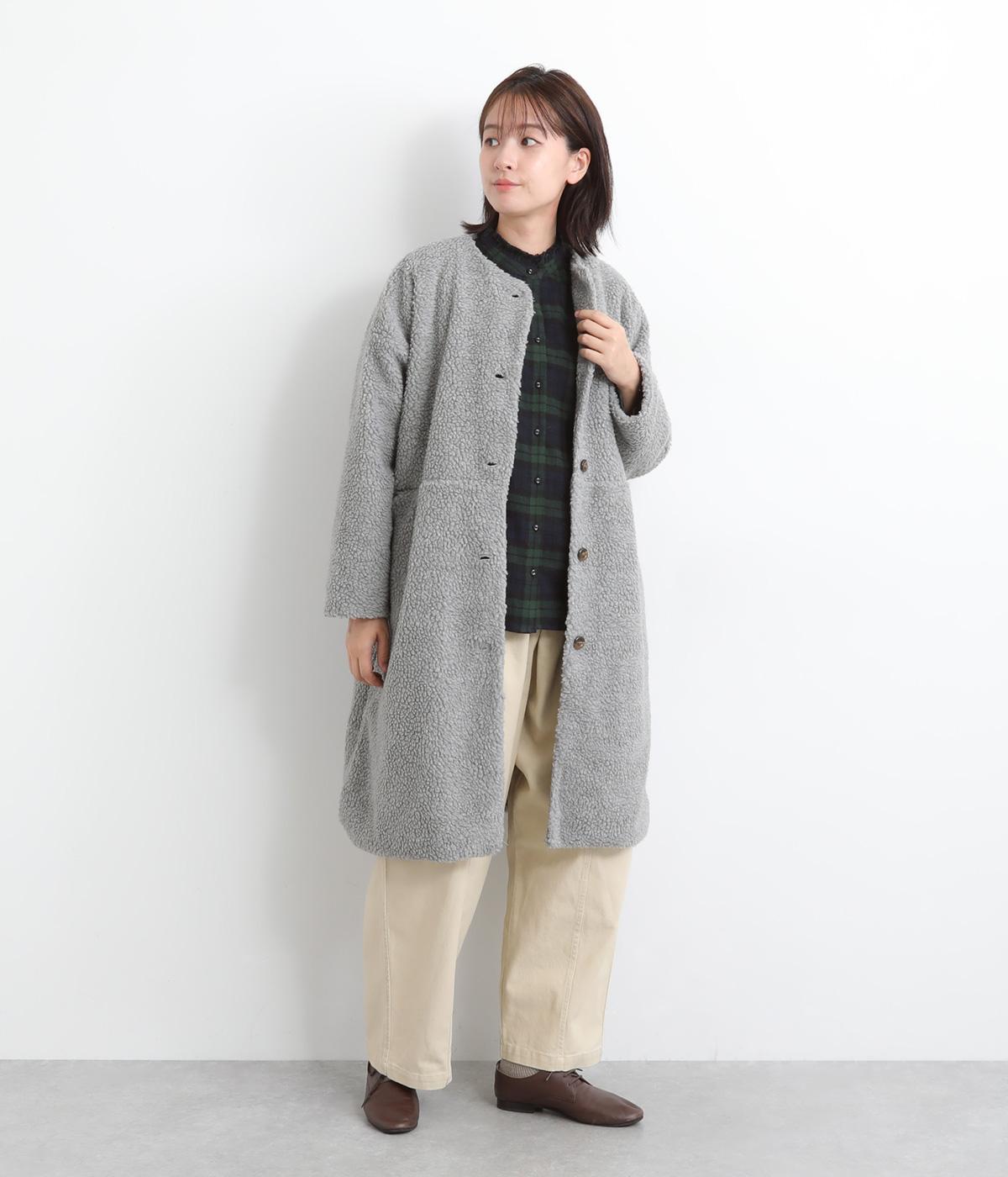 やわらかく肌になじむコットン生地です。起毛感のあるあたたかい雰囲気と軽やかな着心地が魅力です。前開きはくるみボタンで仕立てて品を添えています。