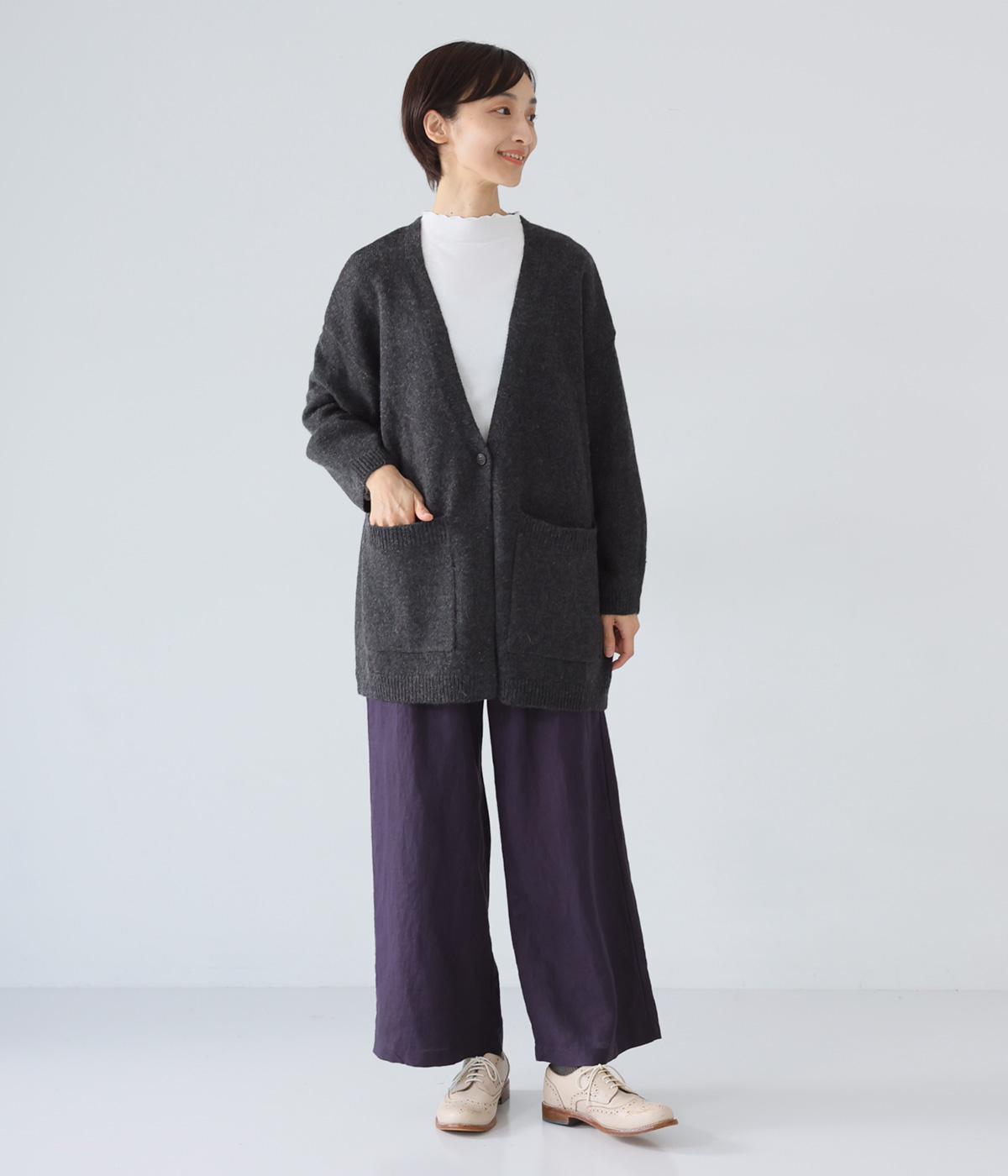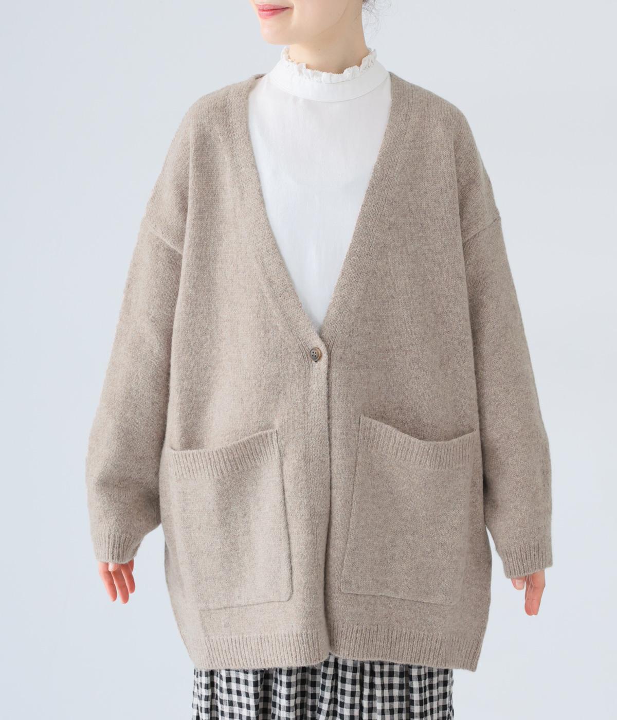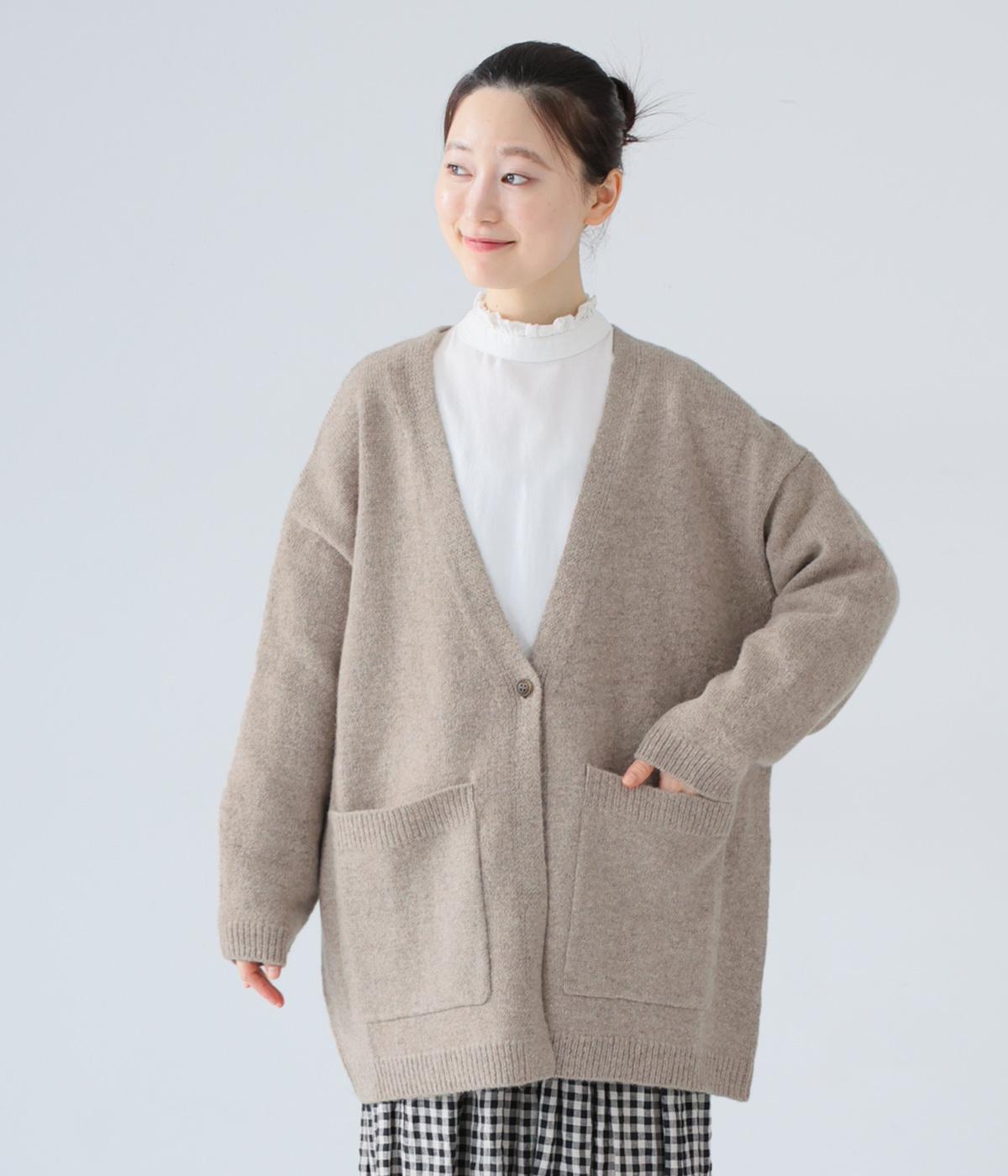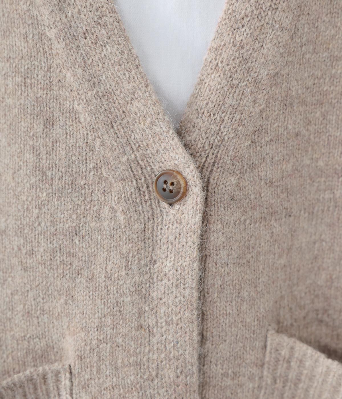ゆったりと羽織りやすく、タテラインをつくってコーディネート全体をすっきりまとめてくれる一枚。ひとつボタンのラフなデザインが、ニットのやさしい雰囲気にマッチしています。実用性もお洒落ポイントも満たす大きなポケットつき。