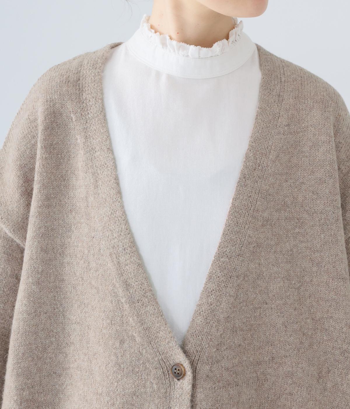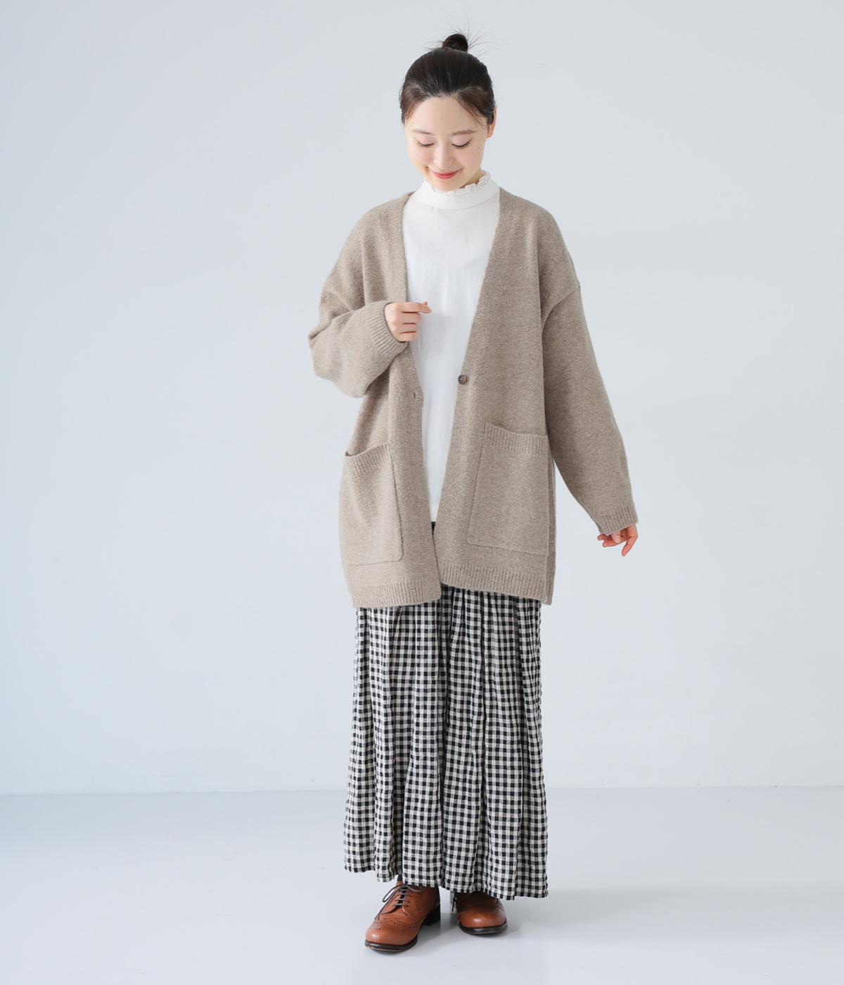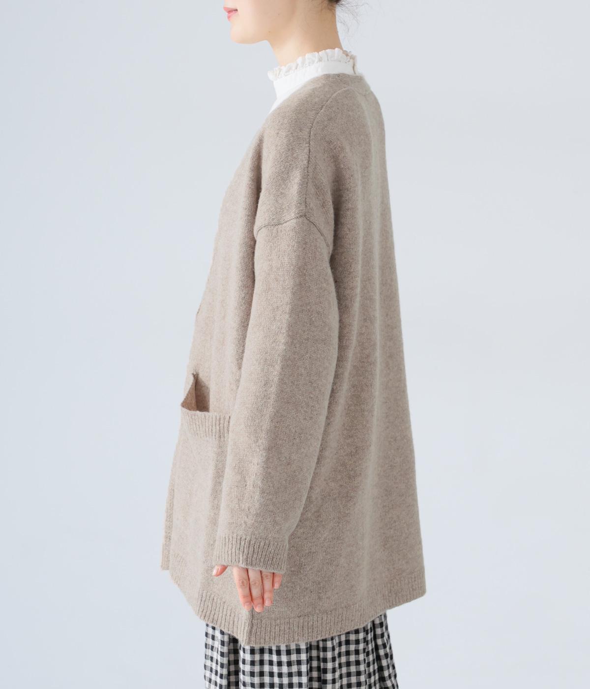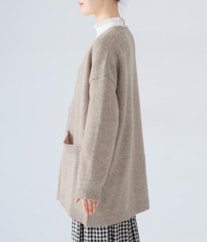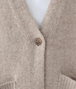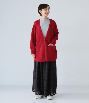 ゆったりと羽織りやすく、タテラインをつくってコーディネート全体をすっきりまとめてくれる一枚。ひとつボタンのラフなデザインが、ニットのやさしい雰囲気にマッチしています。実用性もお洒落ポイントも満たす大きなポケットつき。