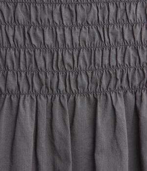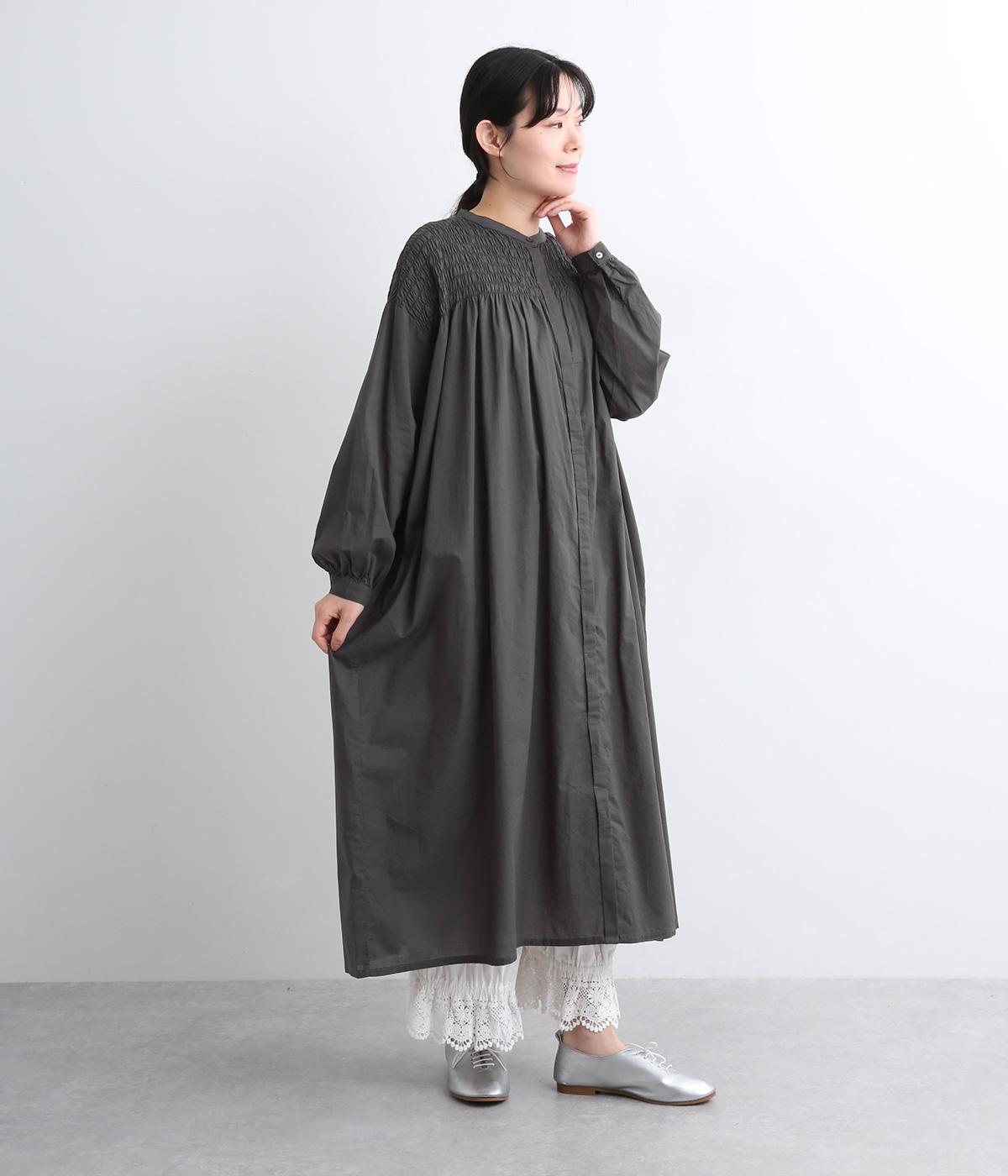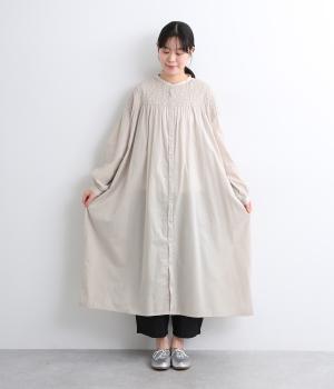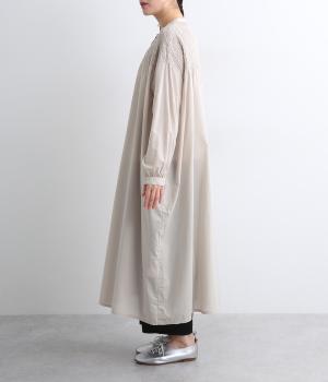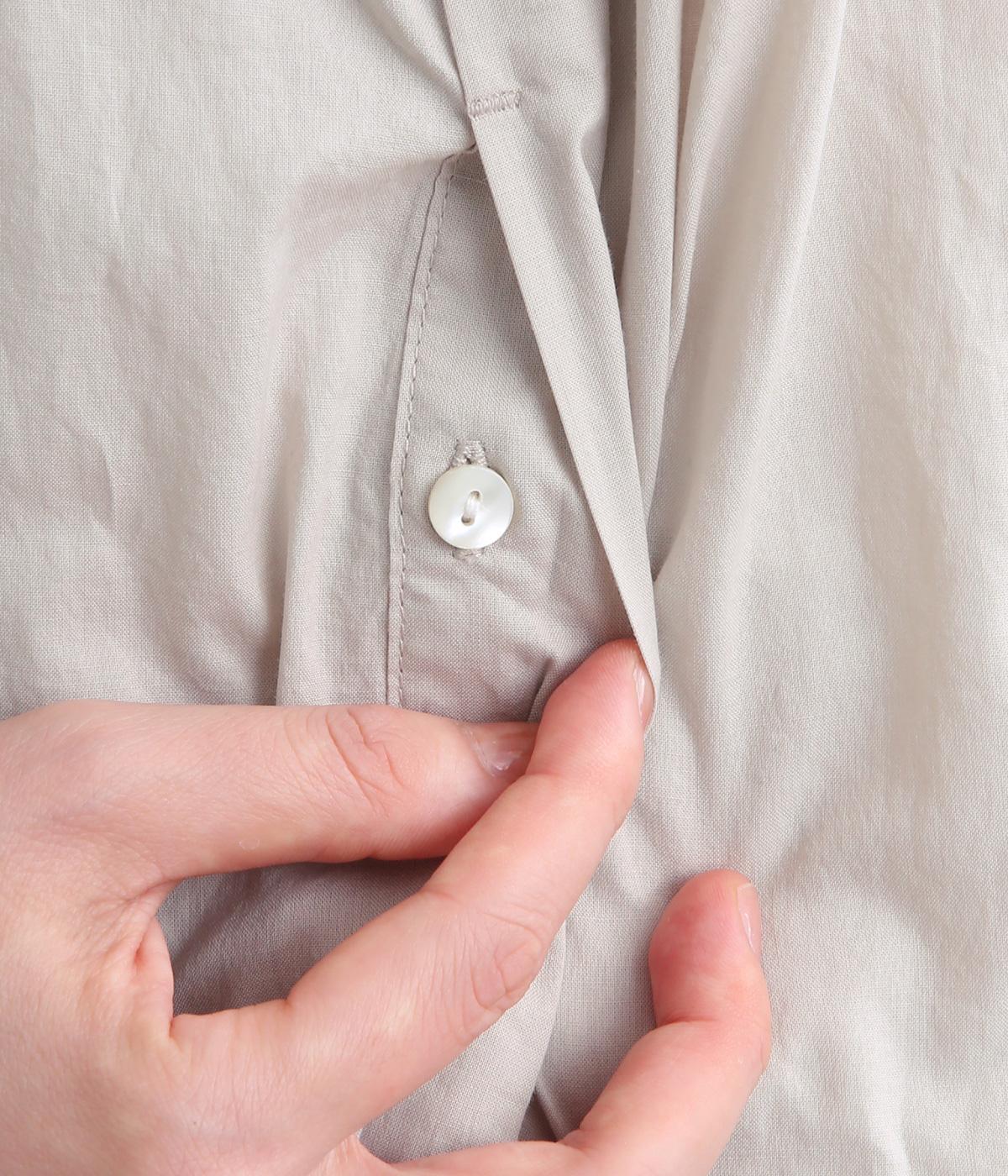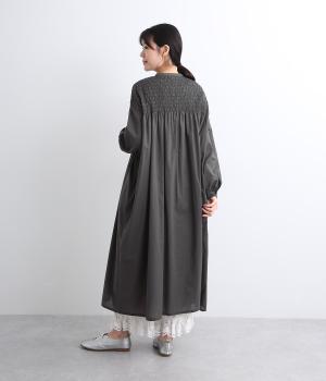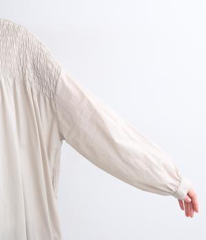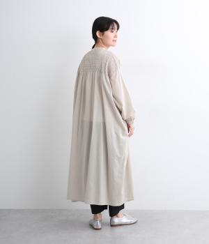 肩まわりにシャーリングをほどこし、ふんわりとしたシルエットに仕上げました。カフスでメリハリをつけた袖も◎。すっきりとした比翼仕立てで、軽やかさを活かした羽織りの着こなしもすてき。両サイドポケットつきでデイリー使いにも最適です。