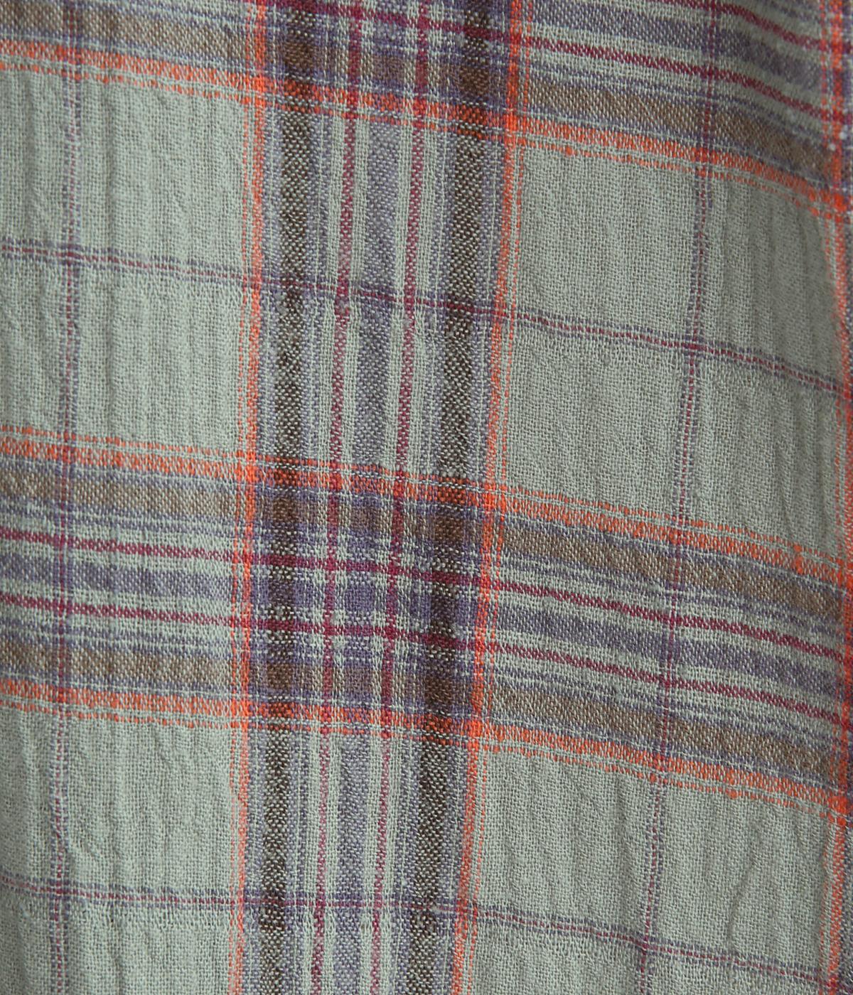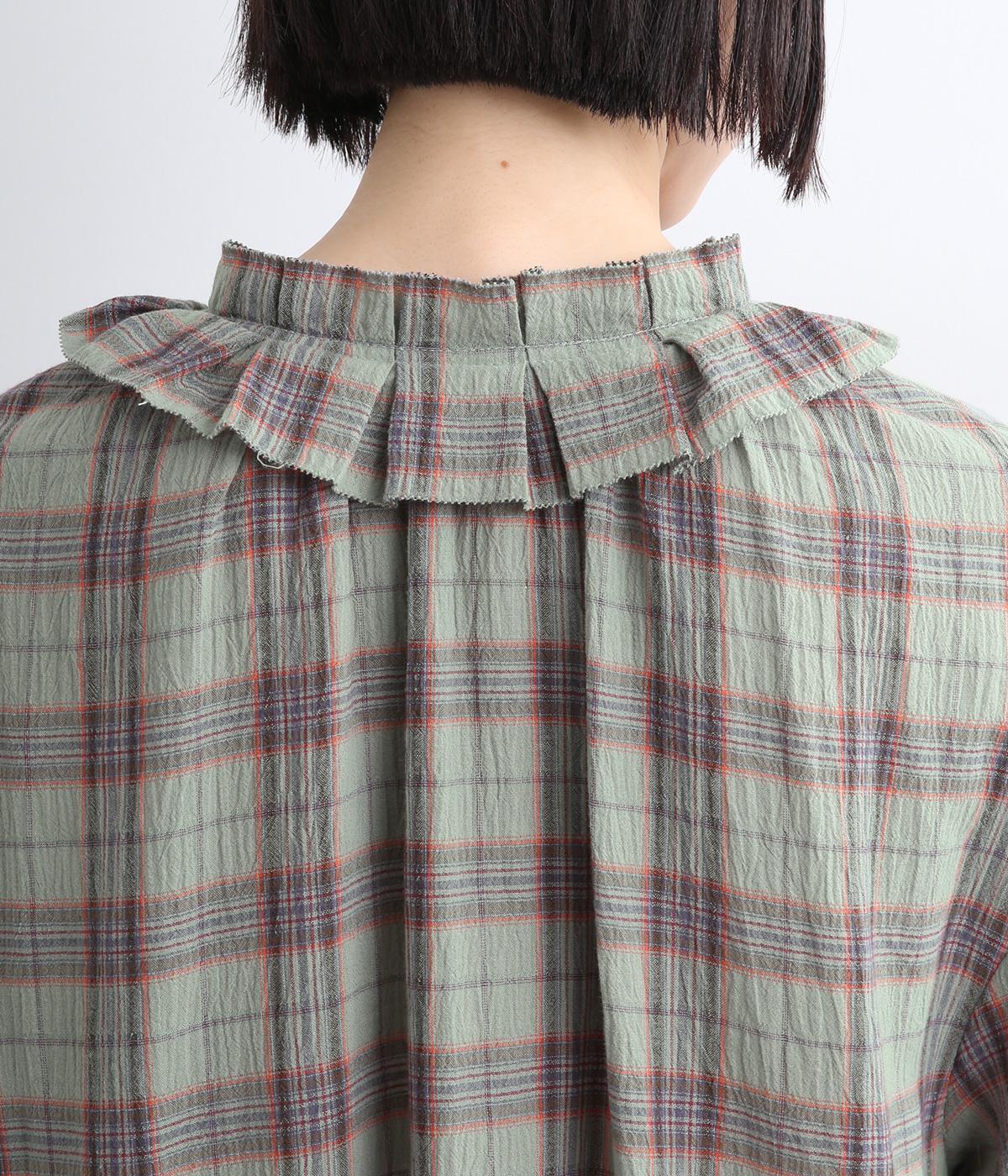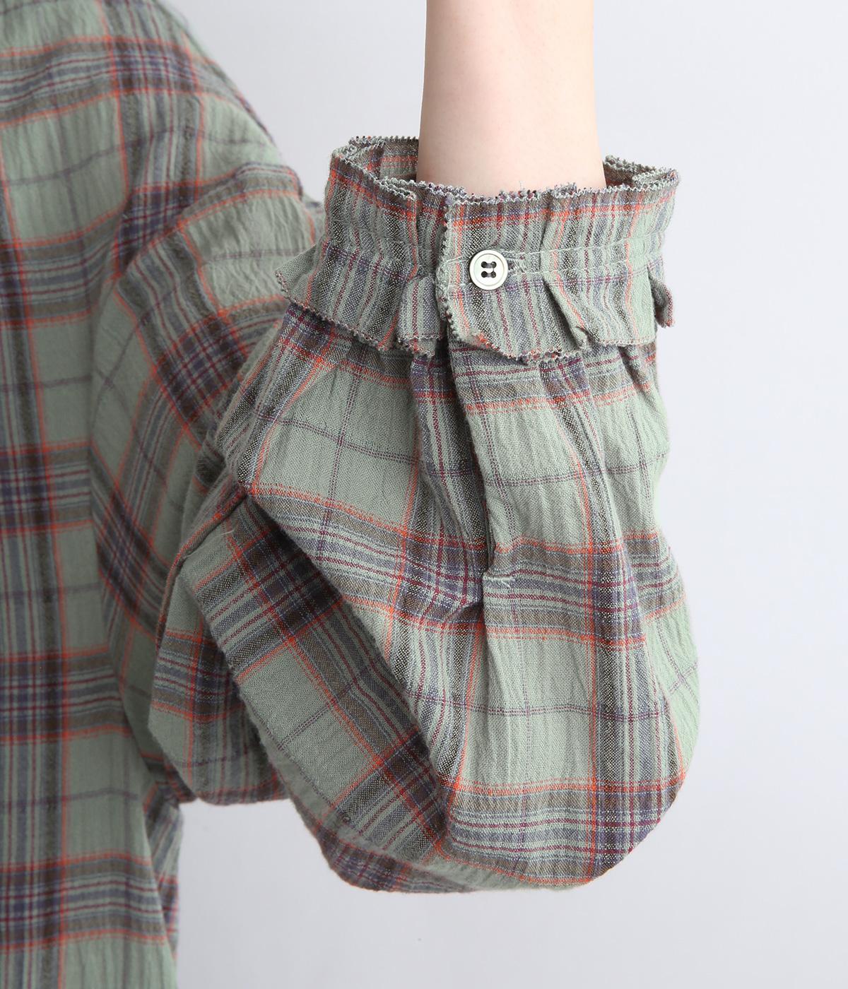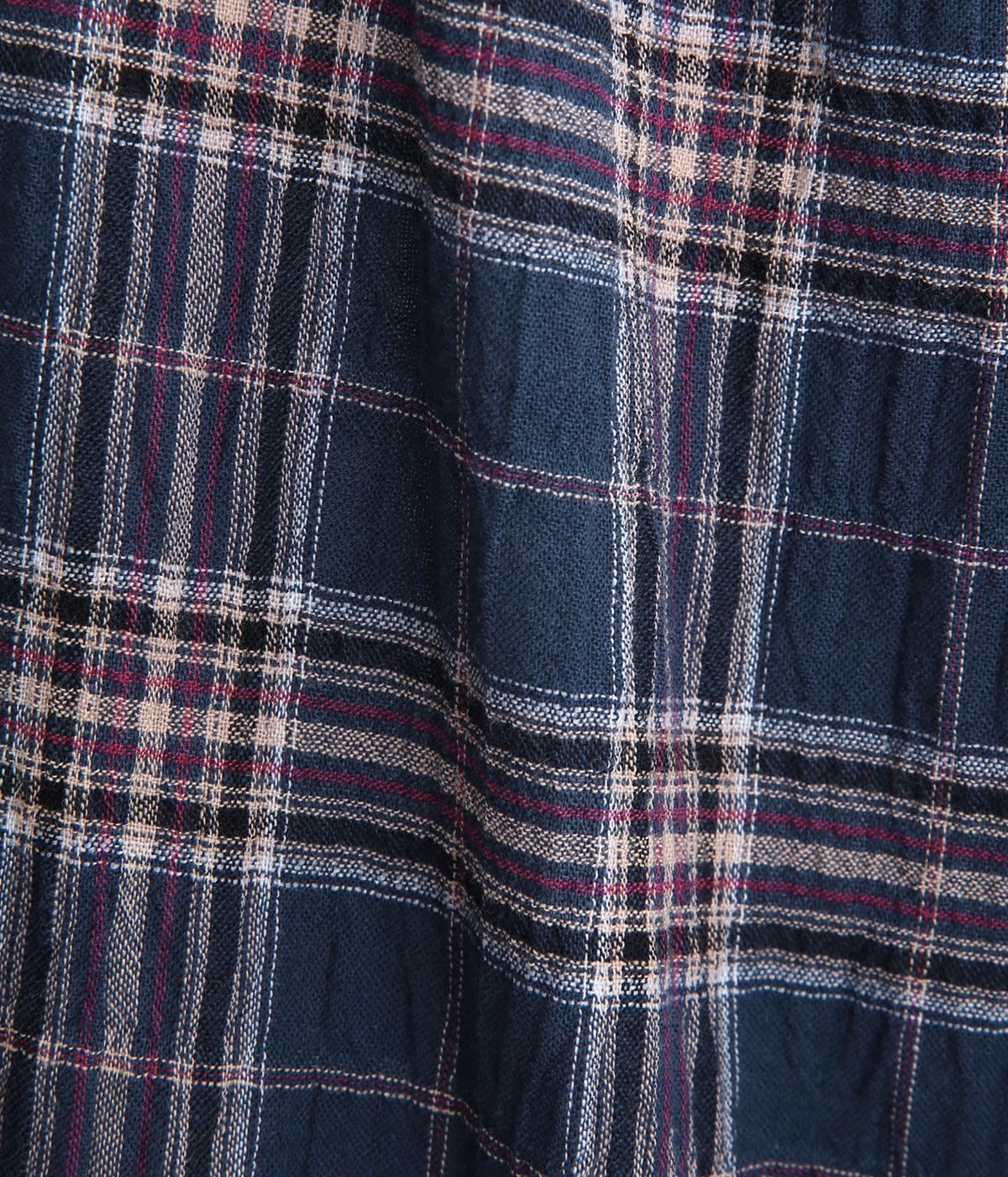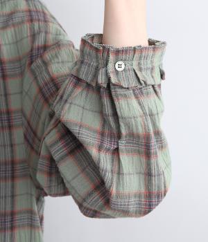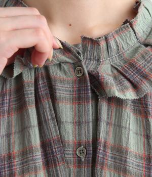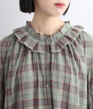 自然なシワ感のあるワッシャーチェック生地で仕立てています。レトロな雰囲気の配色が魅力的で、生地もさらりと軽やかで快適に着用可能。