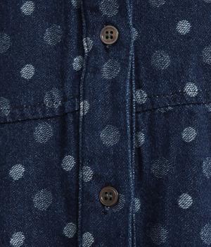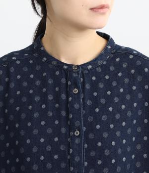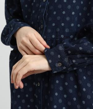 とてもやわらかな風合いのコットンデニム。ジャカード織りで表現されたドット柄が、さりげなくも目をひくポイントに。通年対応の素材で、一枚あると重宝します。