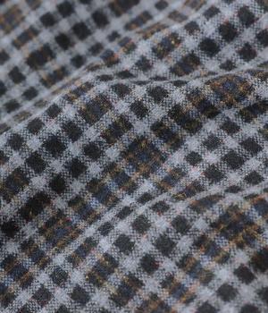 あたたかみのあるウール素材×チェック柄でトラッドな雰囲気を醸します。適度に重厚感のある素材で、ポリエステルの混率を高めているので速乾性も◎。