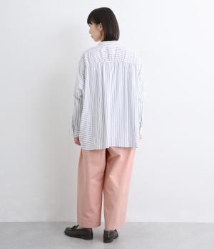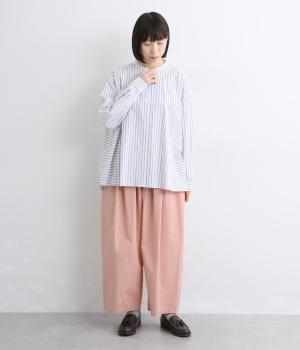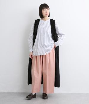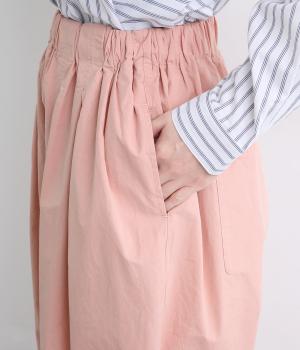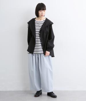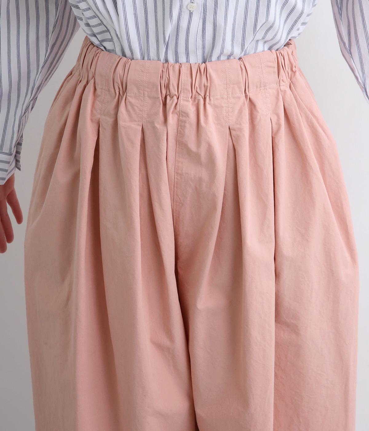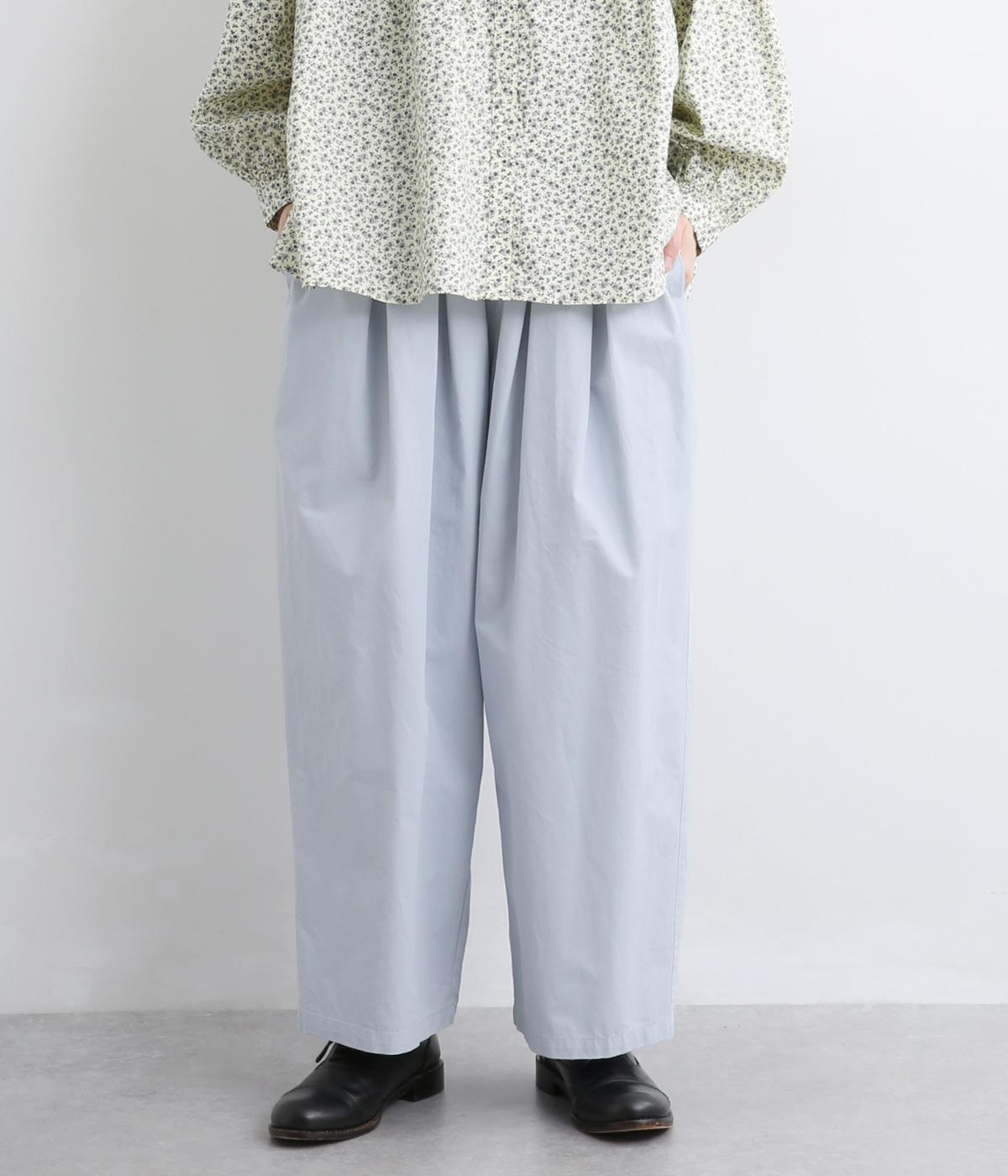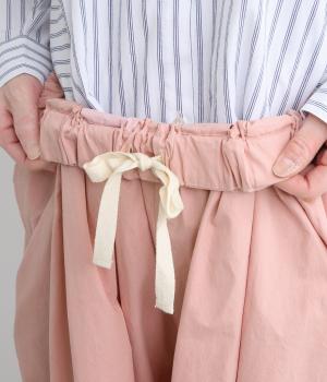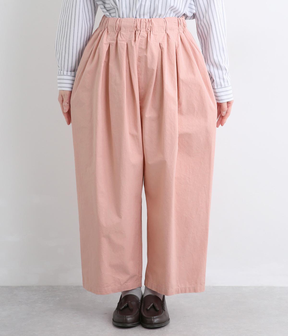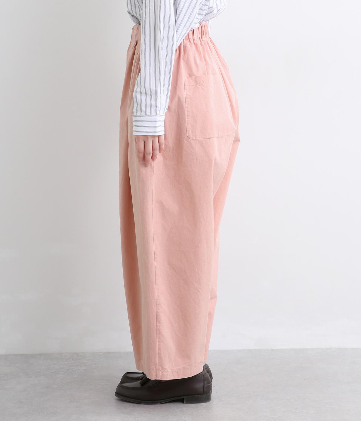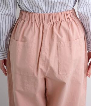 生地感を活かしてウエストタックでたっぷりと立体感をつけました。ルーズに見えないよう丈感にもこだわり、デイリーなカジュアルスタイルに重宝します。安定感のある太平総ゴムに調整紐入りではき心地も快適。