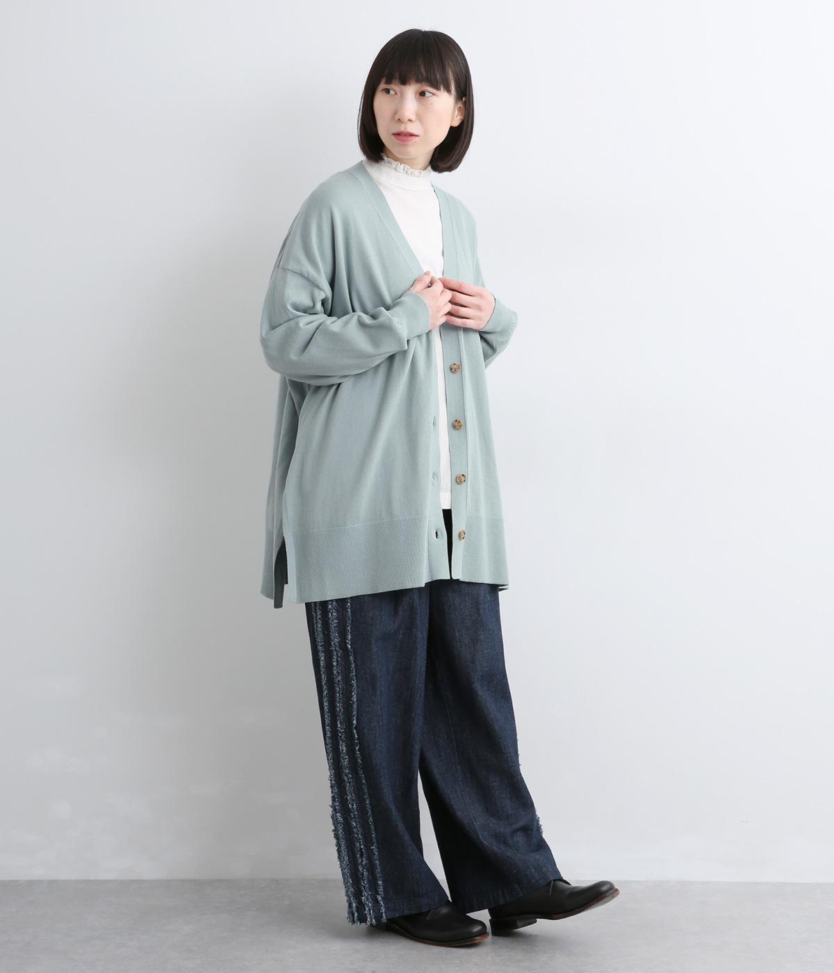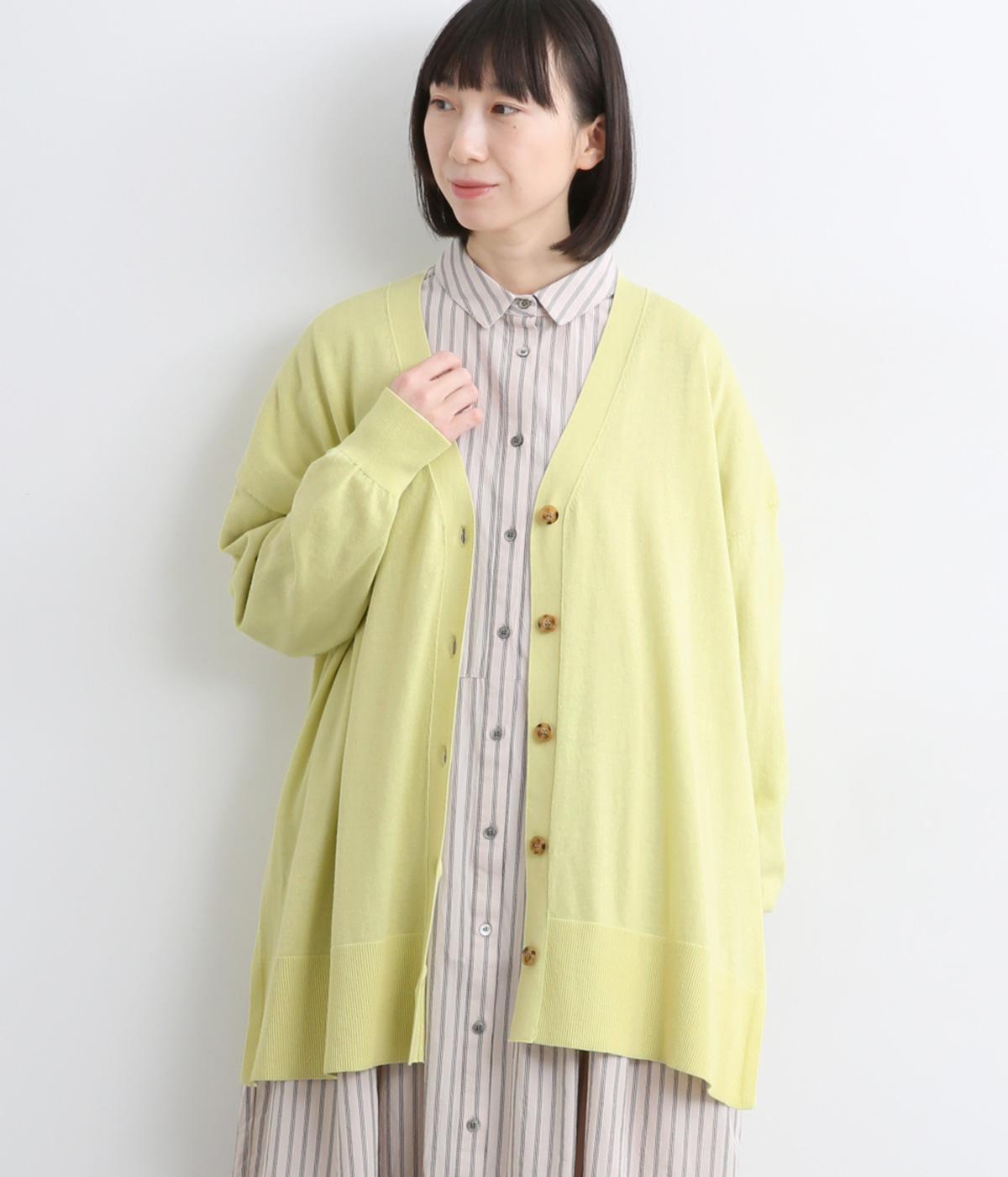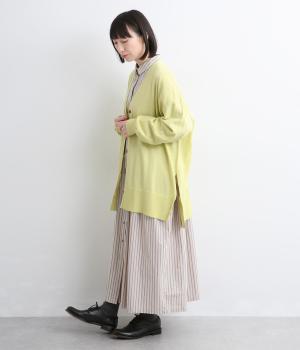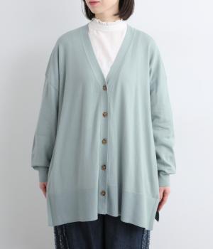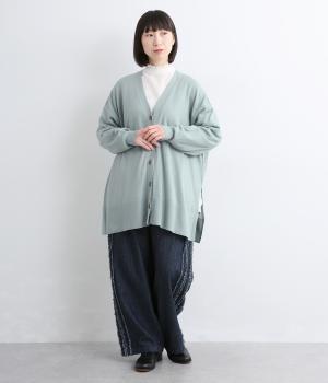 ゆったりとワイドシルエットながら、肉厚すぎないのでボリューム感をおさえて羽織れるカーディガン。サイドに深めのスリットを入れているのもすっきり着こなせるポイント。Vネックで襟つきトップスとも好相性です。