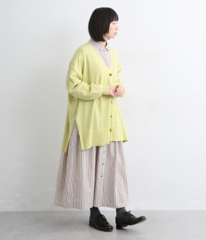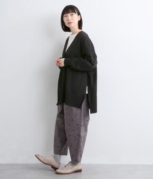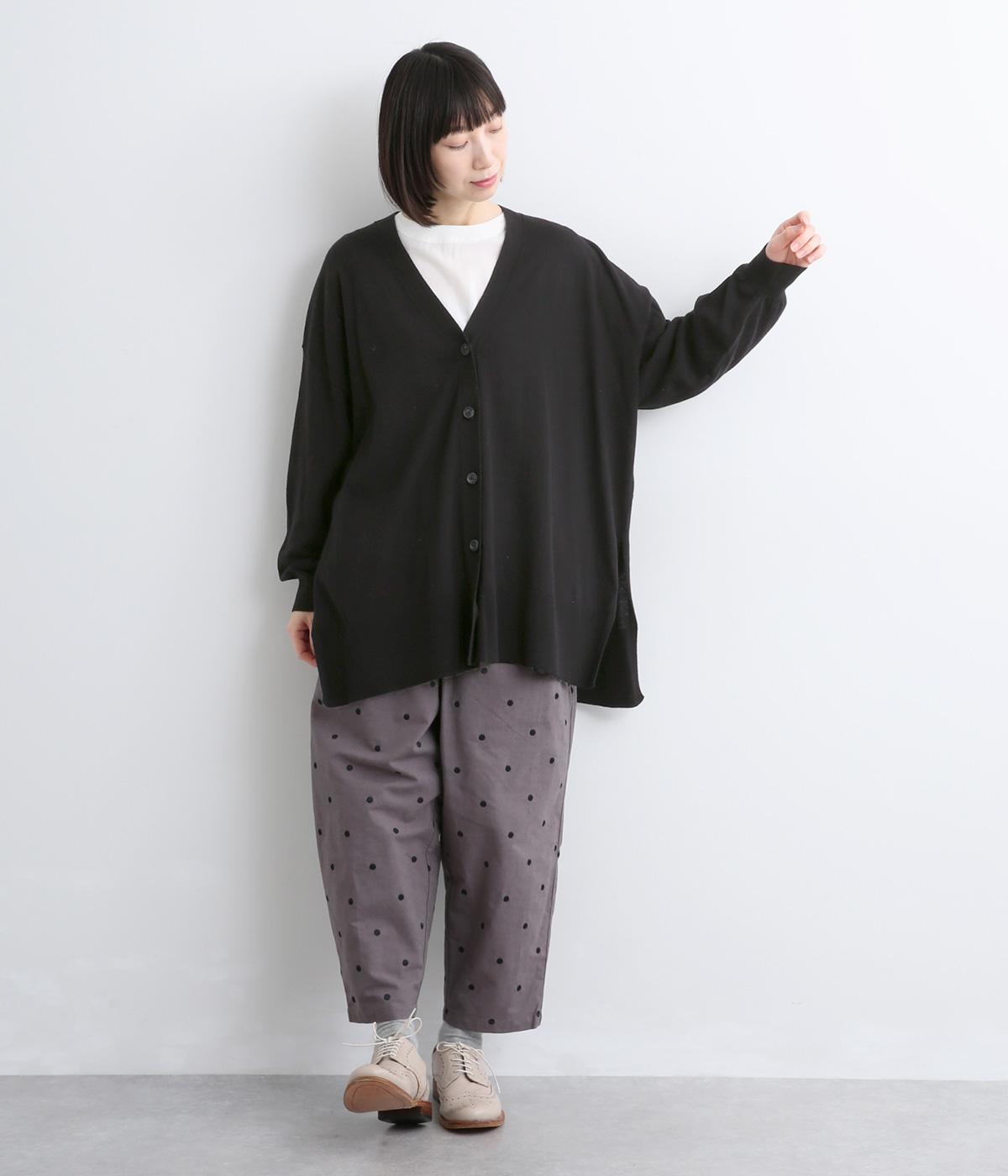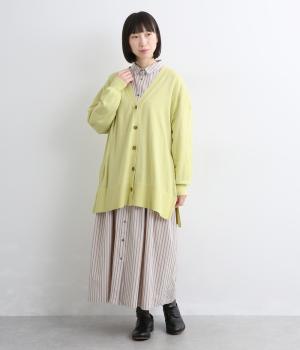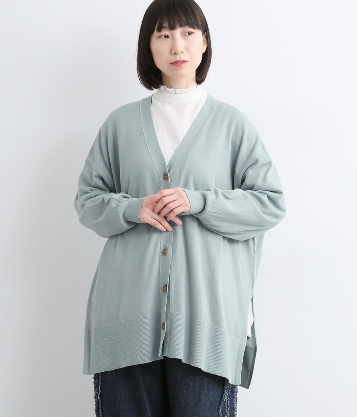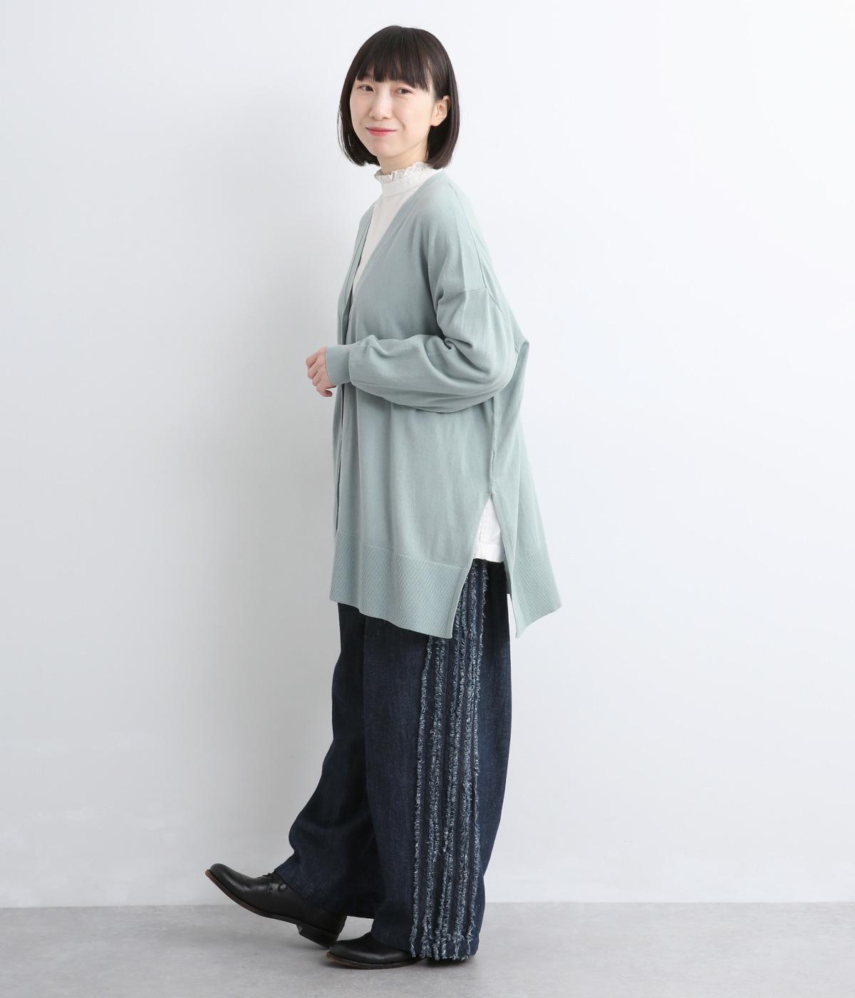 ゆったりとワイドシルエットながら、肉厚すぎないのでボリューム感をおさえて羽織れるカーディガン。サイドに深めのスリットを入れているのもすっきり着こなせるポイント。Vネックで襟つきトップスとも好相性です。