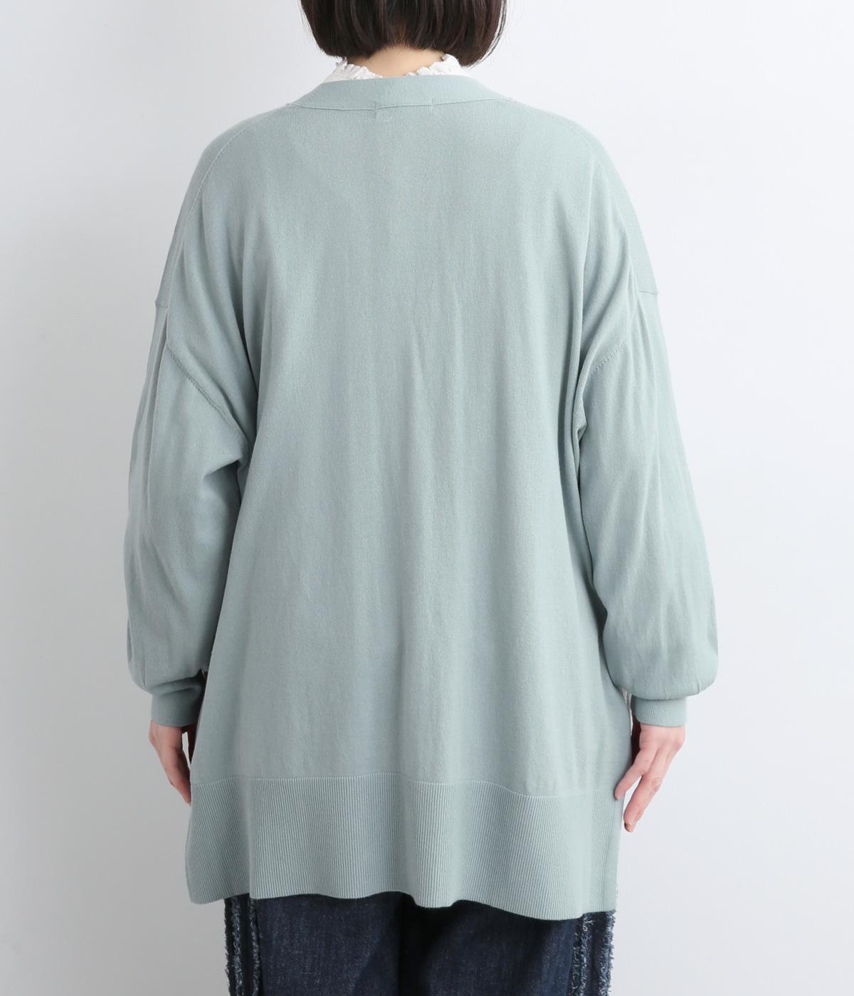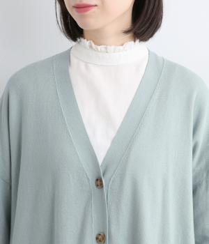 やわらかで伸びのいいコットンニットを使用。薄めの中厚手であたたかな季節にも羽織りやすく、編み目の詰まったハイゲージできれいめな印象です。