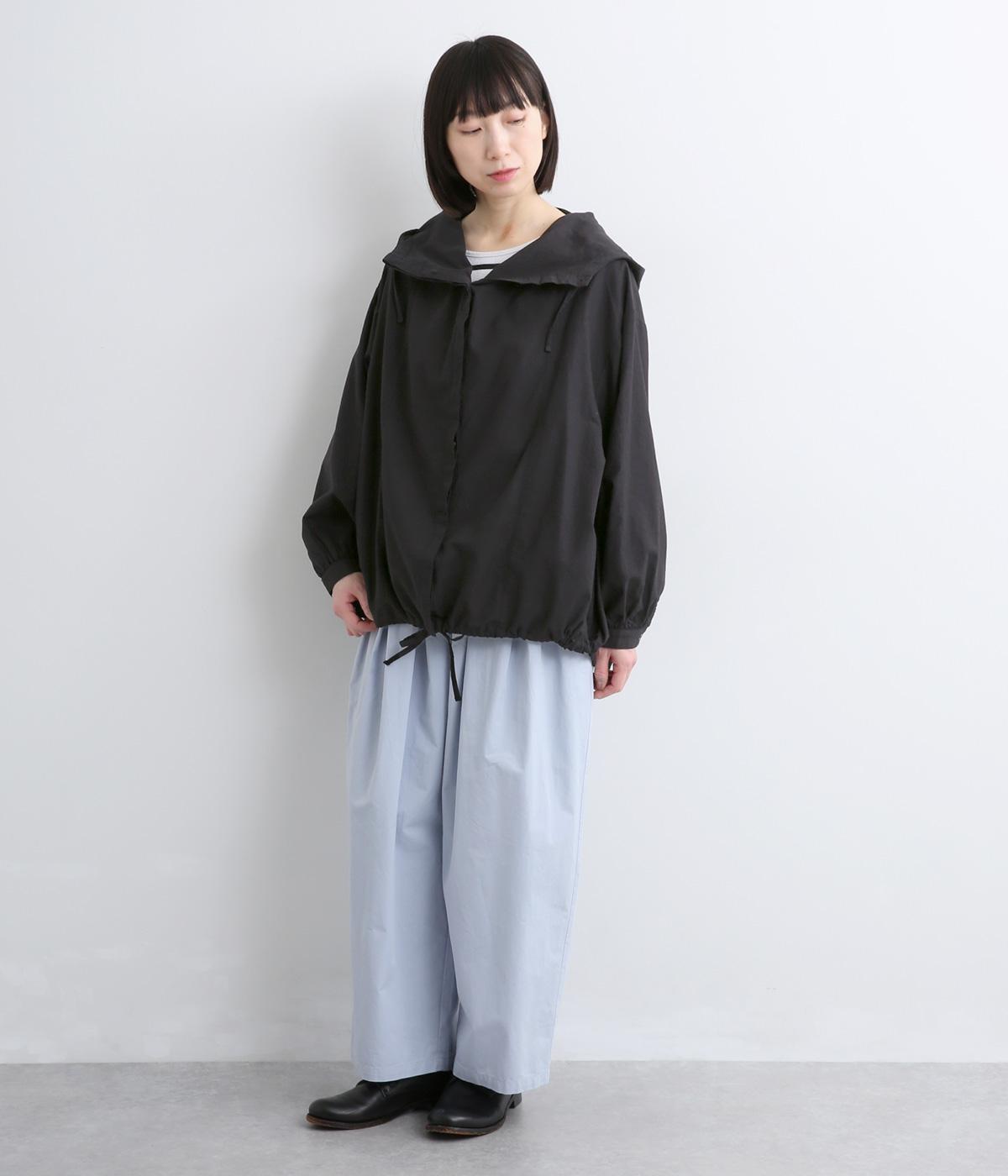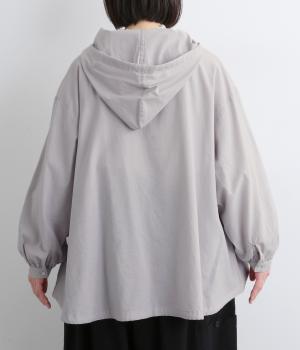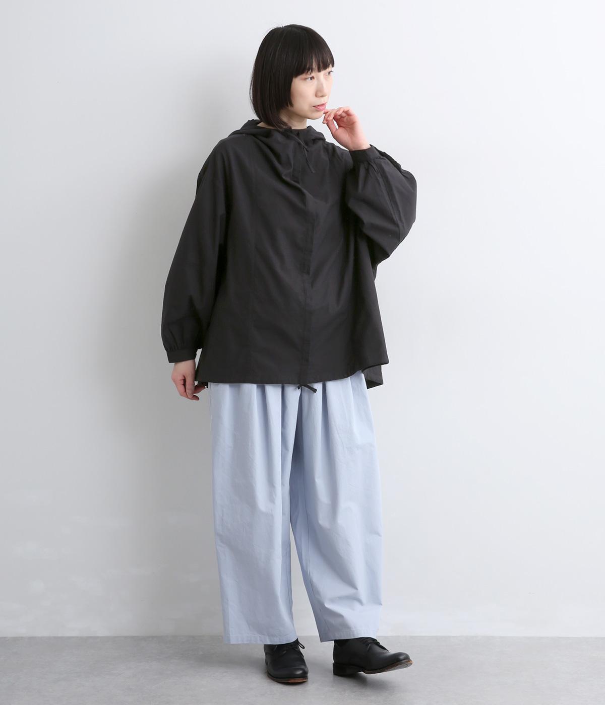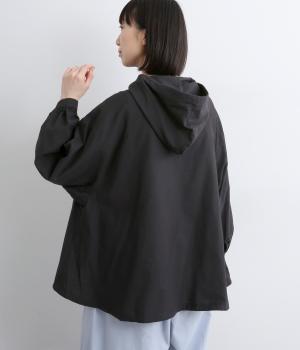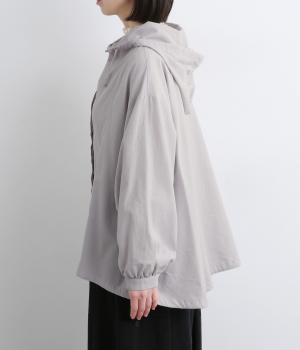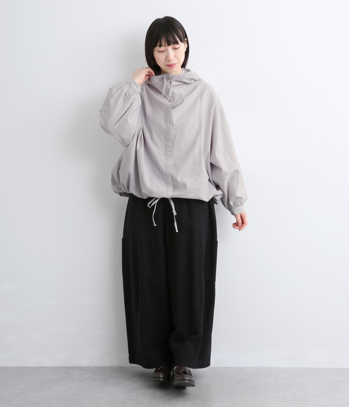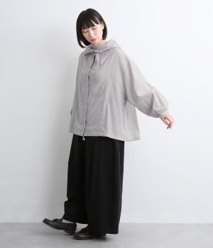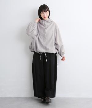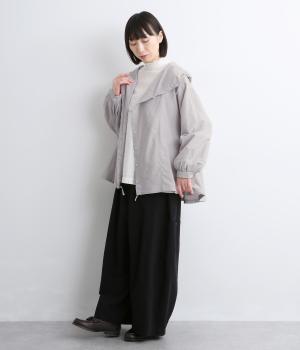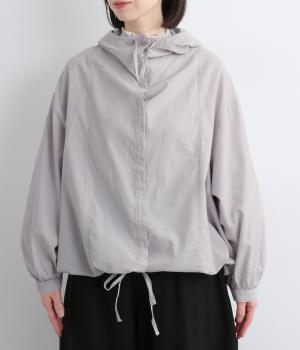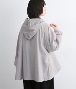 スポーティ要素を取り入れながらも素材感でやわらかな印象にまとめたフーディブラウス。裾はアジャスターでしぼるとシルエットが変わって気分転換にも。すっきりとした比翼仕立てで羽織り使いもおすすめです。