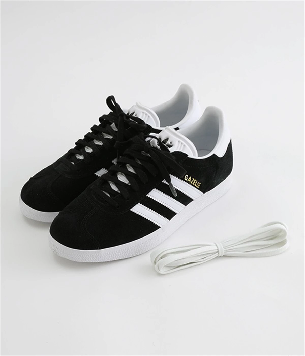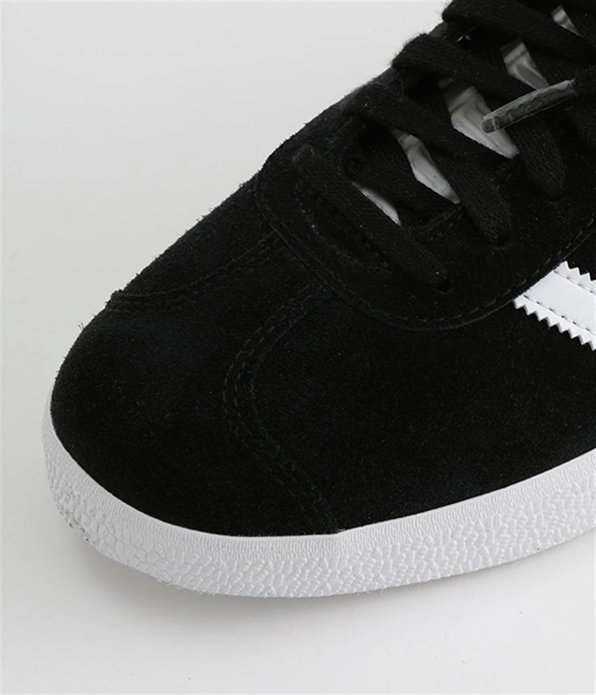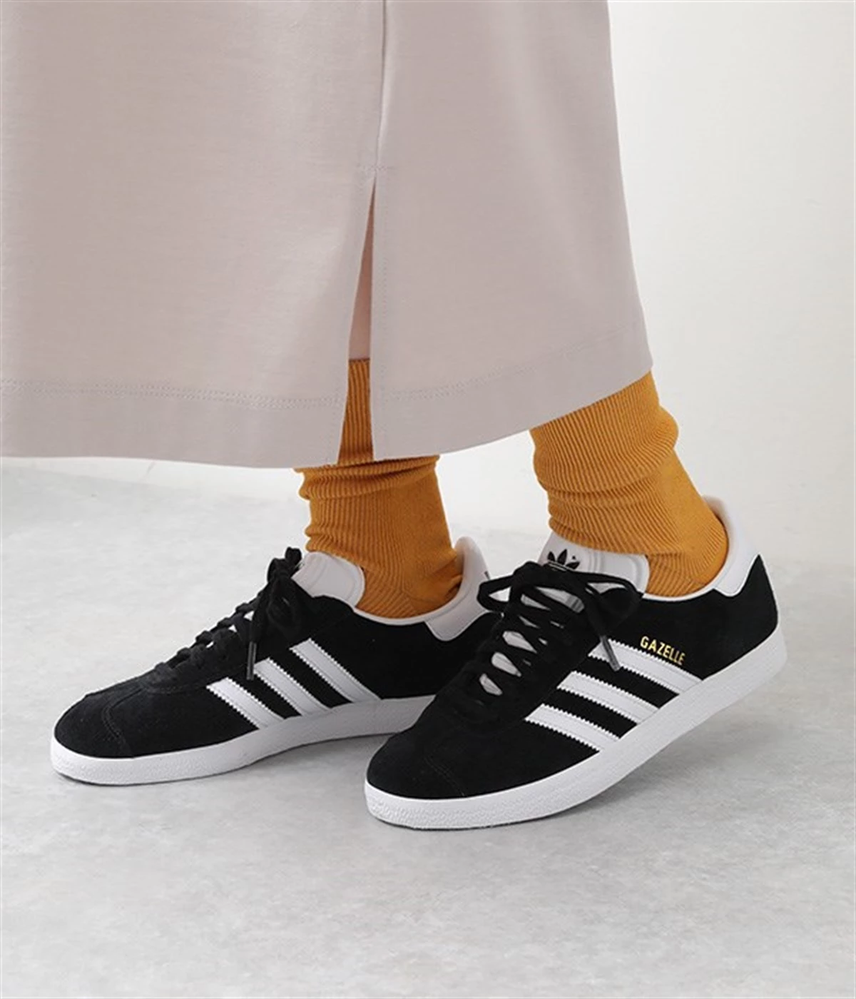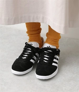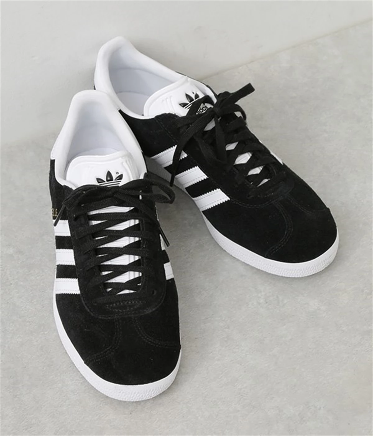 アディダスからサッカーシューズとして誕生したシリーズ、「ガゼル」の名作と言われた1991年モデルを復刻。同じ素材と配色で、はきやすさも考慮し当時より少し幅広に設計しました。ヌバックのアッパーが、なめらかでソフトな風合いです。ギザギザにカットされたアディダスのシンボルとも言えるスリーストライプス(3本線)や、かかと部分のロゴプリントもヴィンテージ感を漂わせます。