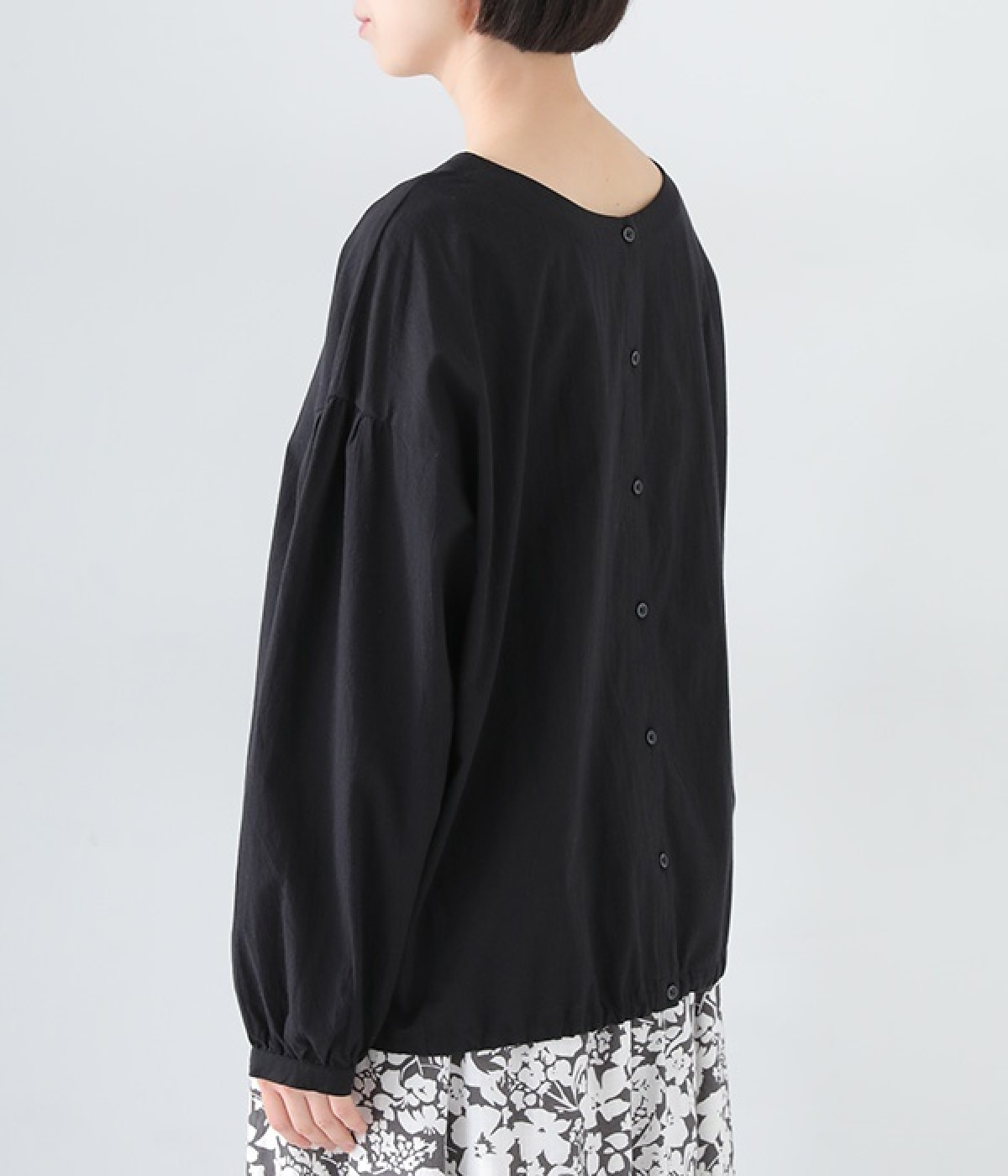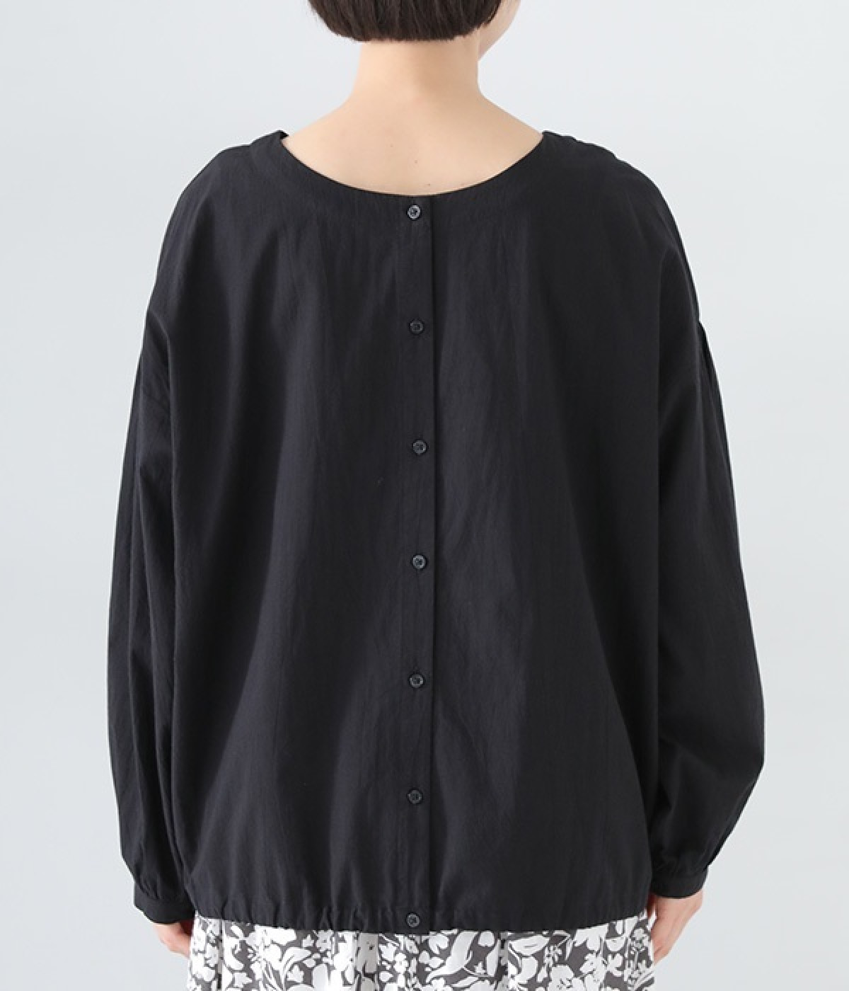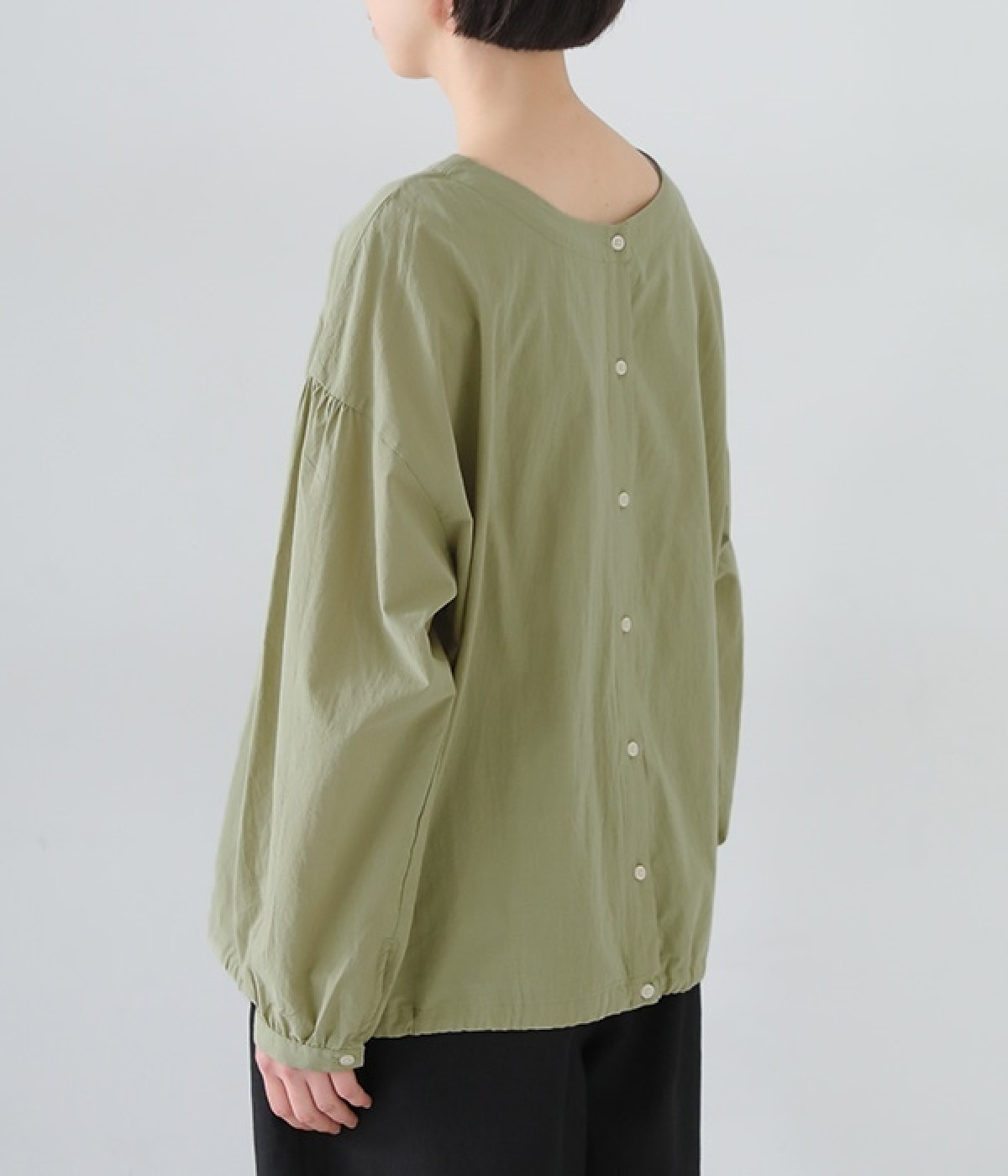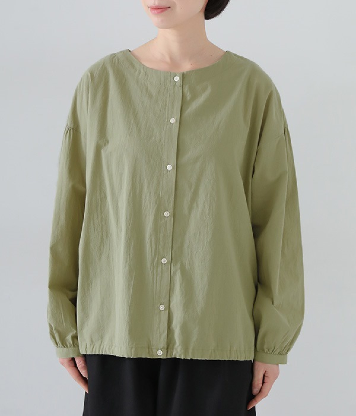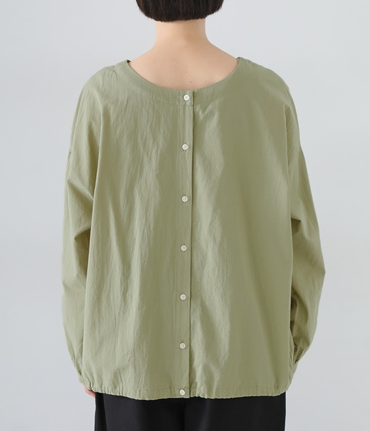 さらっとしたシャリ味を感じる、サンドウォッシュ加工をほどこしたプルオーバー。裾のドローストリングを絞ると、シルエットに丸みが出る自由なデザインで飽きが来ません。さらに前後でも着られるため、羽織りとして着たいときにはボタン側を前にすることも可能。ギャザーを入れたぽわん袖は、着るだけで二の腕をカバーするのも◎。気分に応じて印象の変化が狙える、アレンジ力の高さが自慢の一枚です。