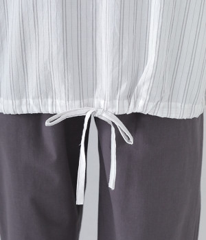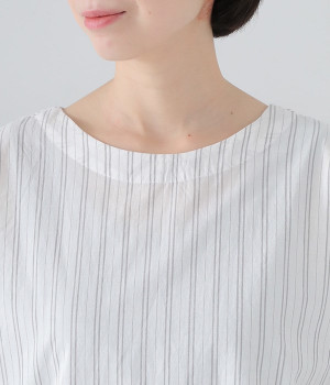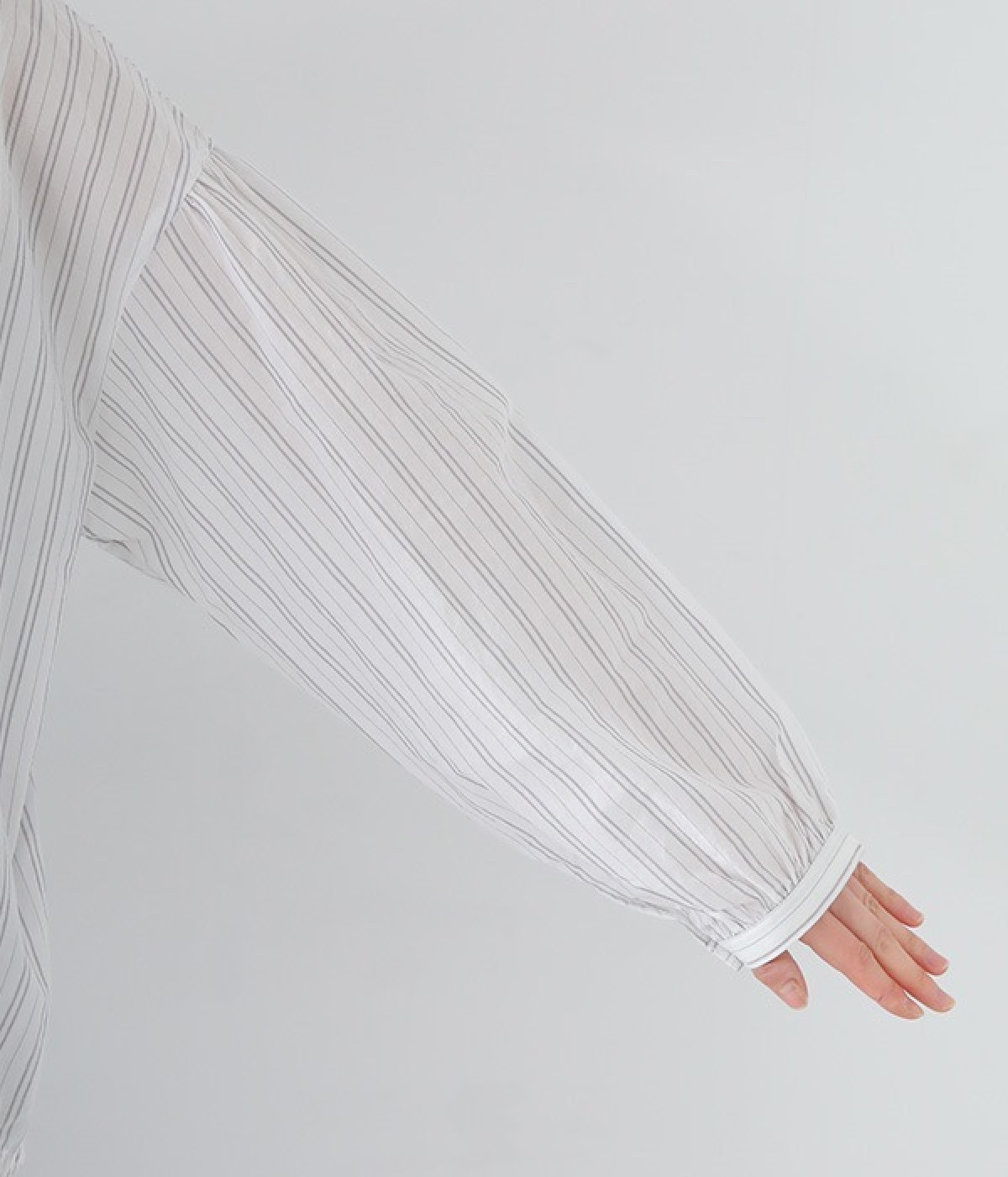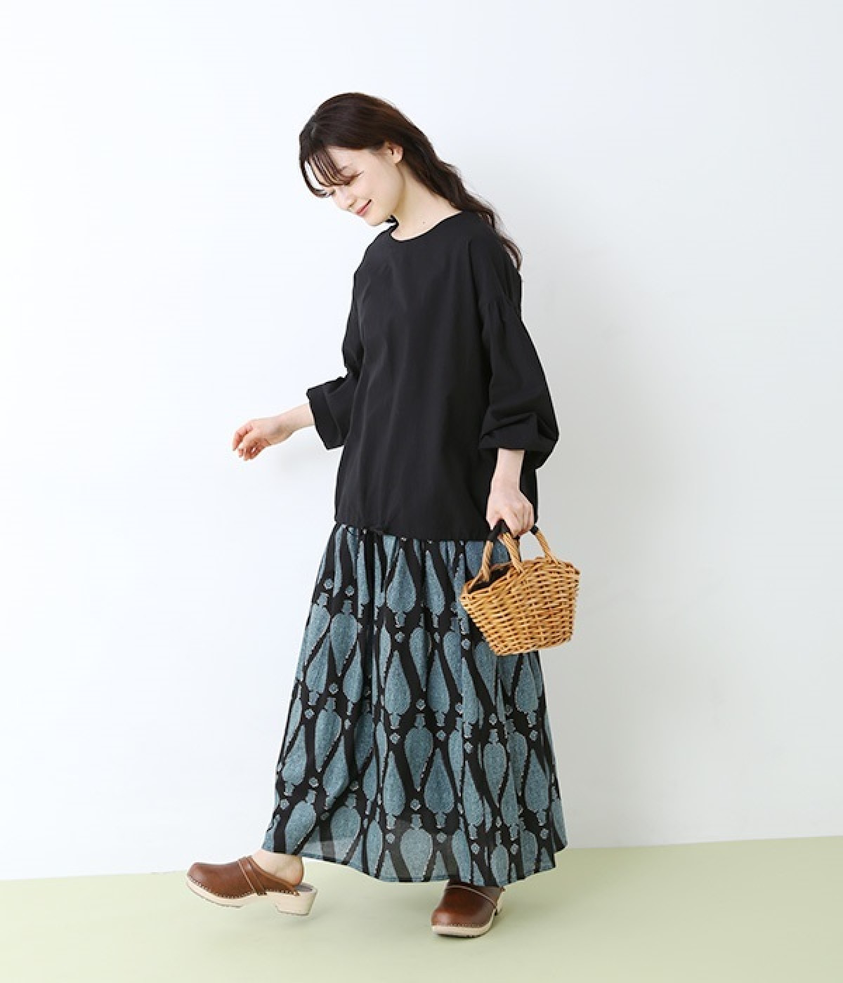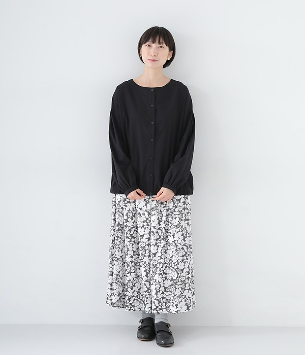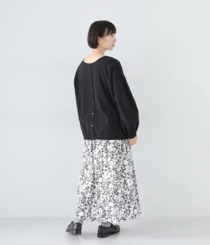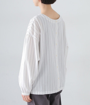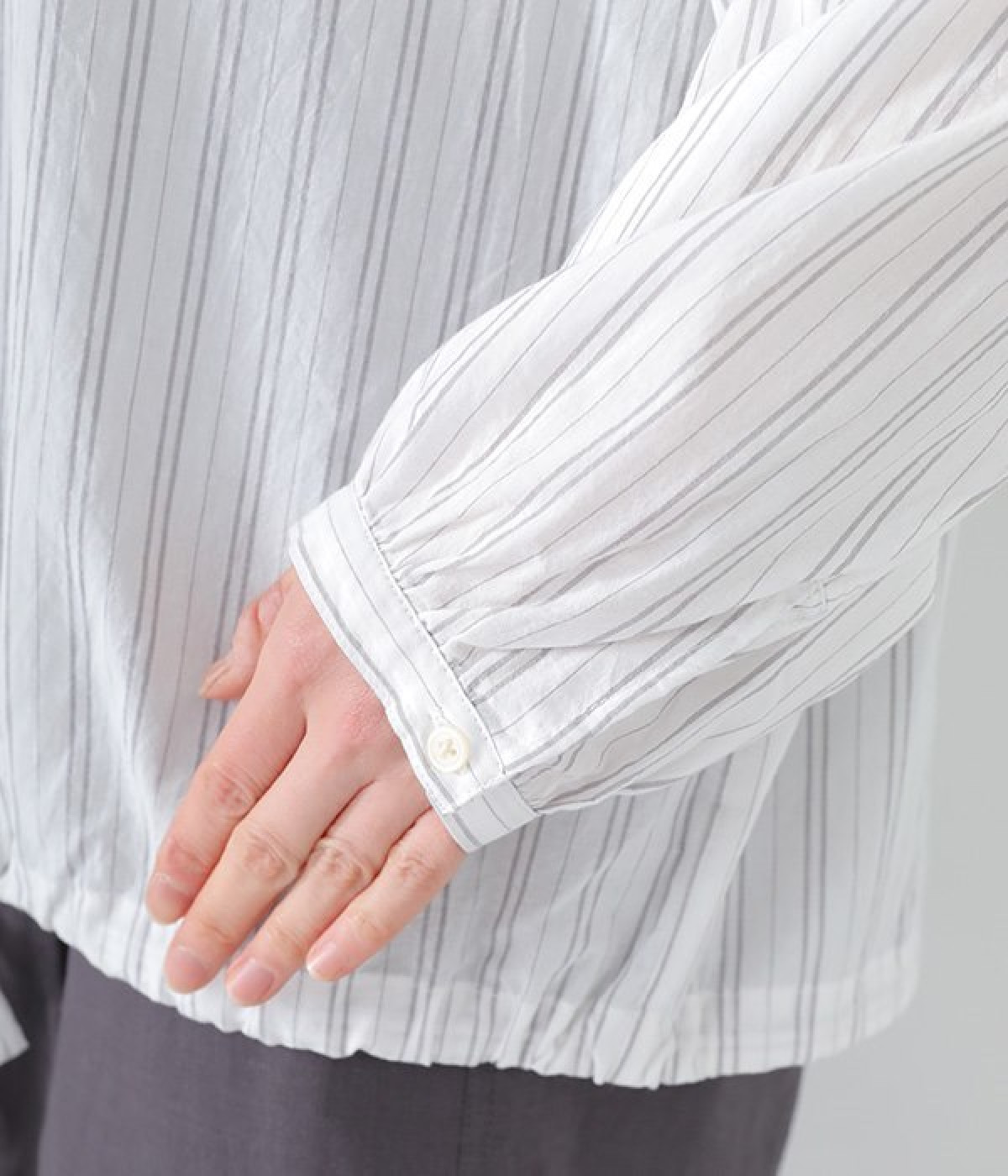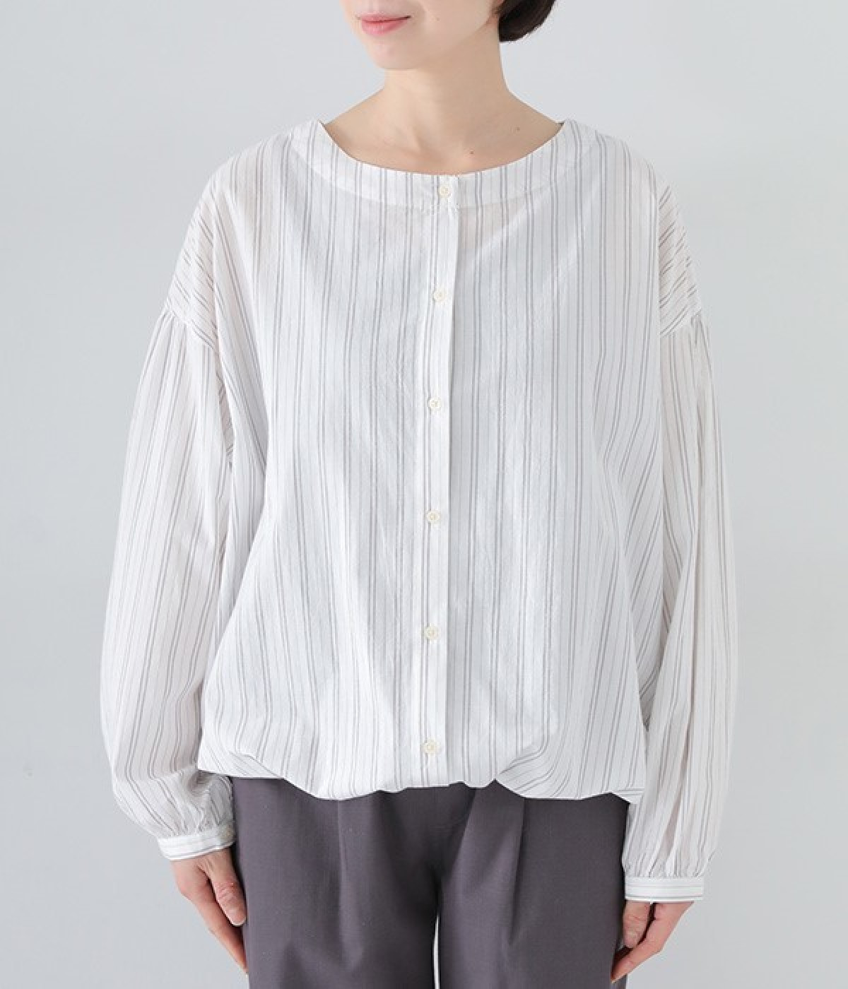 さらっとしたシャリ味を感じる、サンドウォッシュ加工をほどこしたプルオーバー。裾のドローストリングを絞ると、シルエットに丸みが出る自由なデザインで飽きが来ません。さらに前後でも着られるため、羽織りとして着たいときにはボタン側を前にすることも可能。ギャザーを入れたぽわん袖は、着るだけで二の腕をカバーするのも◎。気分に応じて印象の変化が狙える、アレンジ力の高さが自慢の一枚です。