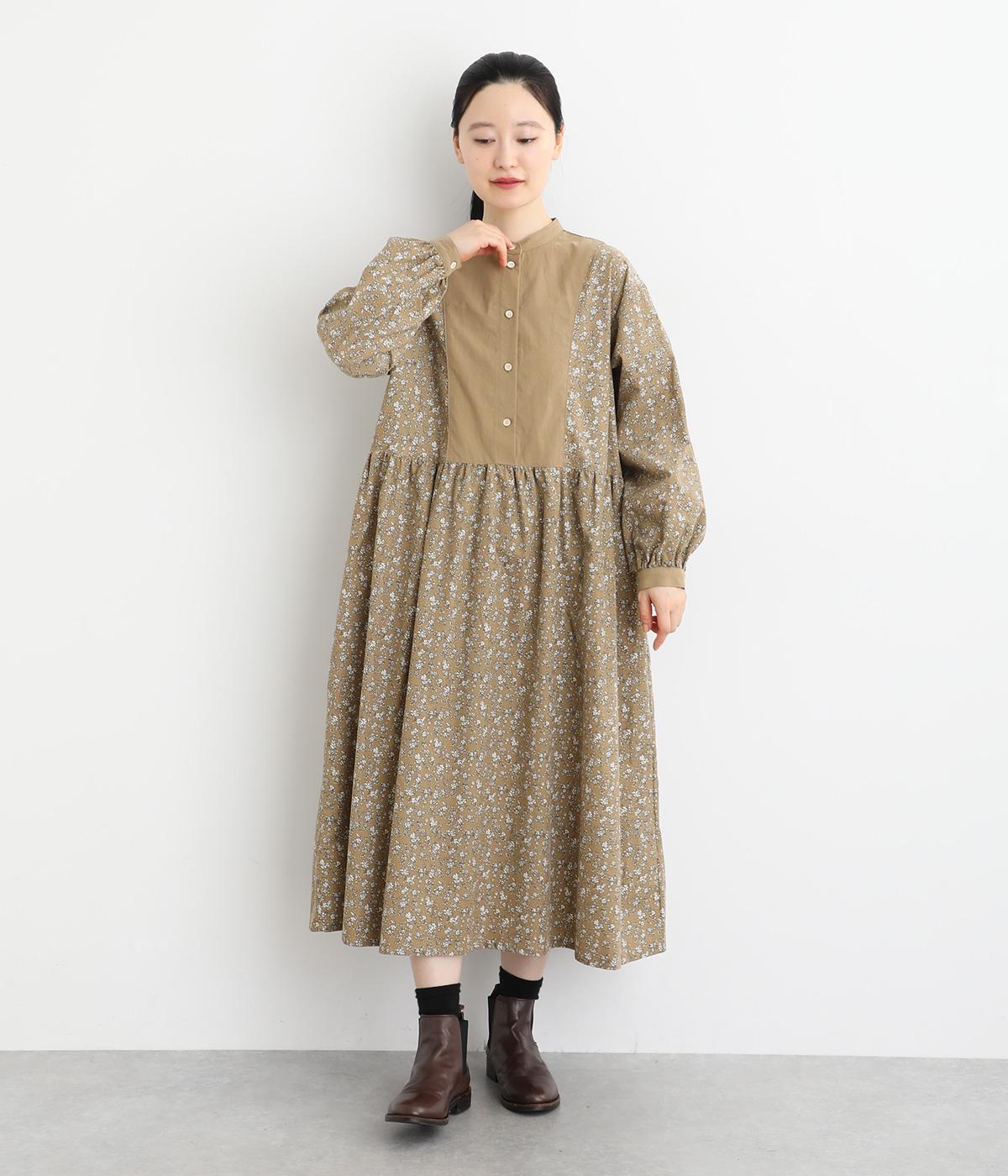 品よくまとまる大人の雰囲気が魅力の花柄プリントワンピース。華やかに映える一枚で、胸元が異素材のシャツ仕立てになっているデザイン性の高さもポイントです。ソックスの丈や配色で変化をつけたり、ショートブーツやローファーとも好相性。