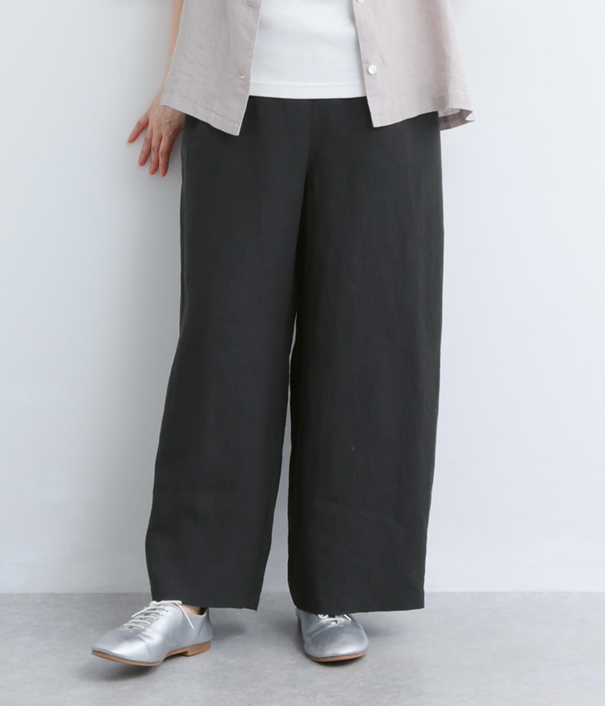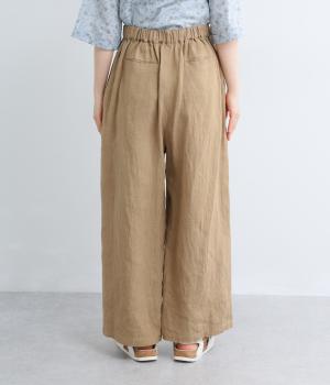 リネンウエストゴム8分丈ワイドパンツ