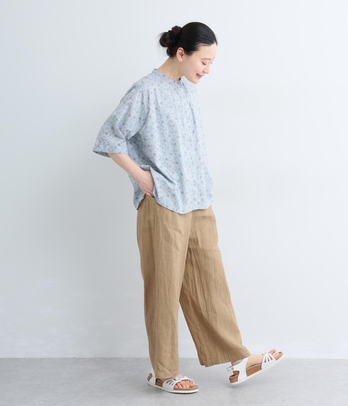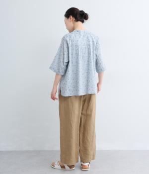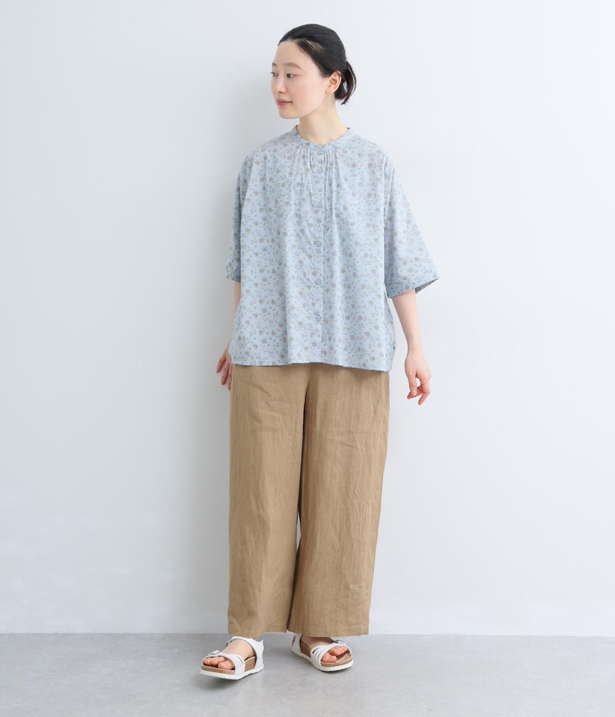 コットンキャンブリック花柄プリントブラウス(ブルー)