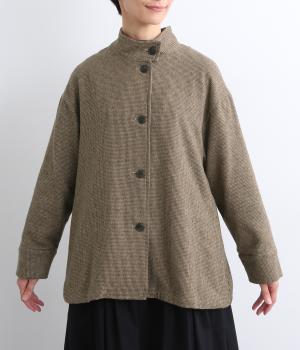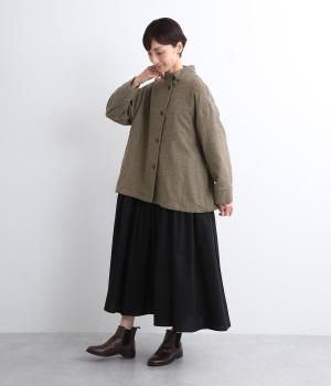 ウール見えする、ツイード風コットンを使用しています。秋冬の装いを高める、落ち着いたチェック柄。ご自宅でお洗濯も可能なイージーケアです。