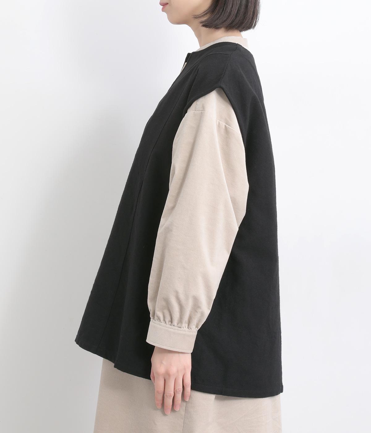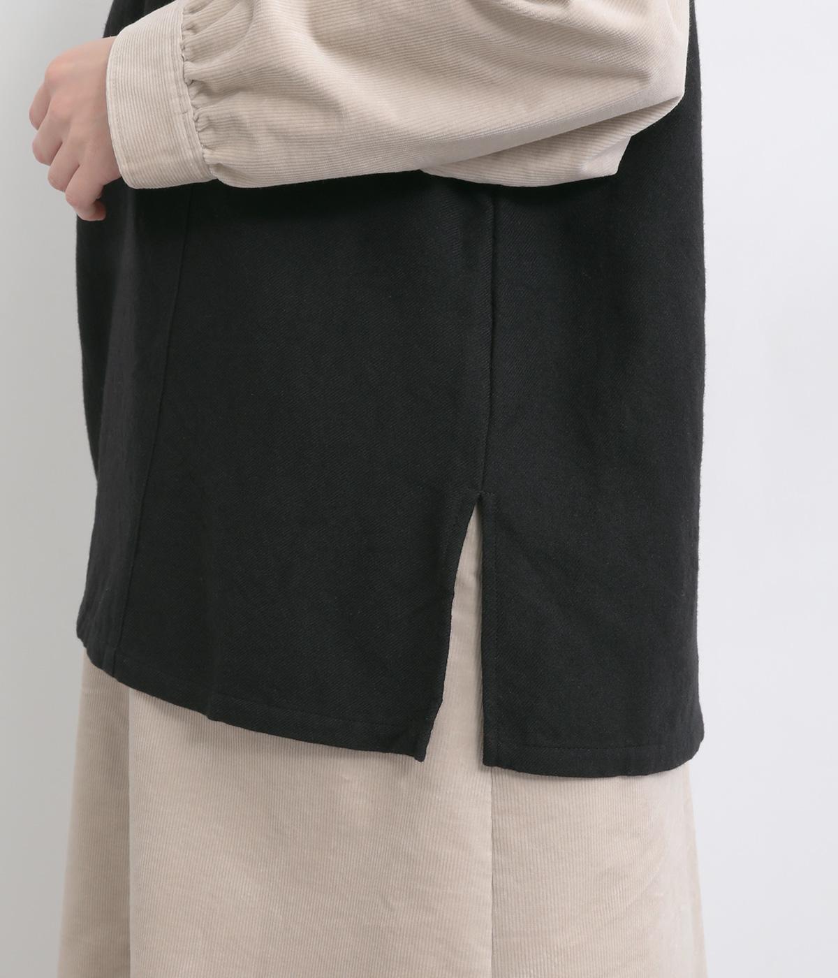 ウールやコットンをまぜた、あたたかみのある混紡素材を使用しています。重厚感のある風合いながらも、薄手で軽やかに仕上がっているのでレイヤードしやすい一枚です。
