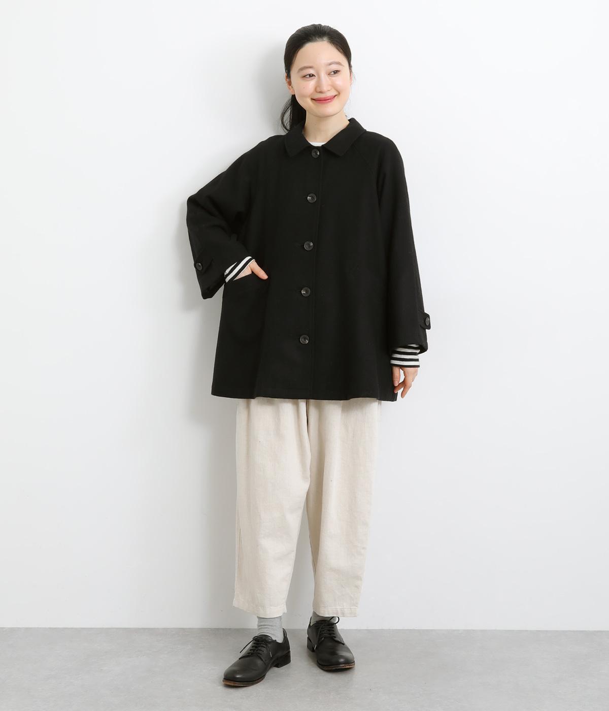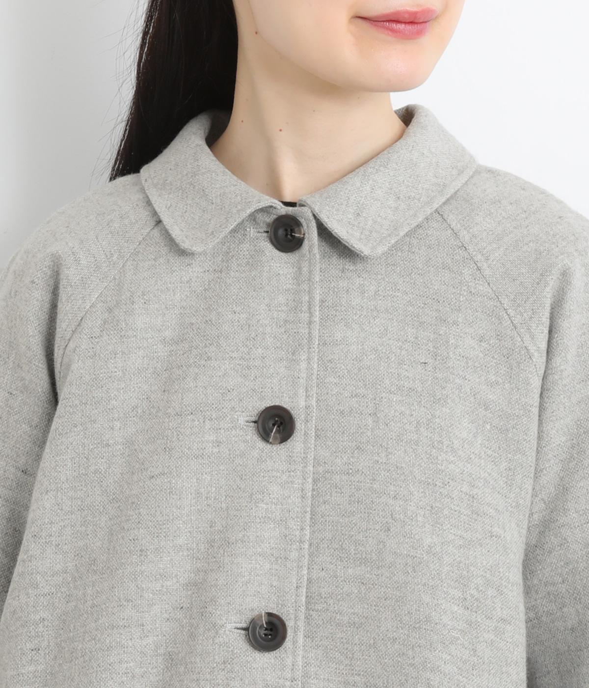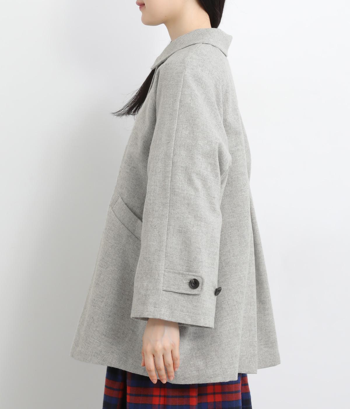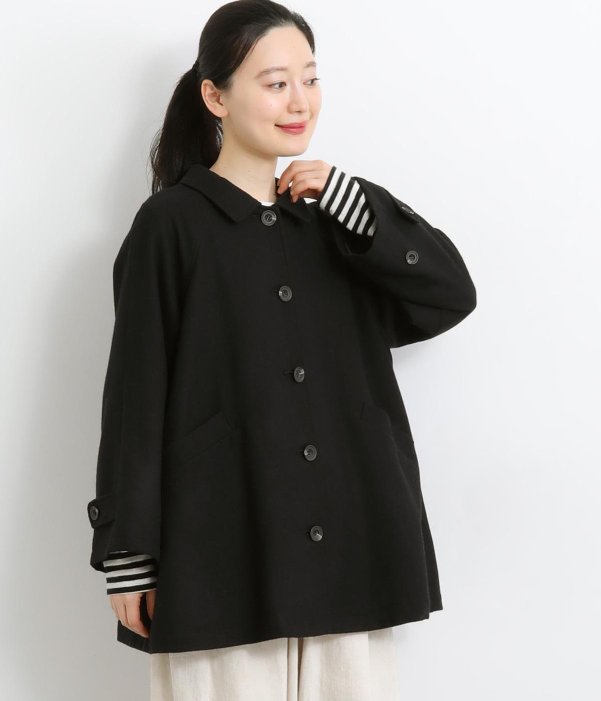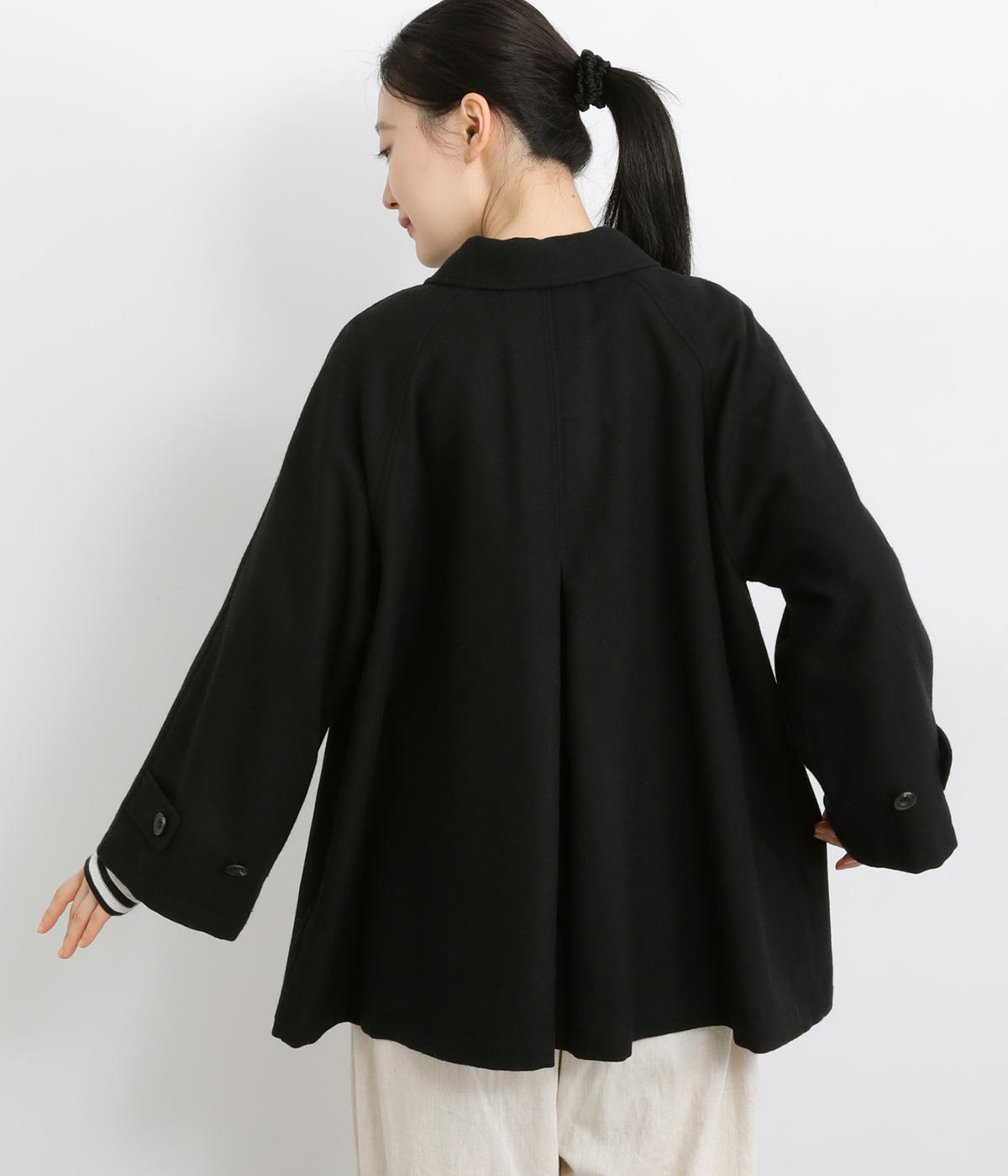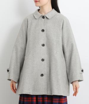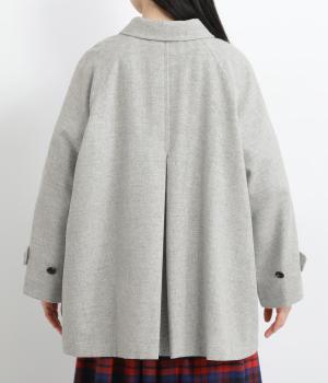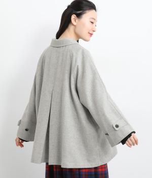 後ろタックでフレア感のあるAラインシルエットに仕立てたハーフコート。さり気ないドレープや肩のラインがやわらかなラグラン袖でフェミニンな表情に仕上がっています。全体的にゆとりがあるのでニットなども着込みやすい一着です。