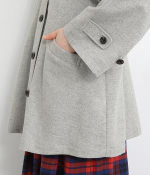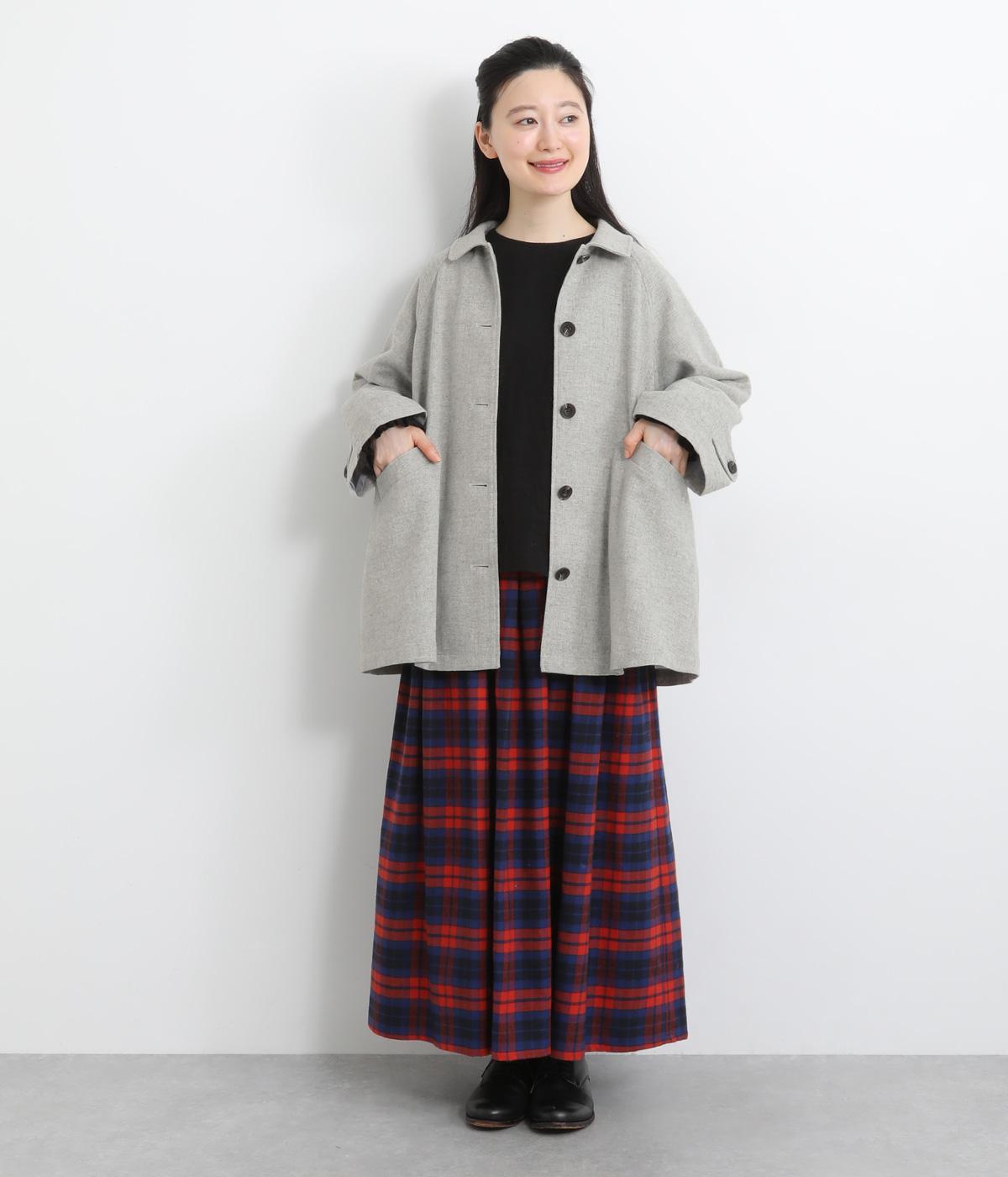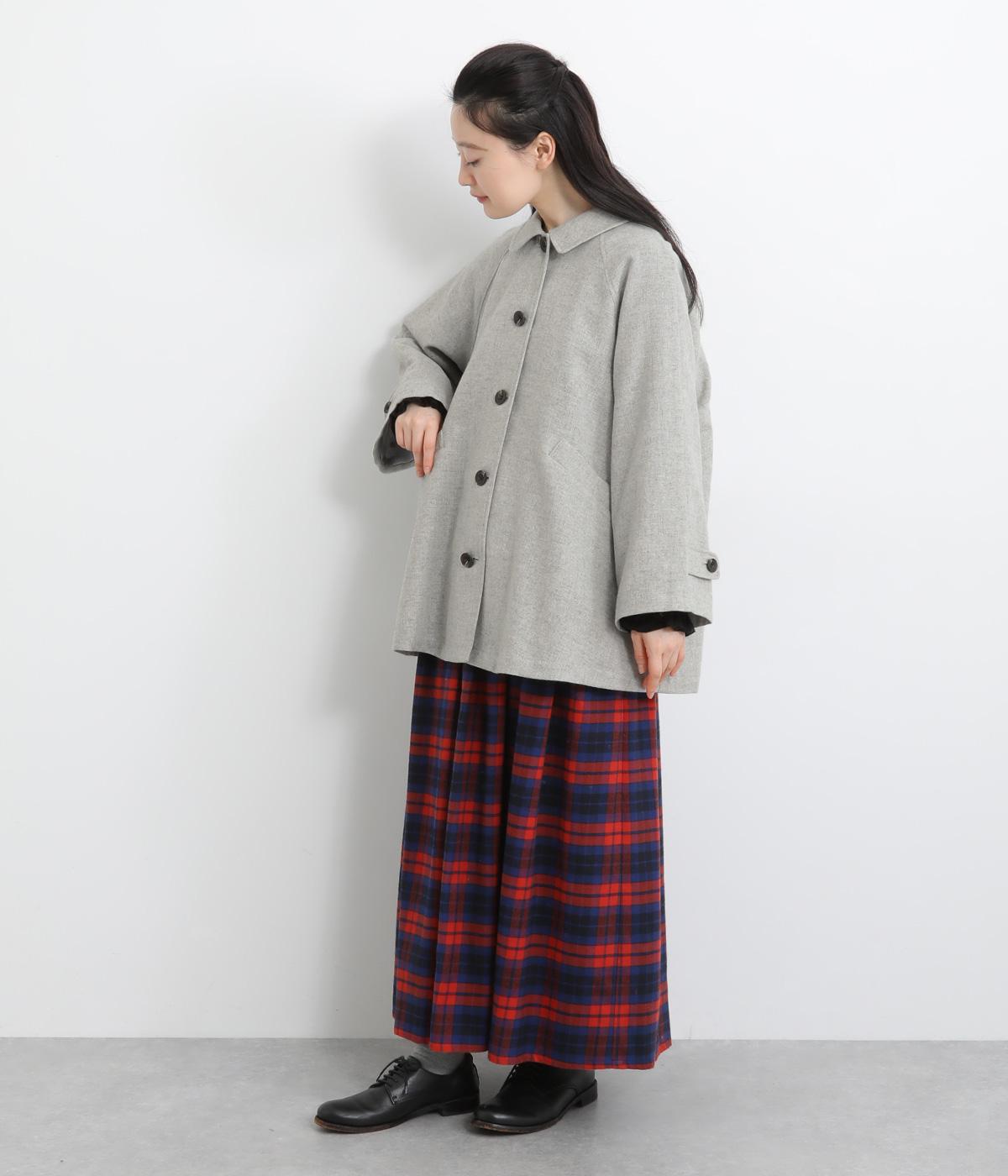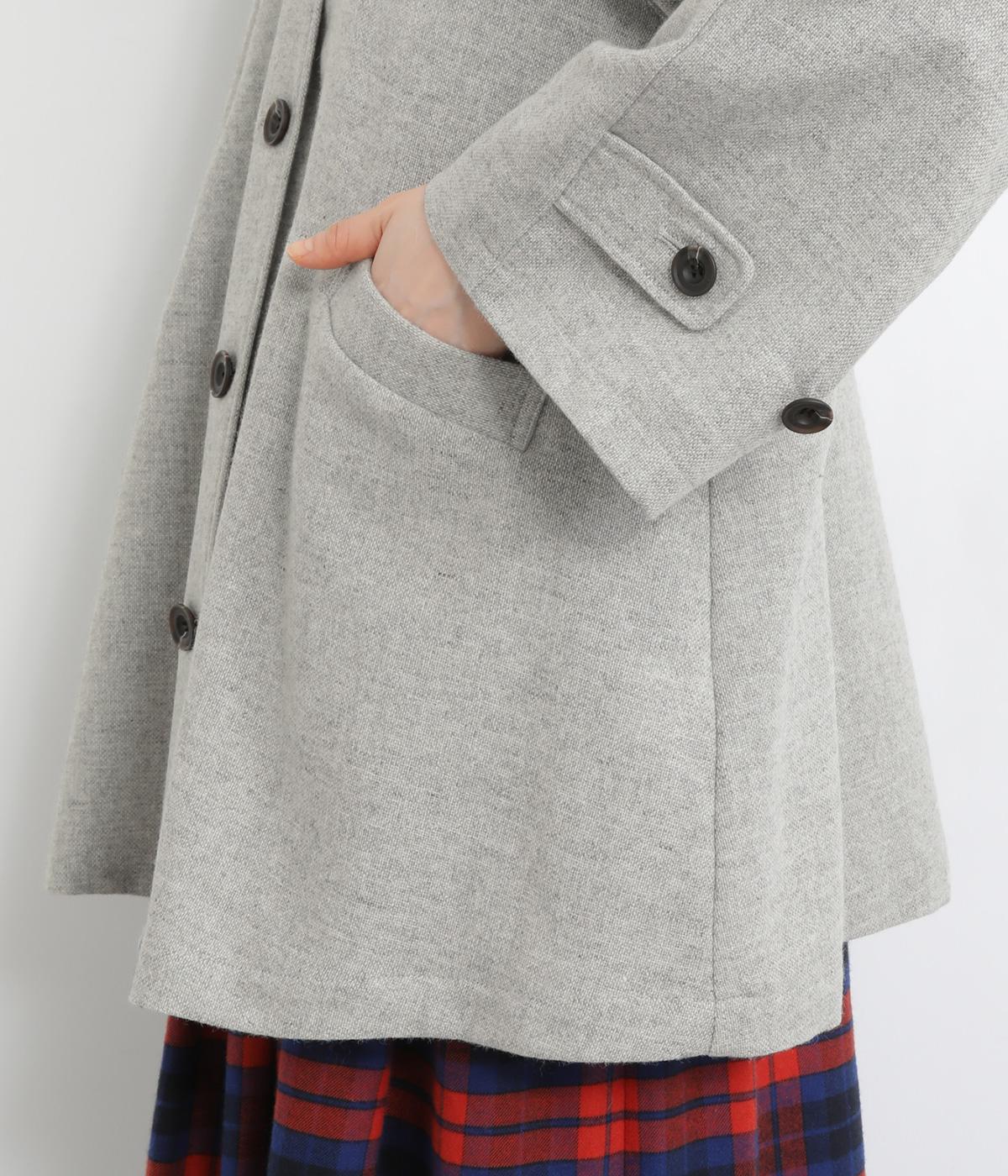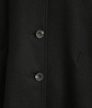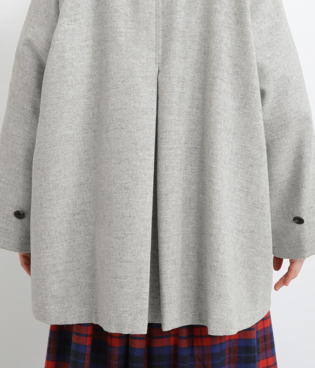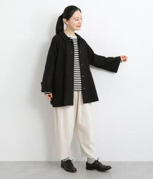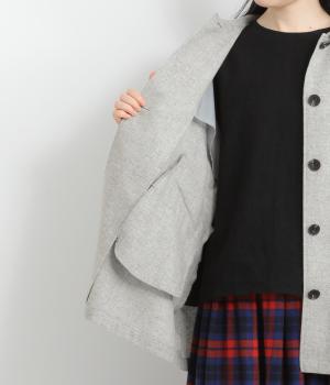 後ろタックでフレア感のあるAラインシルエットに仕立てたハーフコート。さり気ないドレープや肩のラインがやわらかなラグラン袖でフェミニンな表情に仕上がっています。全体的にゆとりがあるのでニットなども着込みやすい一着です。
