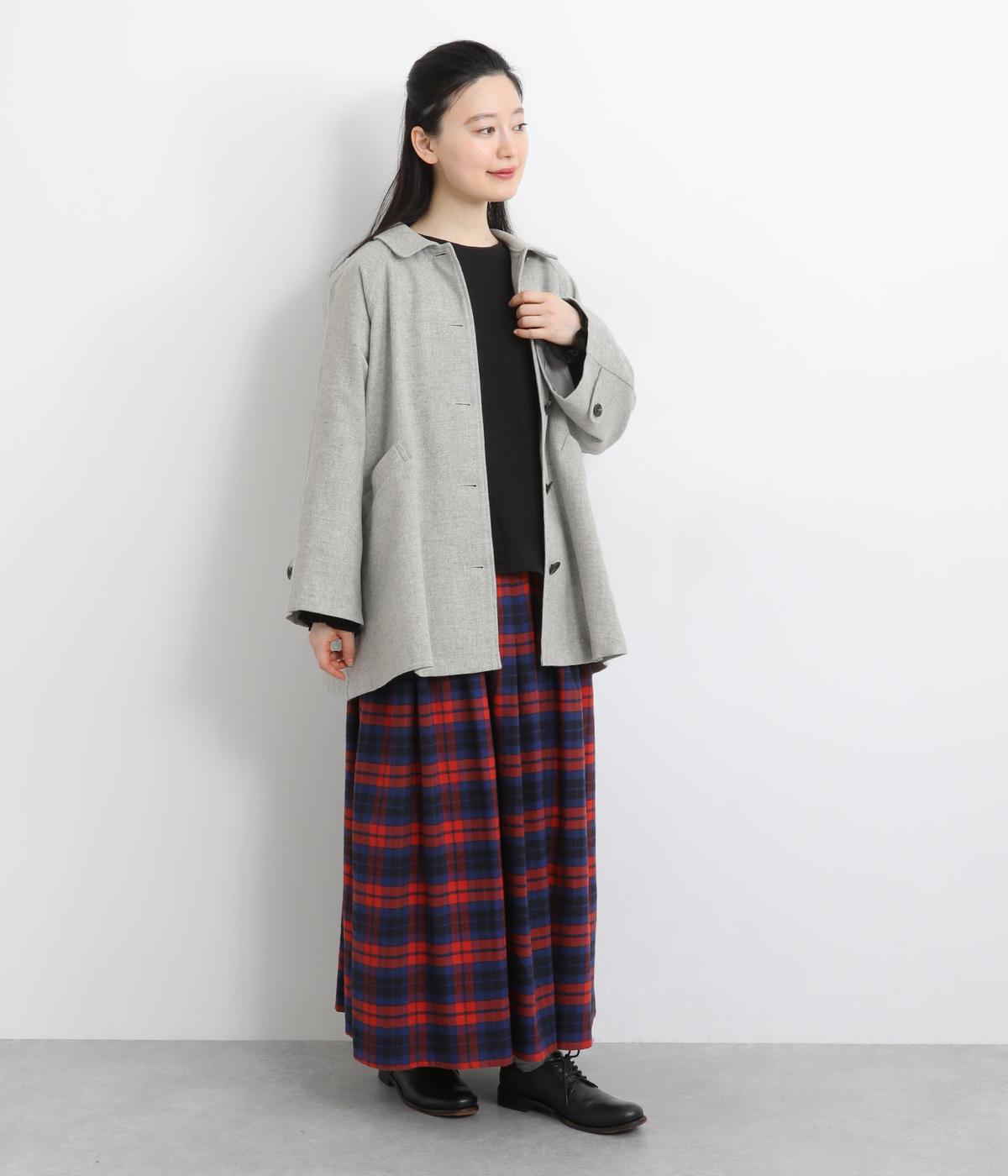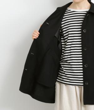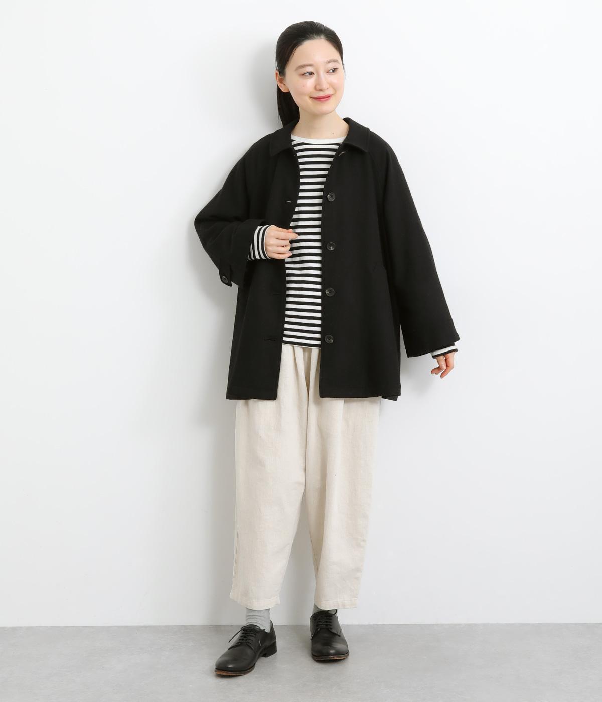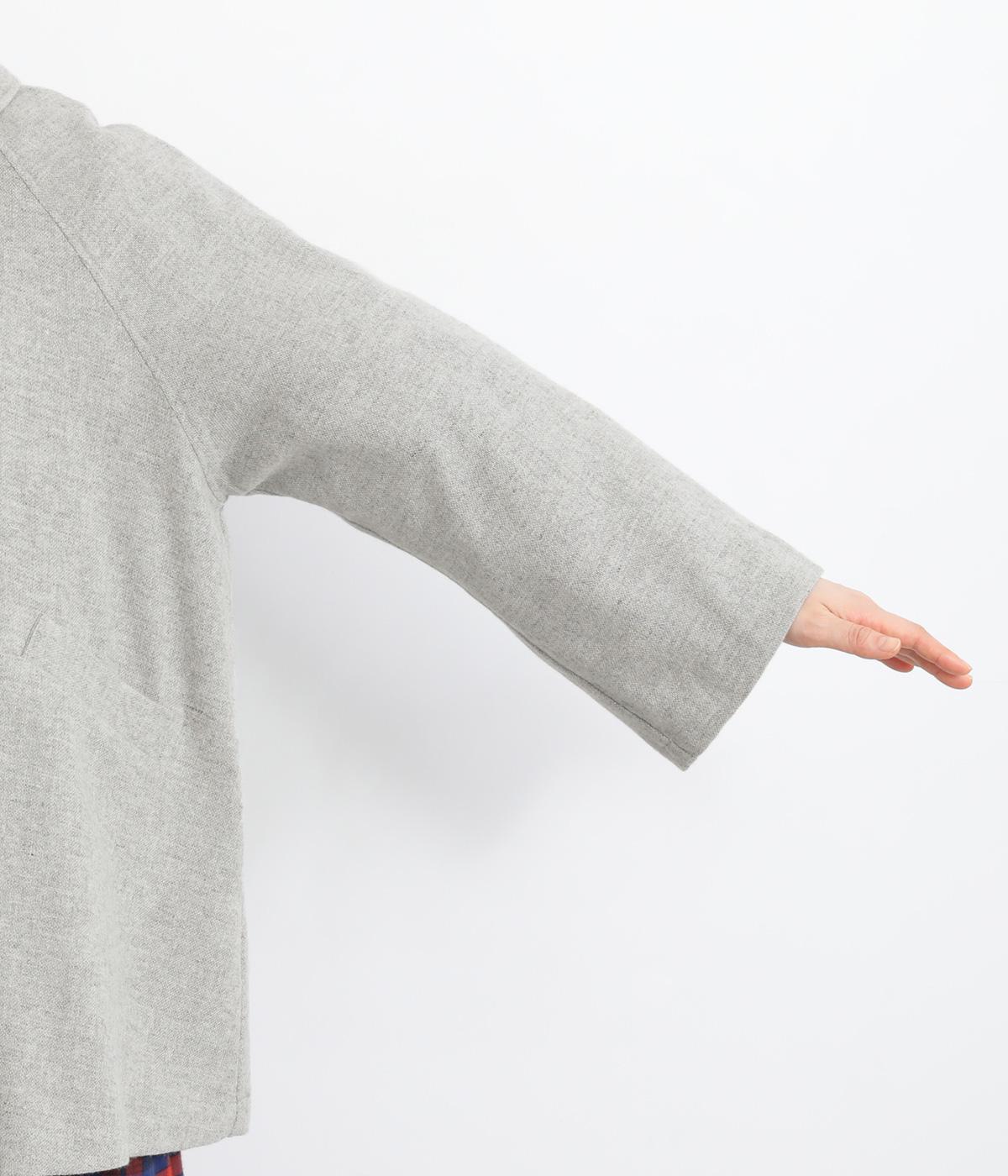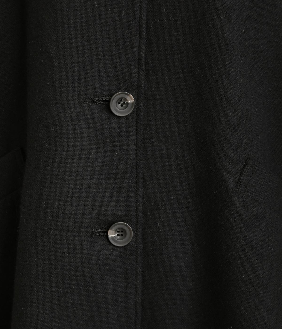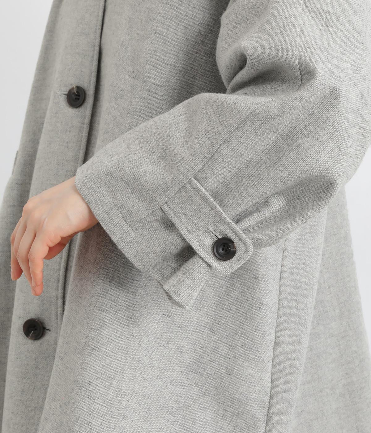 後ろタックでフレア感のあるAラインシルエットに仕立てたハーフコート。さり気ないドレープや肩のラインがやわらかなラグラン袖でフェミニンな表情に仕上がっています。全体的にゆとりがあるのでニットなども着込みやすい一着です。
