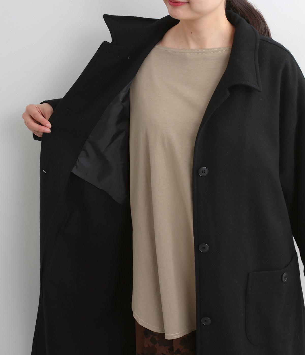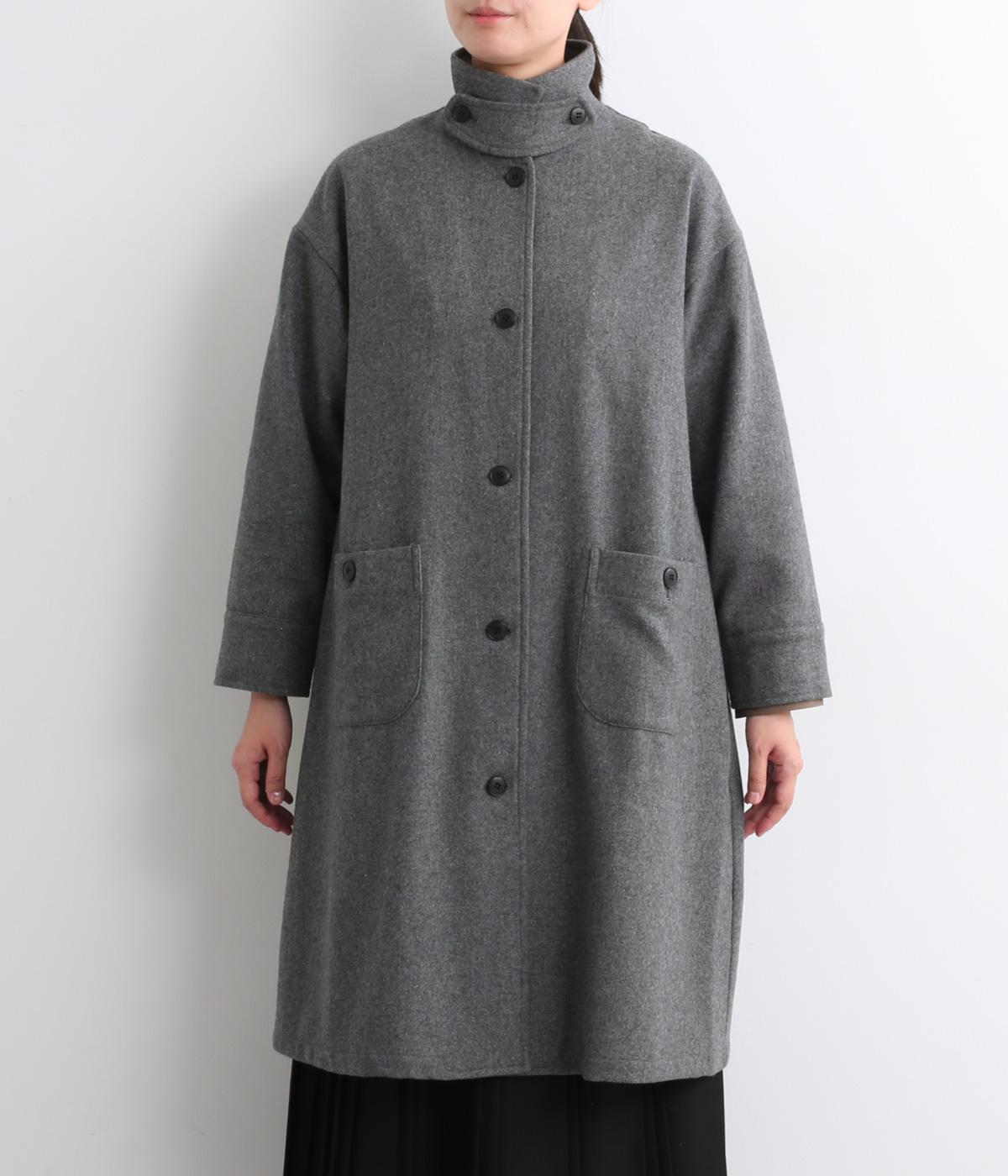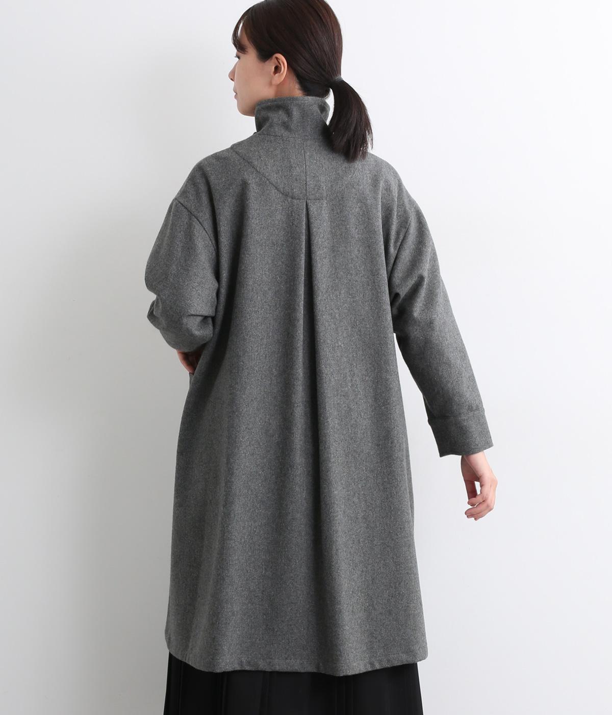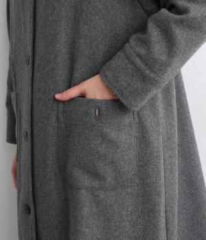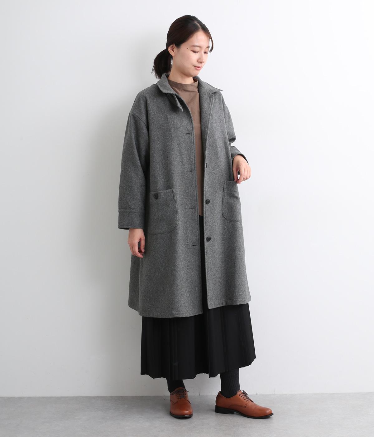 軽やかなのにあたたかいウールフラノで仕立てたロングコート。後ろにタック入りで、綺麗に広がるAラインを描きます。襟タブつきでスタンドカラーにすることもでき、雰囲気が変わるのも◎。厚手のニットなども着込めるので、真冬まで活躍します。