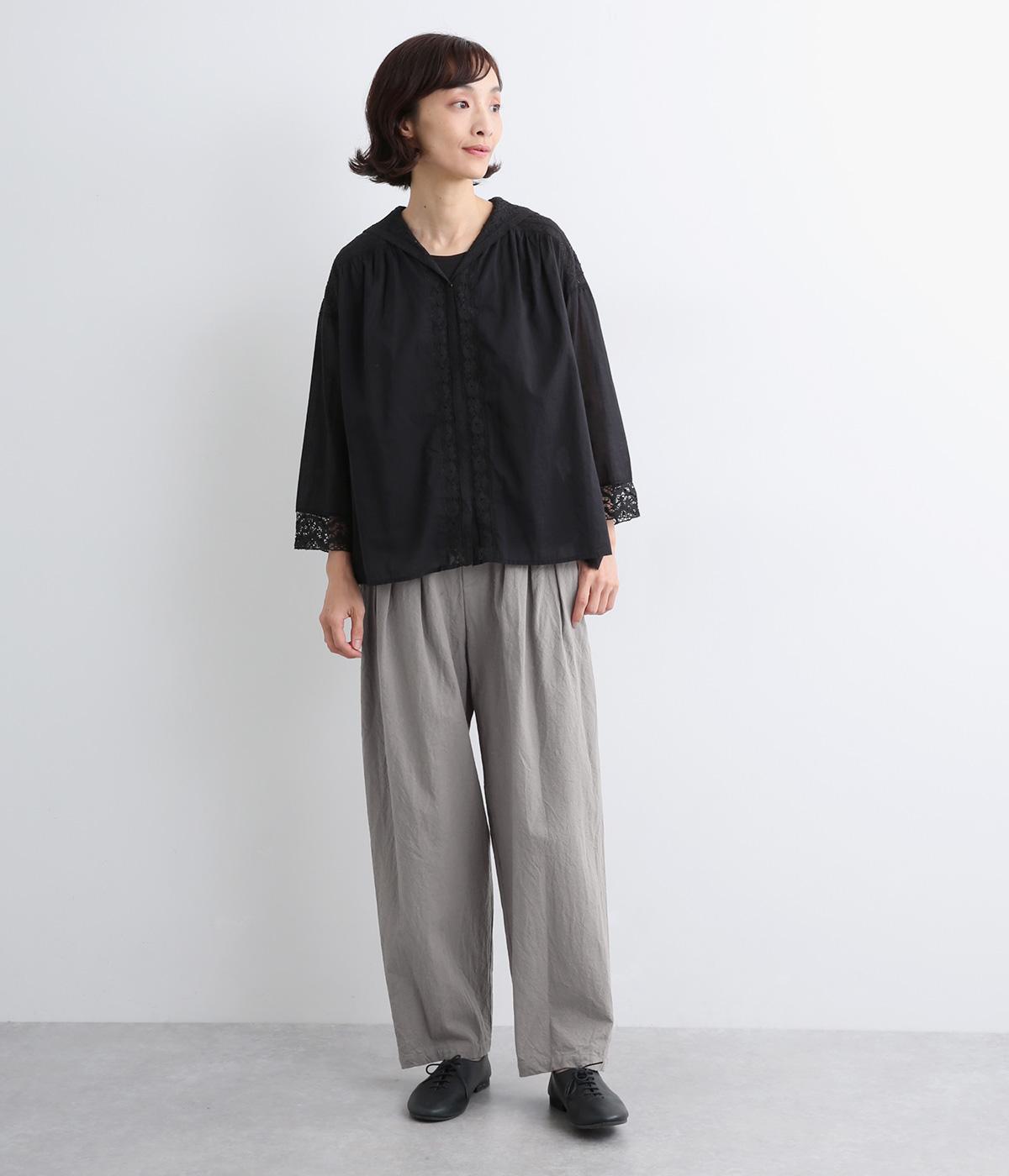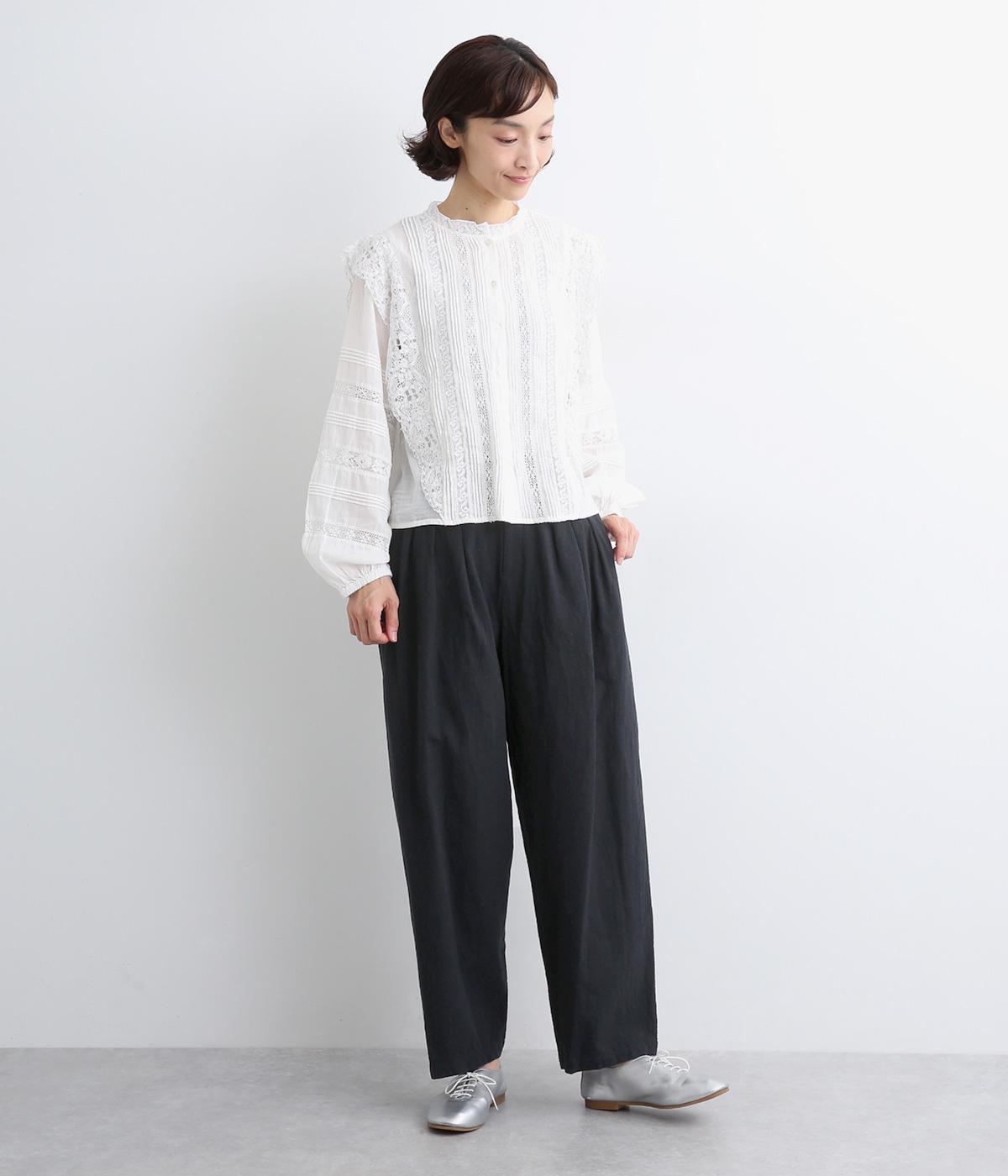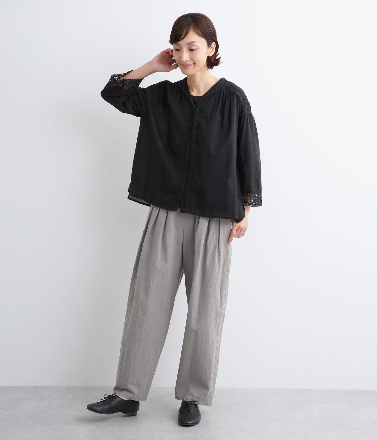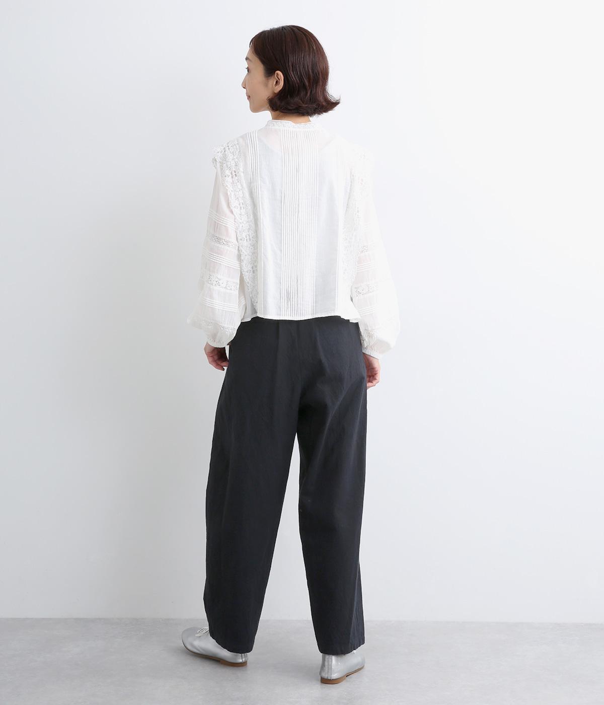 パリッとした生地感がシルエットをきれいに描くタックパンツ。素材感がいいのでラフな着こなしもさまになり、トップスインもおすすめ。前ファスナーで脱ぎはきしやすく、後ろゴム入りでフィット感もグッド。ループつきでベルトマークもたのしめます。