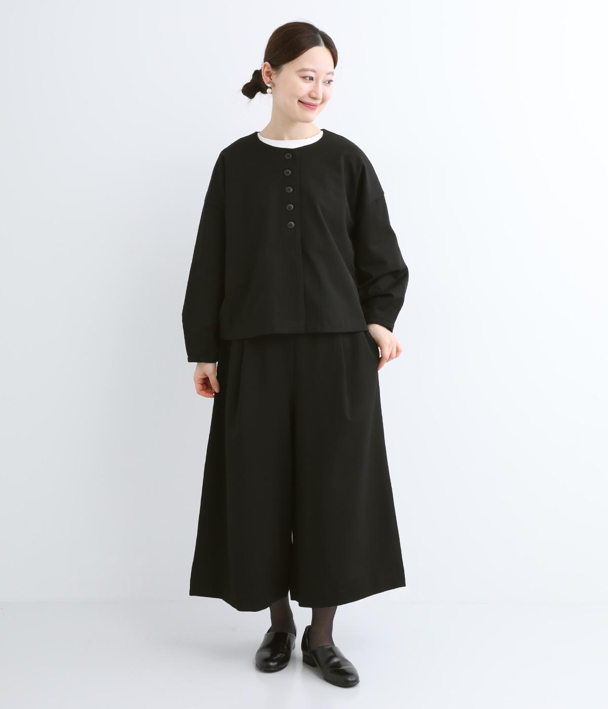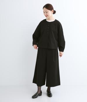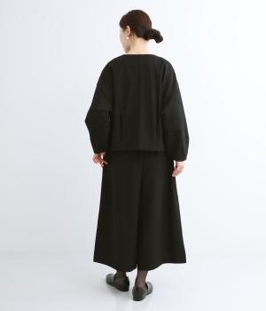 ふっくらとした弾力性とほどよい肉感のあるポンチ素材。見た目にもなめらかな質感が着こなしに上品なムードを添えます。動きやすさをアップするストレッチ性の高さも魅力です。