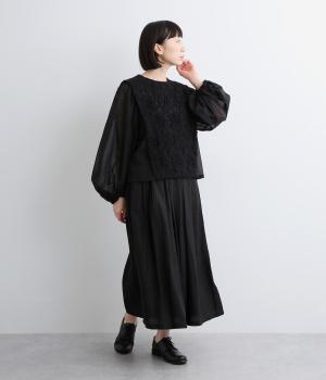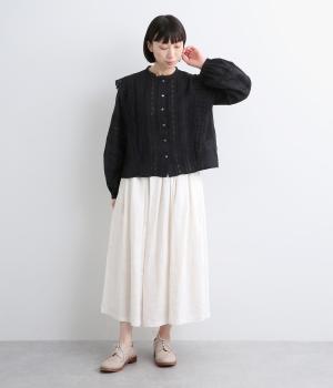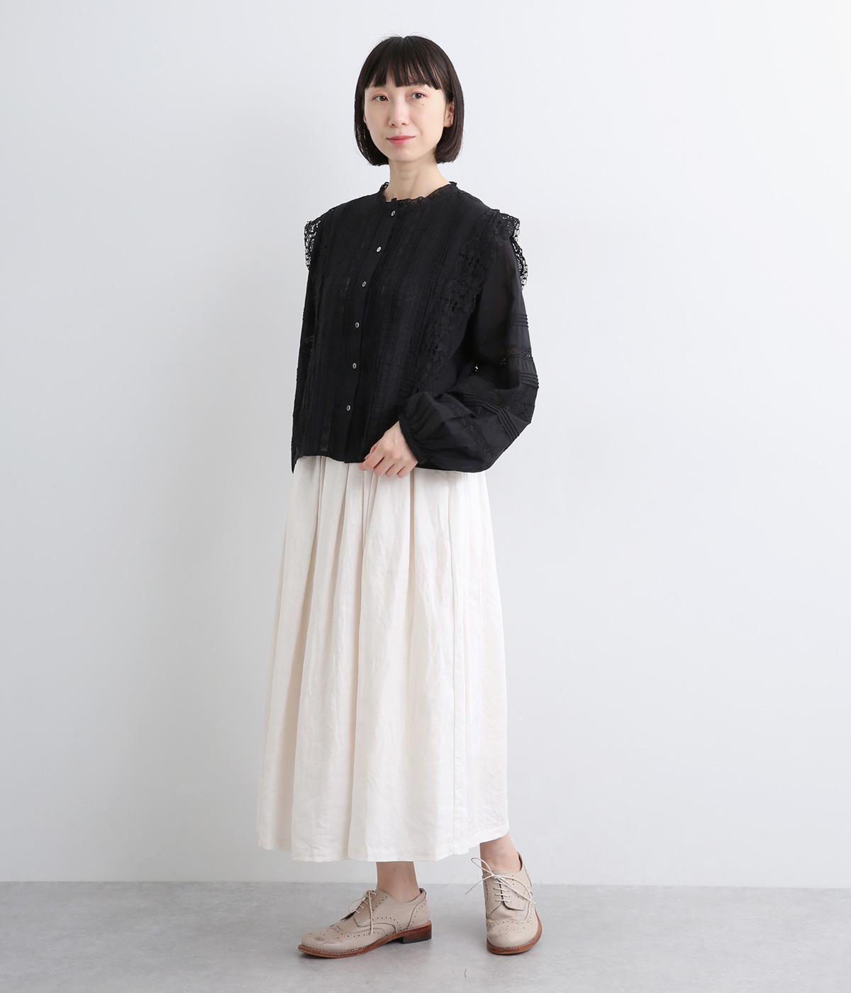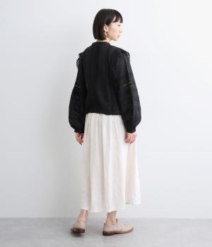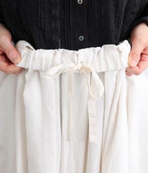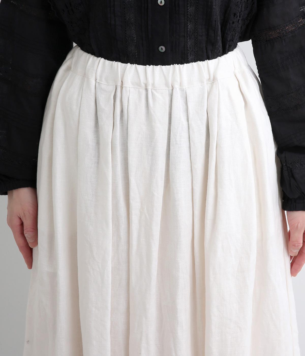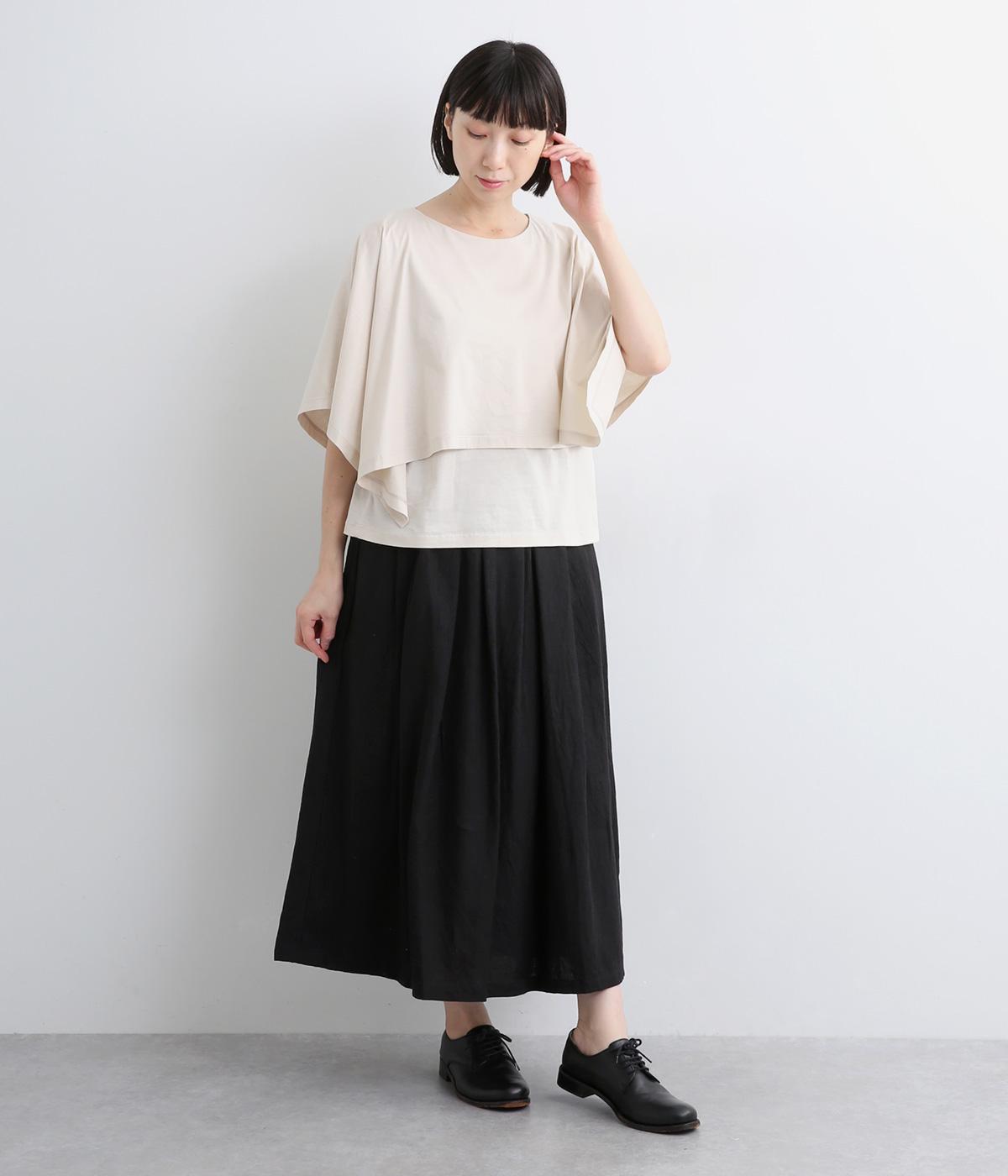タックを寄せたフレアスカートは自然なドレープ感が品のいい印象に。落ち感もあってすっきりとスタイリングしやすく、ナチュラルな素材感で雰囲気良く着こなせます。シューズ合わせがたのしめる丈感もグッド。ウエストは総ゴム&内紐のイージー仕様です。