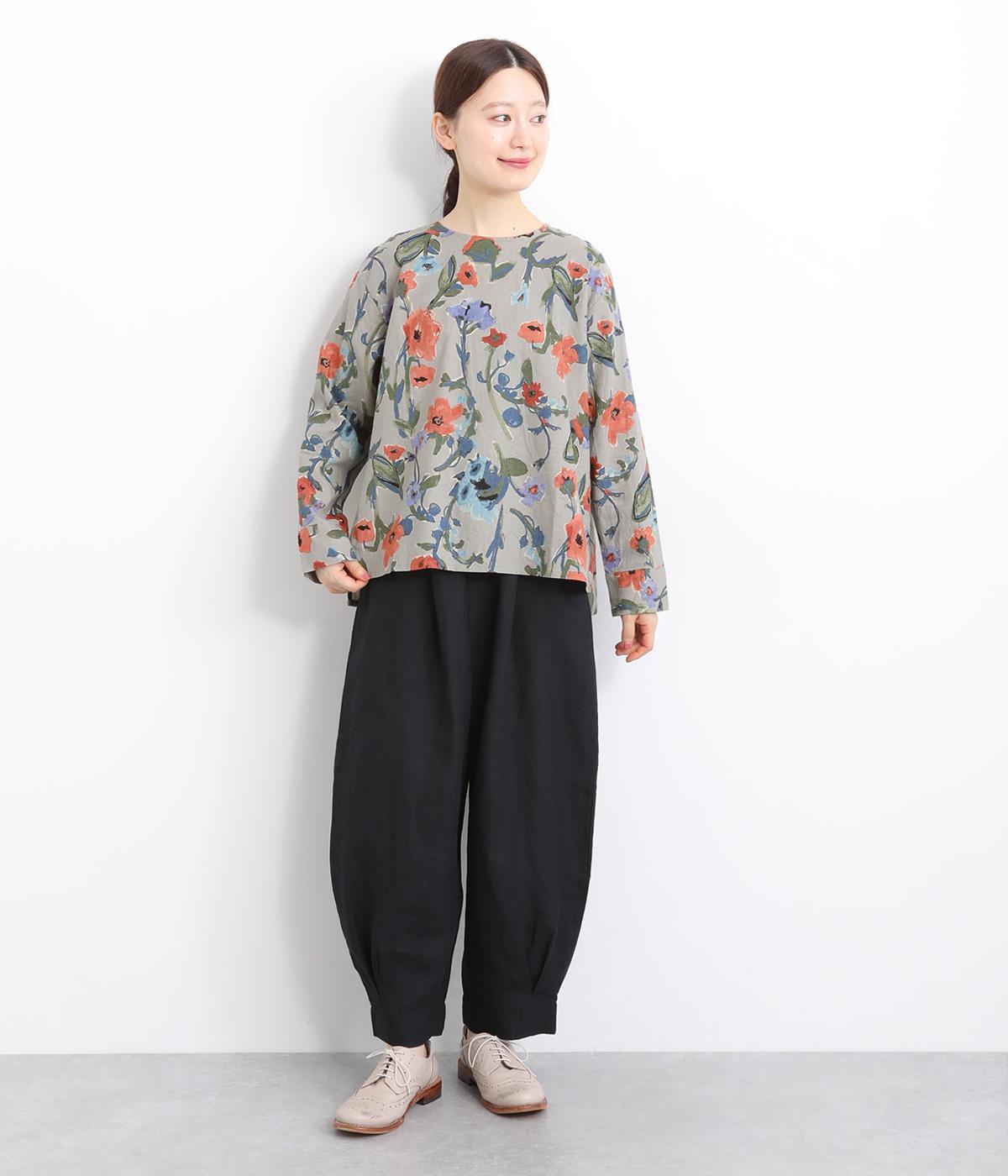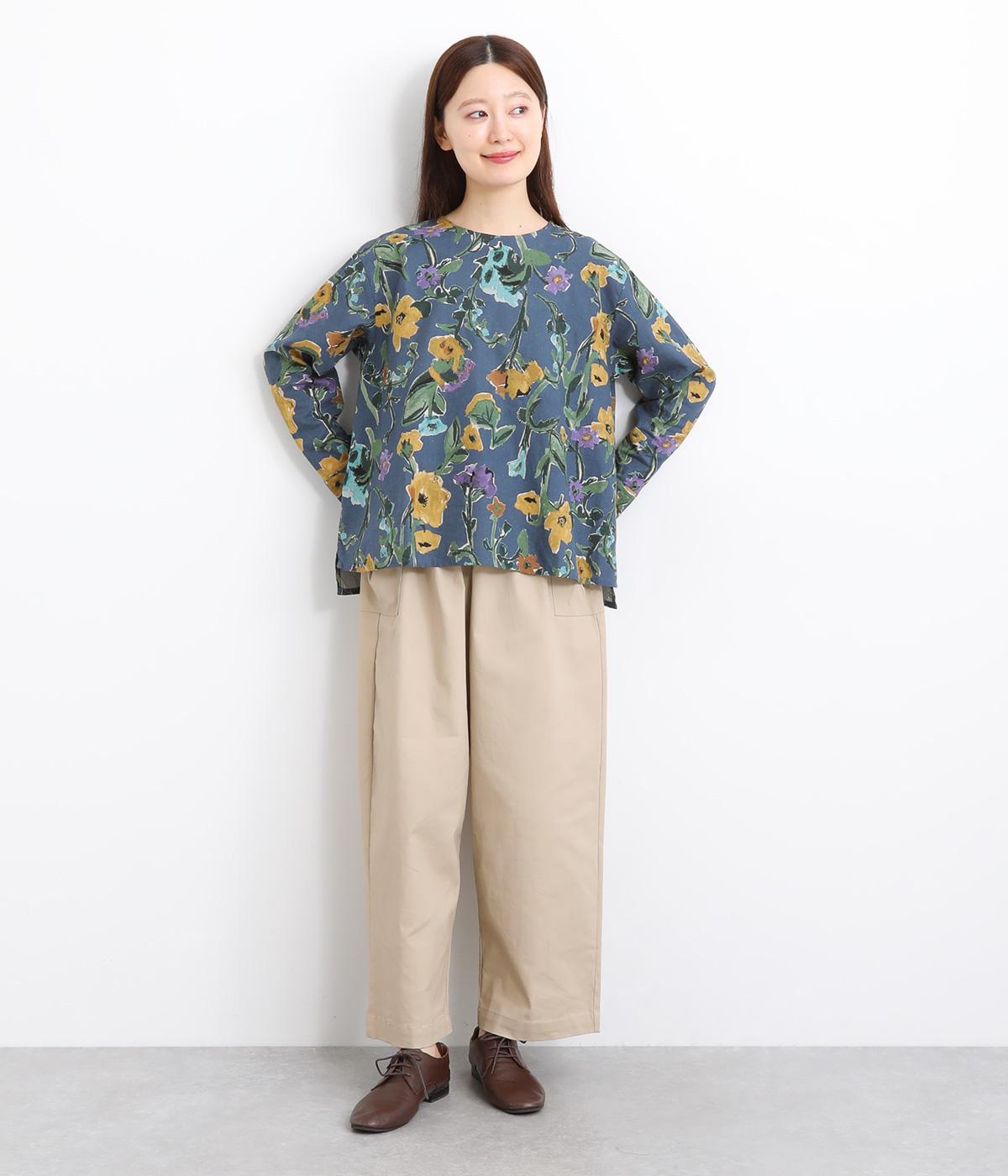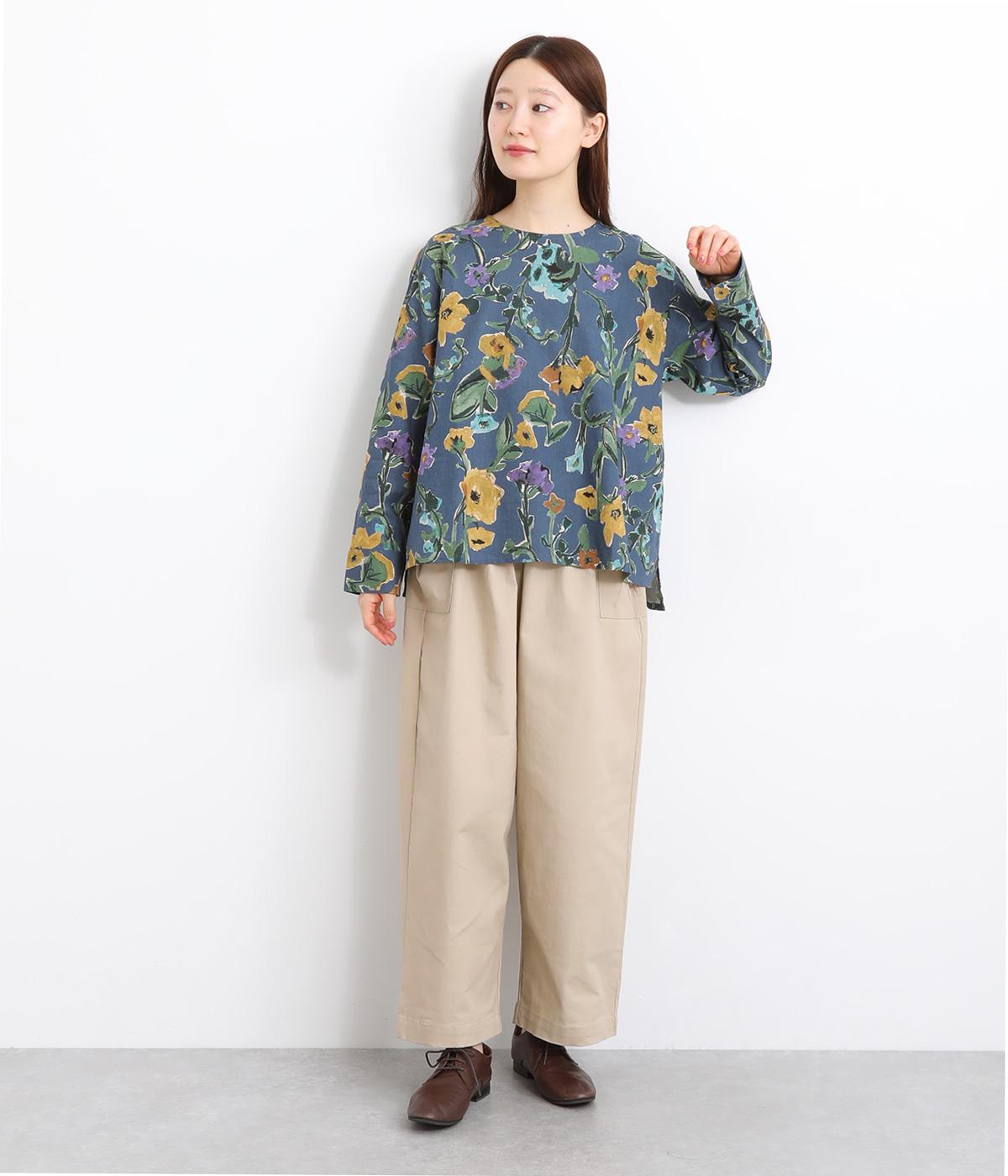 ソフトな肌あたりとさらっとした心地よいドライ感を持ったコットンリネン生地を使用しています。それぞれの特性を活かした混紡素材で通気性も良くデイリー使いに最適。薄手なので通年着まわせます。
