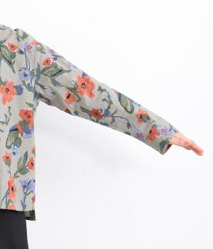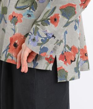 クラシカルでモダンな花柄が着こなしを品よく華やかに魅せてくれます。脱ぎ着のしやすさとデザイン性を両立させた後ろDカンが特徴的。ゆったり着やすいシルエットにサイドスリットで適度に抜け感をつけました。ラフに着やすく上品にまとめてくれる一枚です。