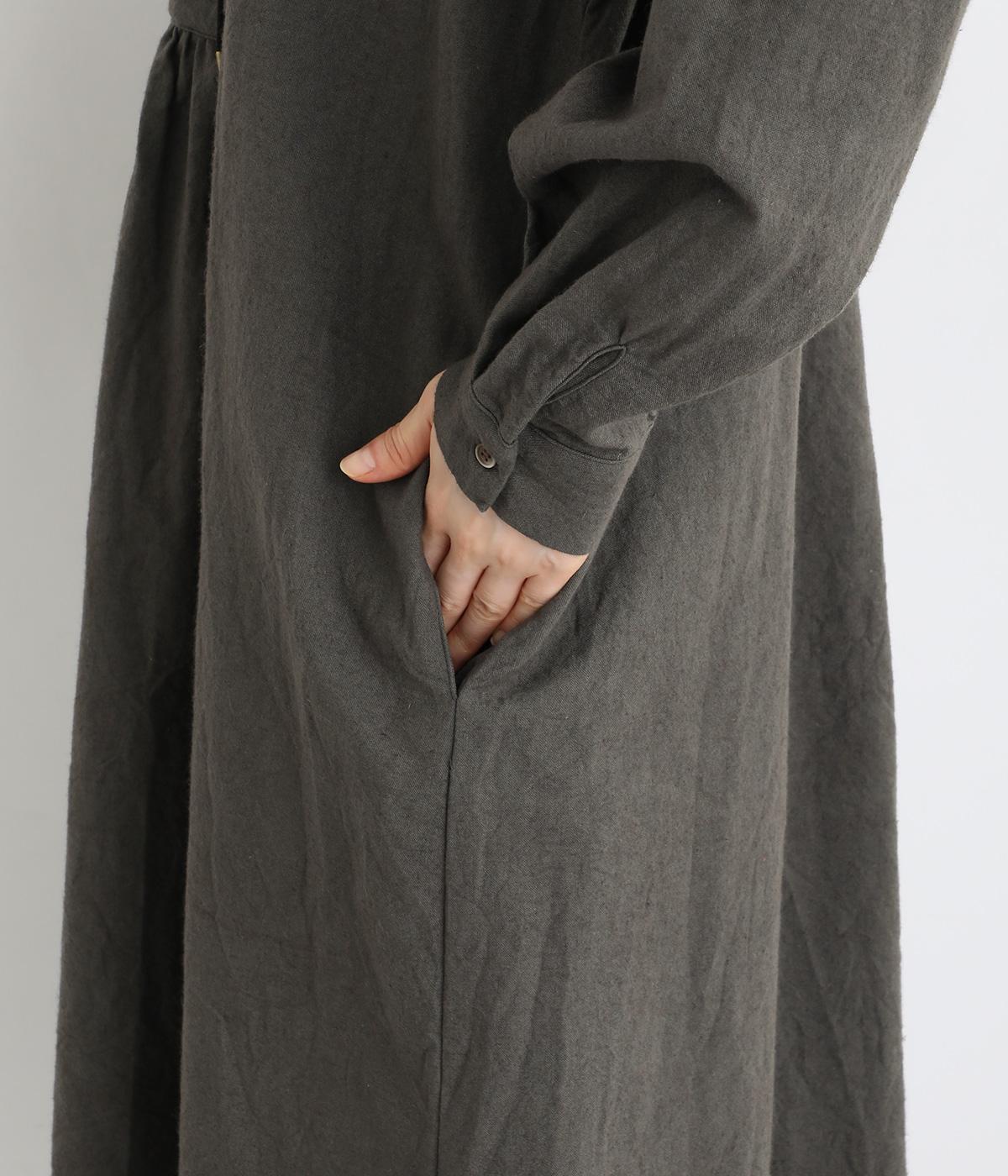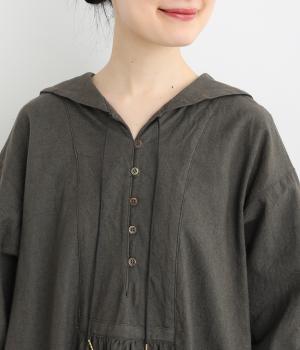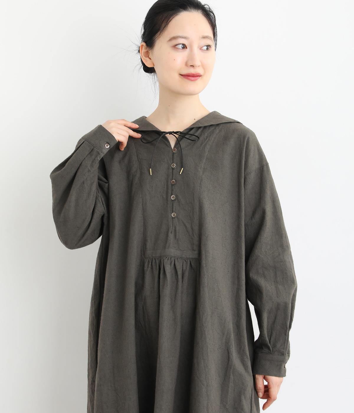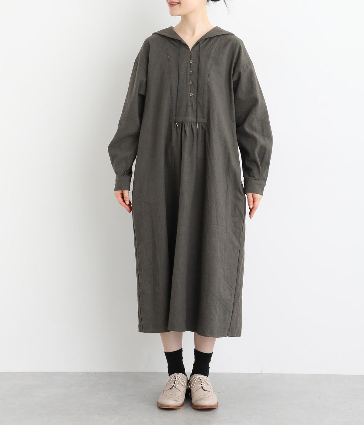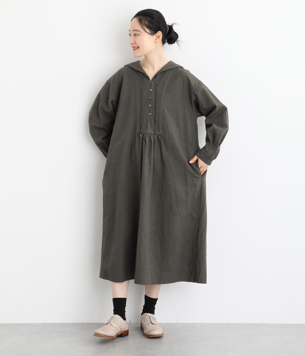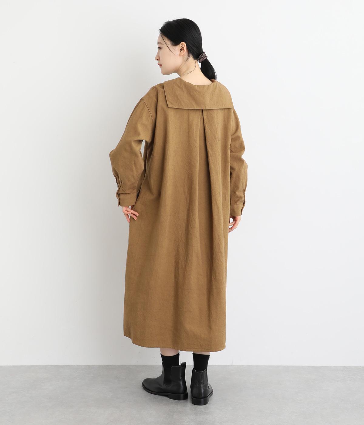 ぬくもりを感じさせ、洗いざらしのような自然なシワやハリのある見た目がハイセンスな印象を与えるタックワンピース。愛らしくてクラシックなセーラー襟がアクセントになっています。ソックスやシューズのテイストを変えることで、コーディネートの幅が広がります。
