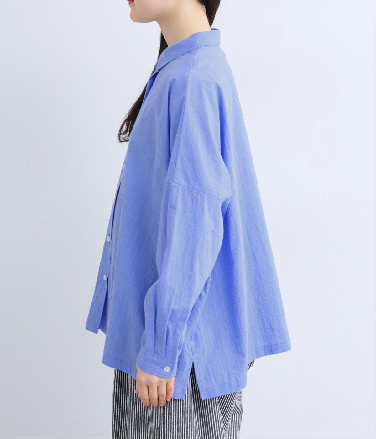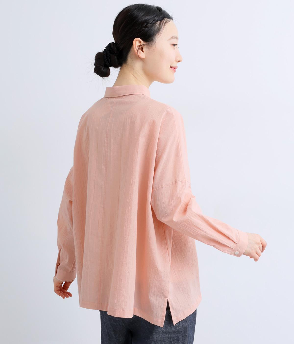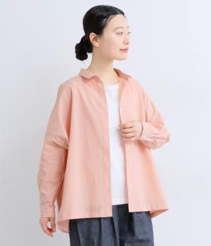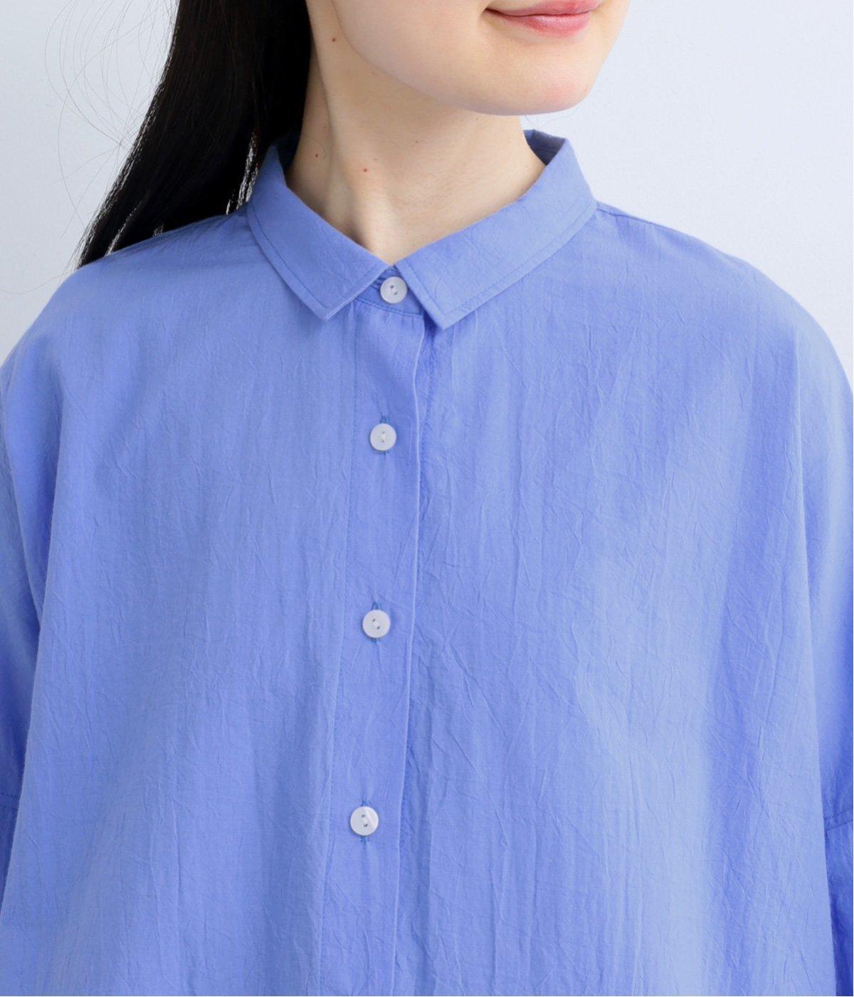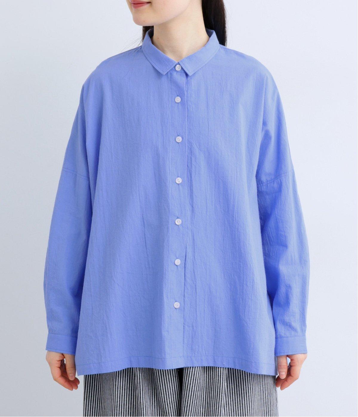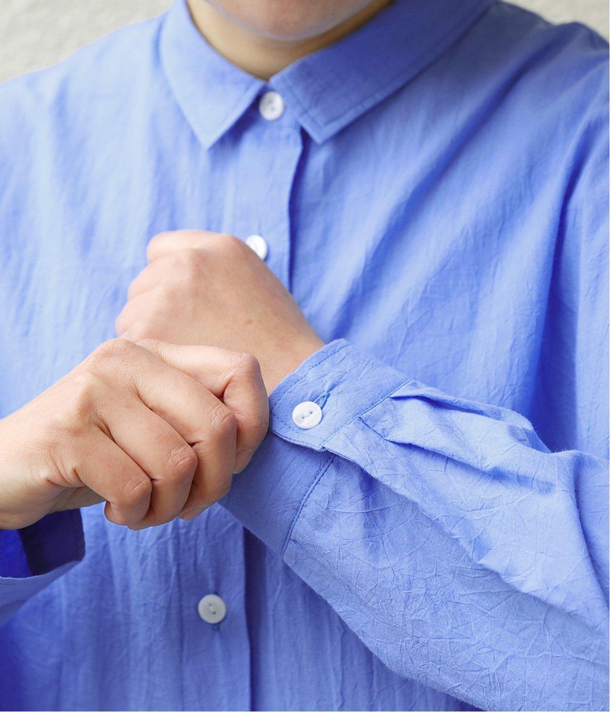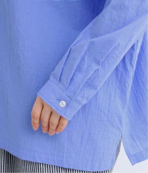 ドロップショルダーのゆったりとしたシルエットに、小ぶりなレギュラーカラーを合わせ、かわいらしさをプラスしました。袖口にはタックを入れ、すっきりとした印象に。裾にはスリットを施し、動きやすさと抜け感を演出。やわらかな生地なので、ボタンを上までとめてもほどよいラフさがある一枚です。