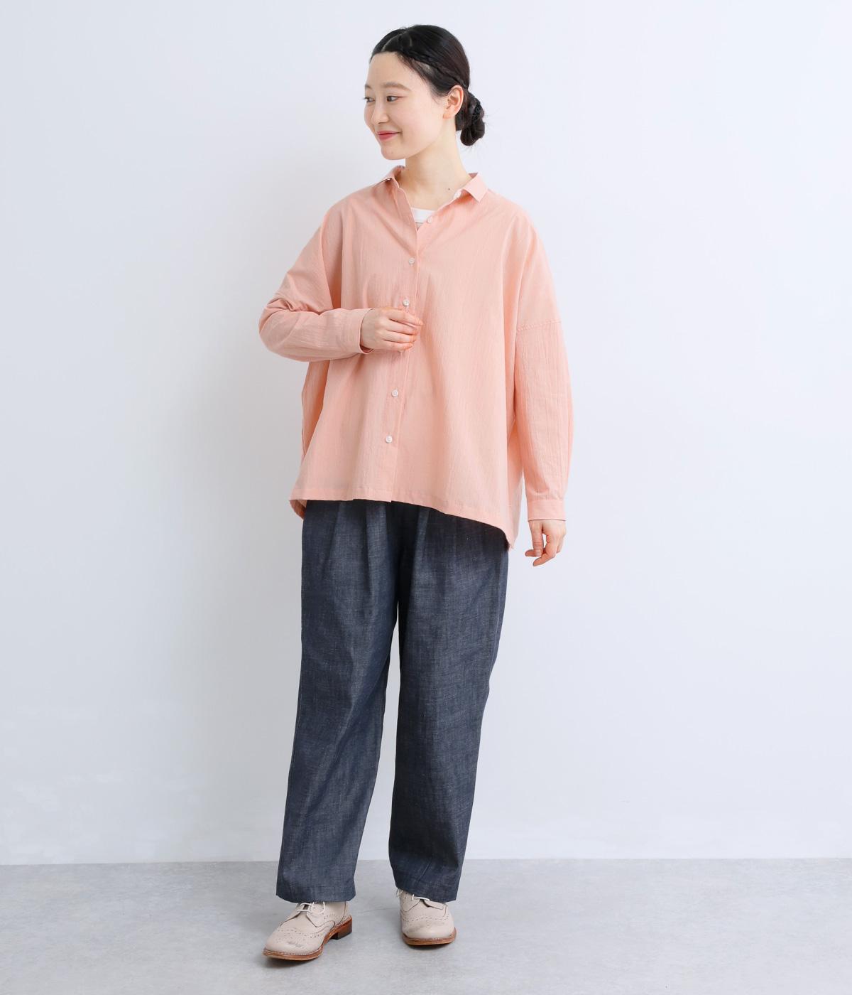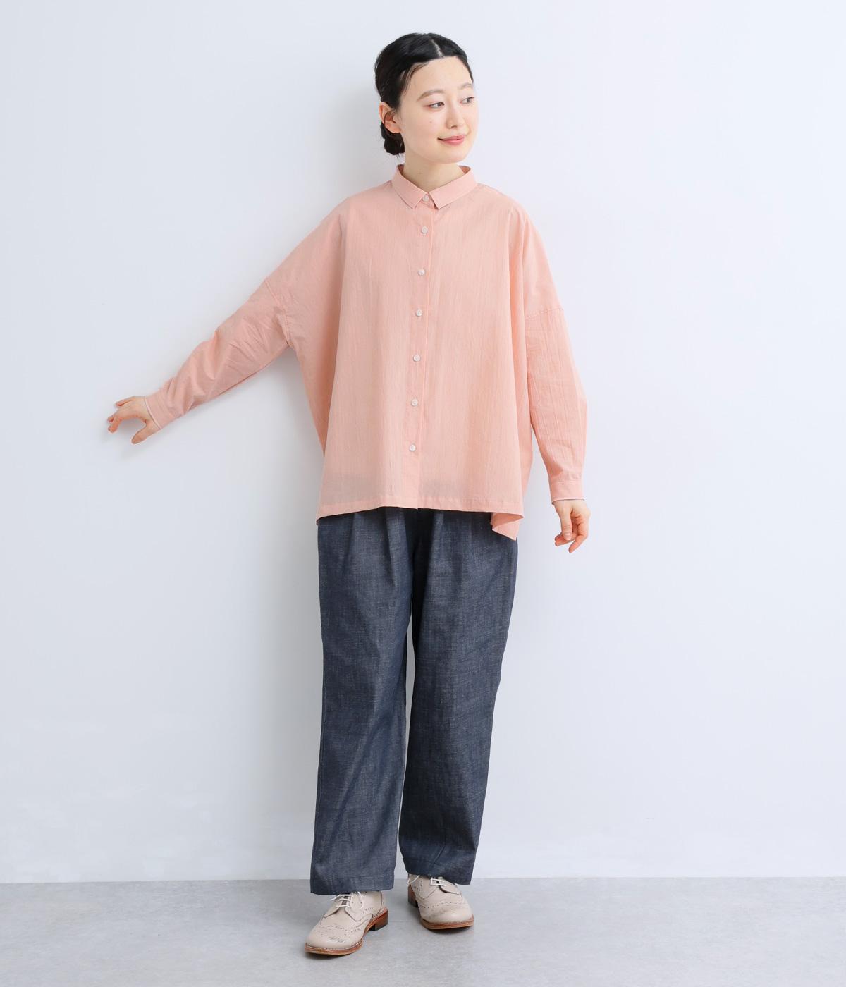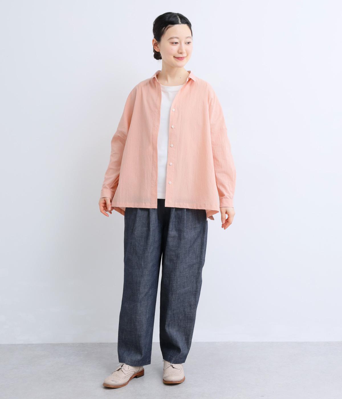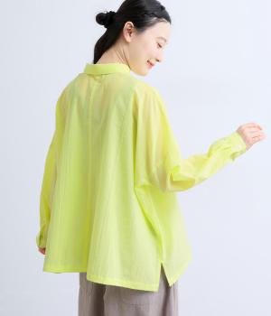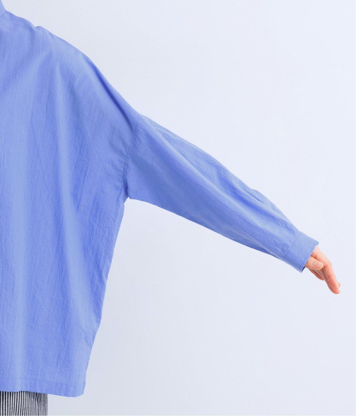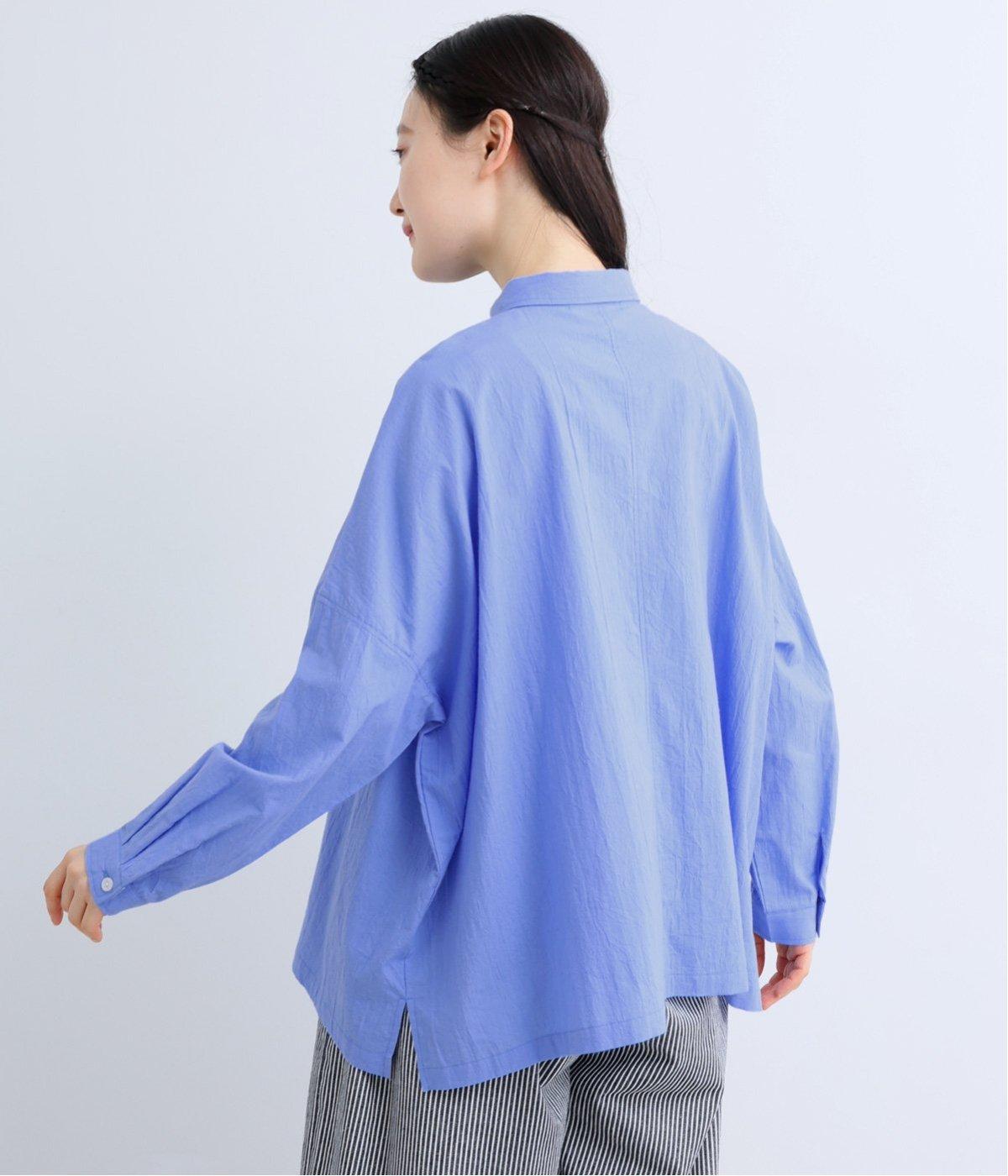 ドロップショルダーのゆったりとしたシルエットに、小ぶりなレギュラーカラーを合わせ、かわいらしさをプラスしました。袖口にはタックを入れ、すっきりとした印象に。裾にはスリットを施し、動きやすさと抜け感を演出。やわらかな生地なので、ボタンを上までとめてもほどよいラフさがある一枚です。