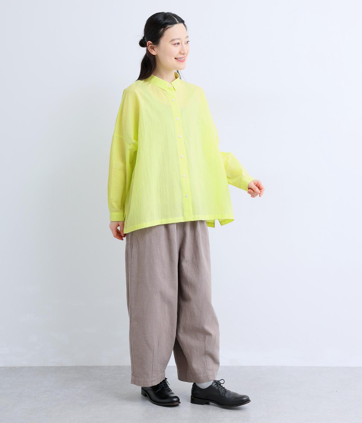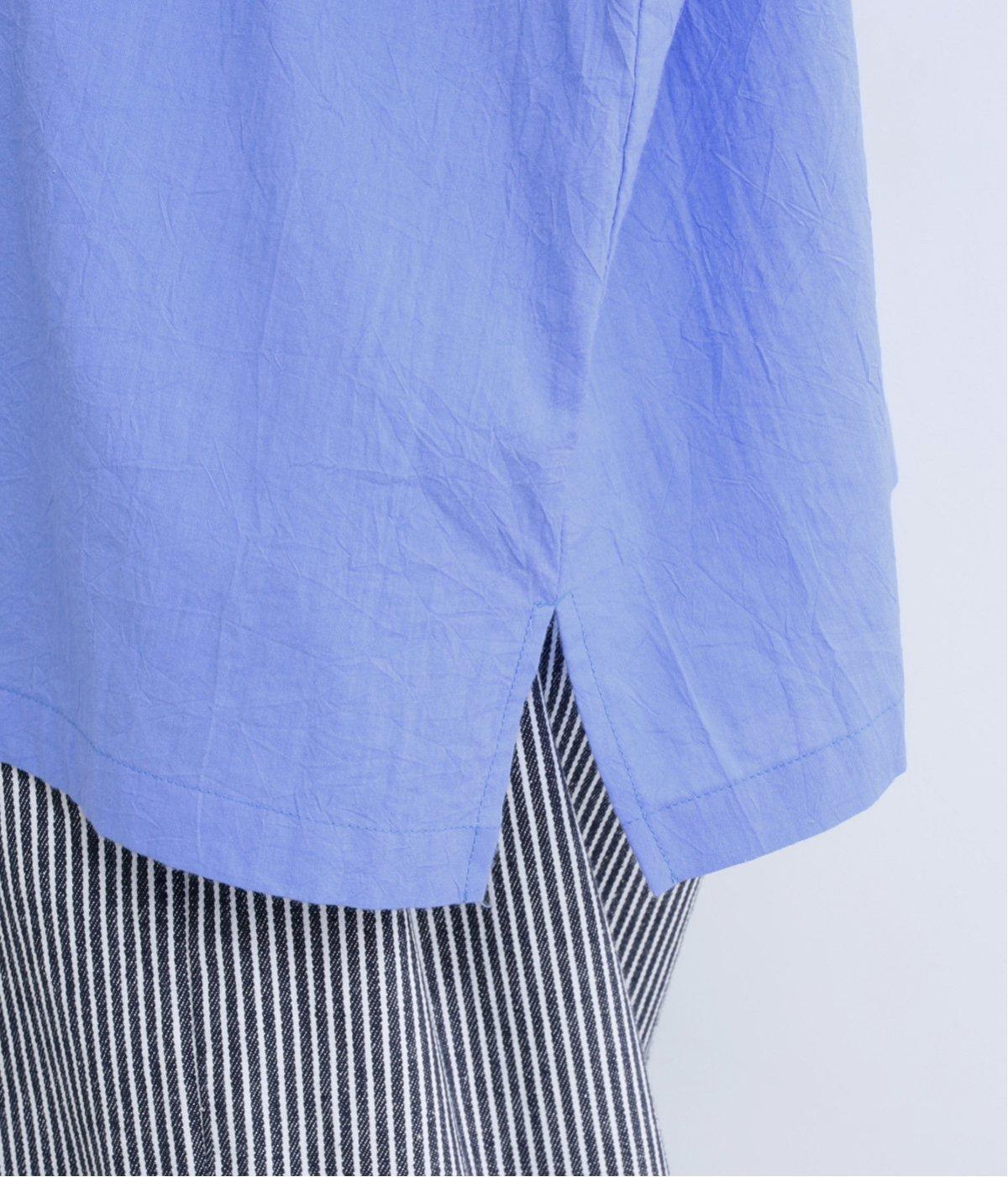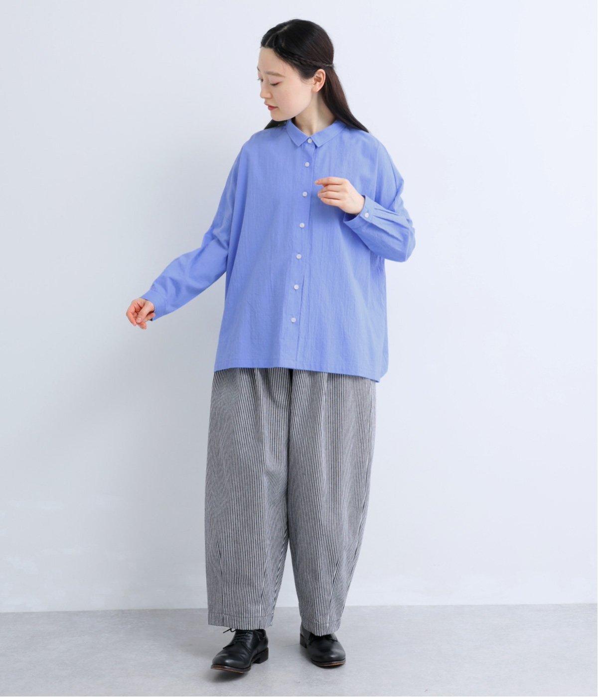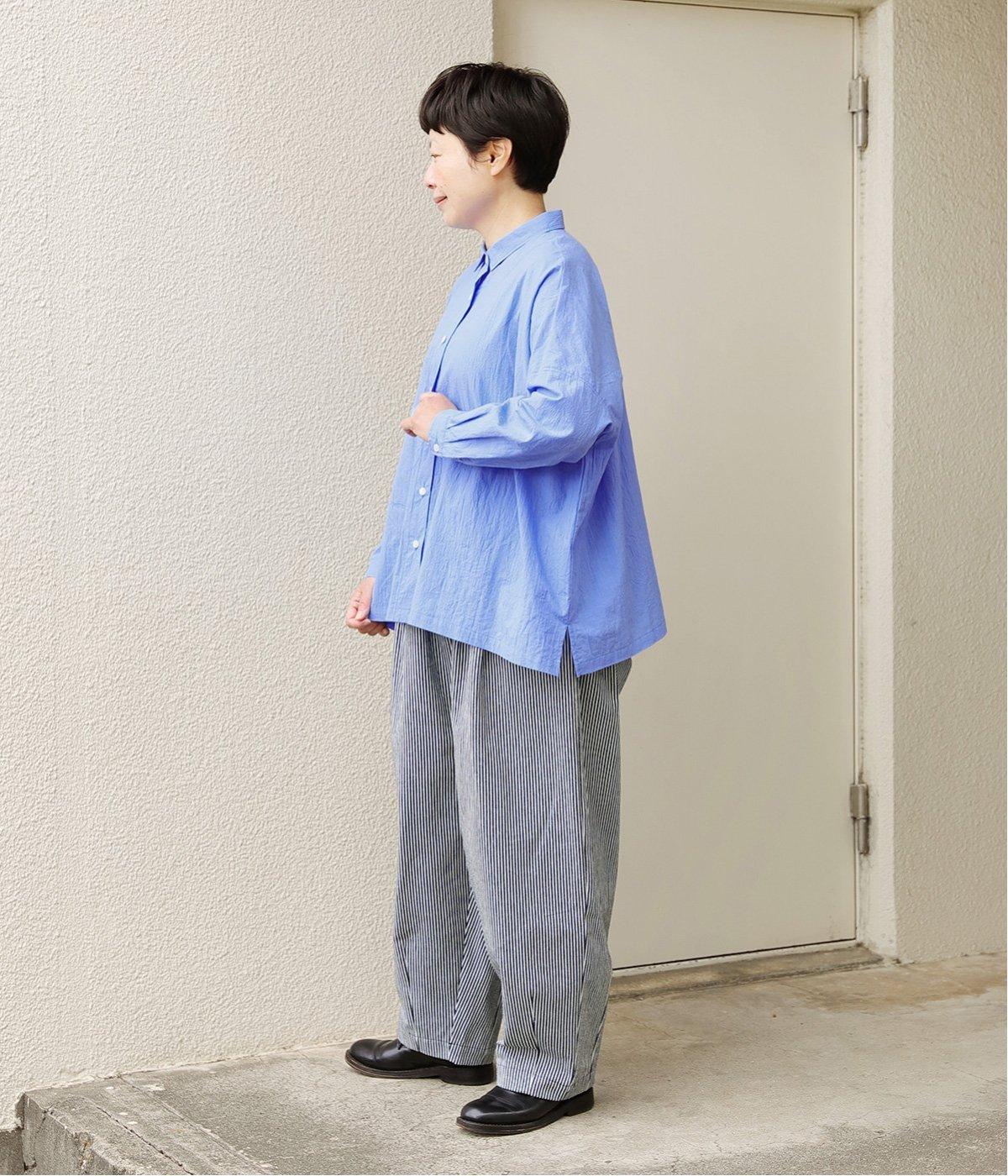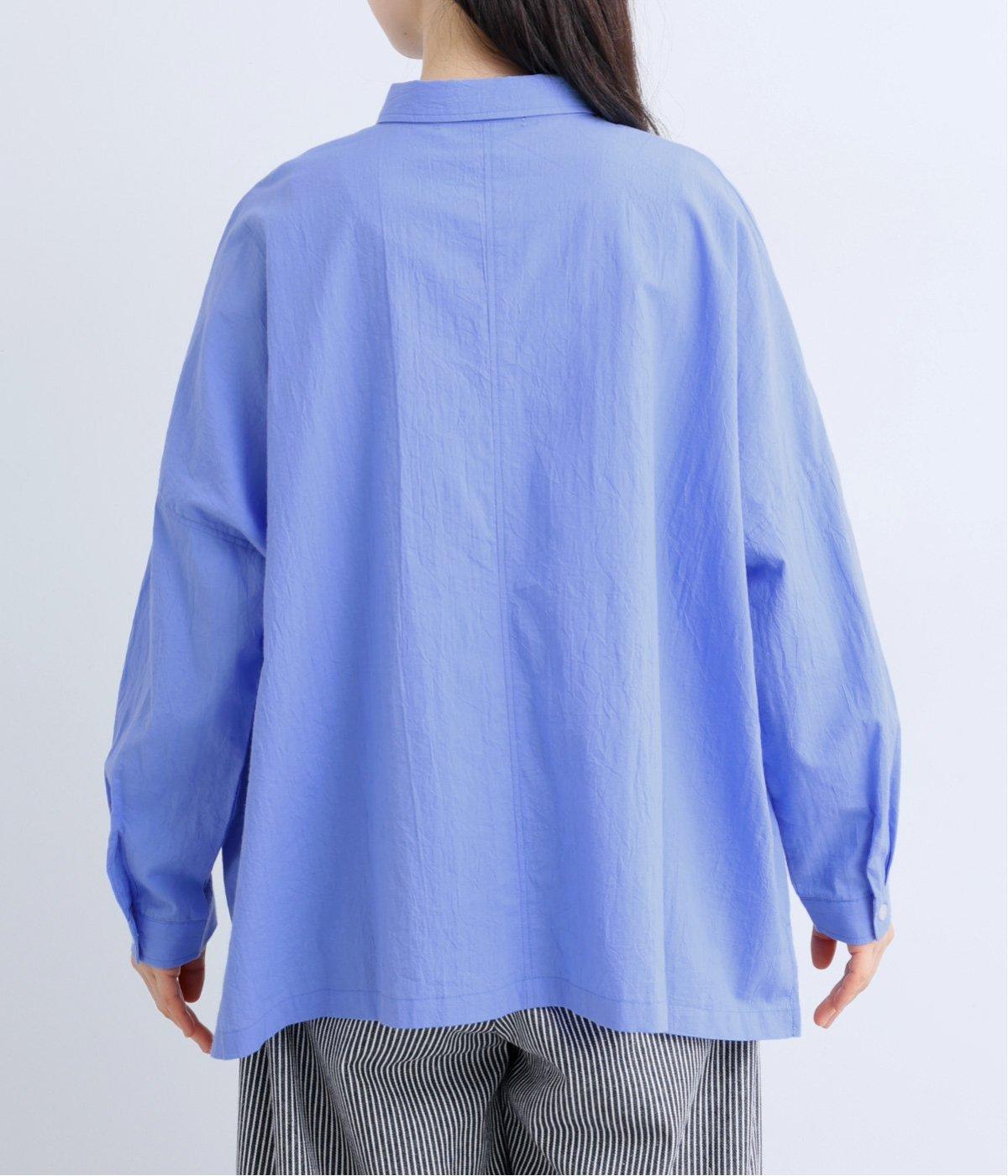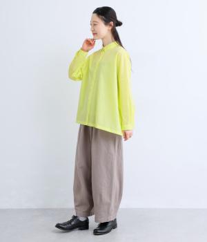ドロップショルダーのゆったりとしたシルエットに、小ぶりなレギュラーカラーを合わせ、かわいらしさをプラスしました。袖口にはタックを入れ、すっきりとした印象に。裾にはスリットを施し、動きやすさと抜け感を演出。やわらかな生地なので、ボタンを上までとめてもほどよいラフさがある一枚です。