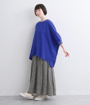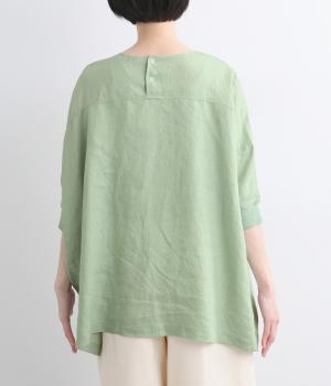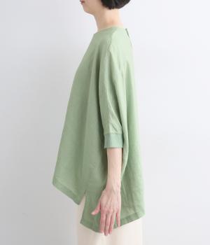 美しいドレープが映える、ワイドシルエットのプルオーバーです。リブ切り替えの袖口は、さっと腕まくりをするとボリューム感が出てまた違った印象を楽しめます。後ろネックに並んだシェルボタンが、バックスタイルに品のよいアクセントをプラス。