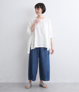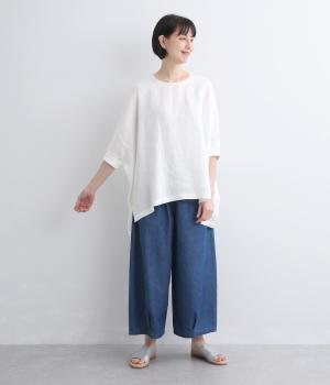 清涼感のあるさらりとしたリネン素材を使用しました。ドライな肌ざわりでありながら、やさしい温もりを感じられる天然素材。使うほどに風合いが増すのもこの生地の魅力です。