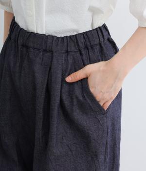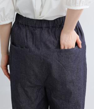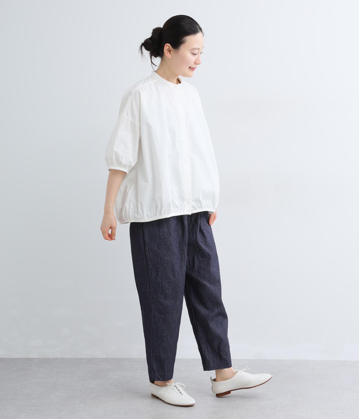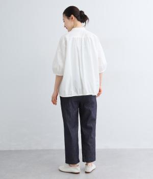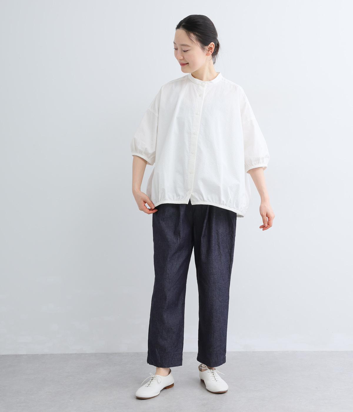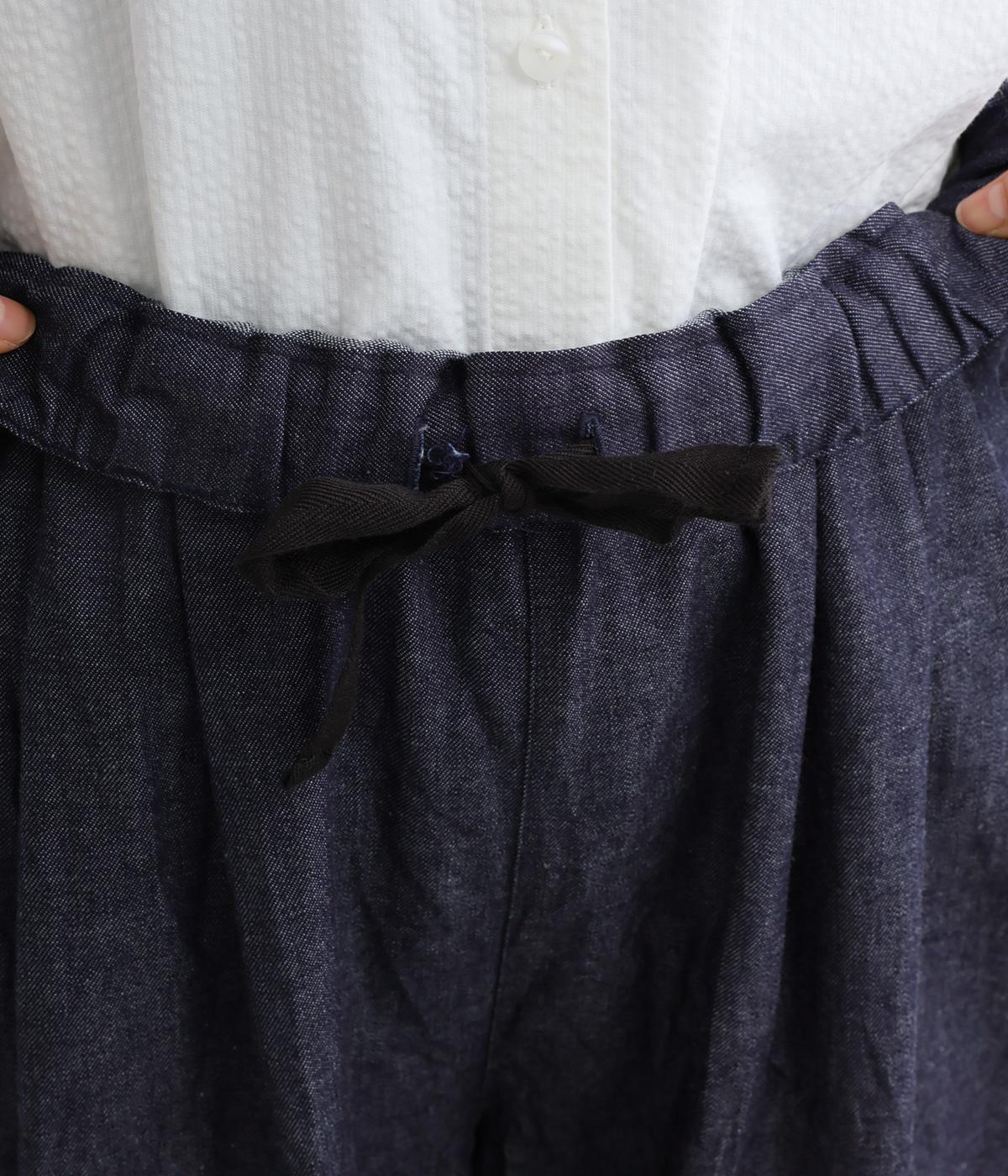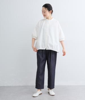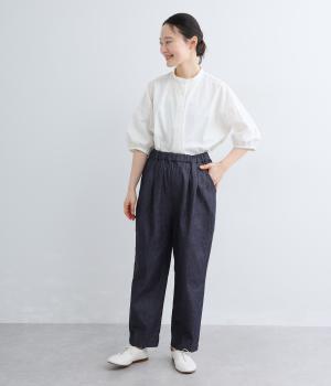 洗いざらしのような自然な風合いが魅力のコットンデニム生地を使用。ソフトではきやすく、適度なコシとハリ感がきれいなシルエットを描きます。