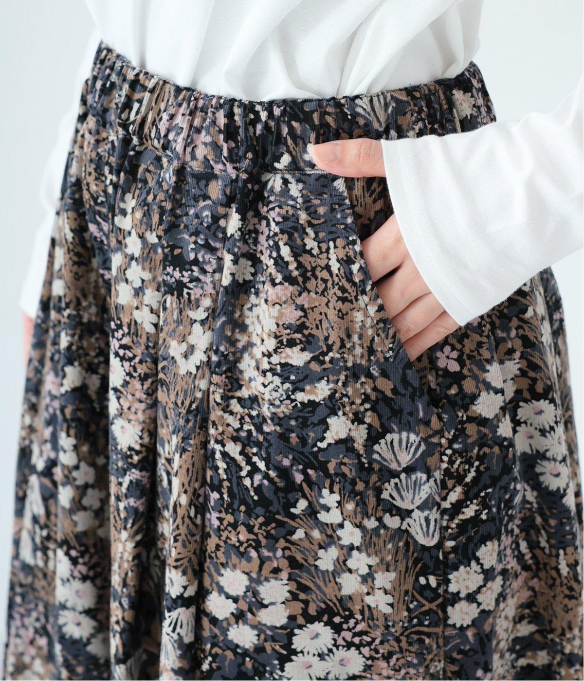 厚みをおさえたやわらかな風合いの細畝コーデュロイです。纏う枚数が増える秋冬にうれしい、とても軽やかな生地感。コーディネートのアクセントになるフラワープリントを全体にあしらっています。