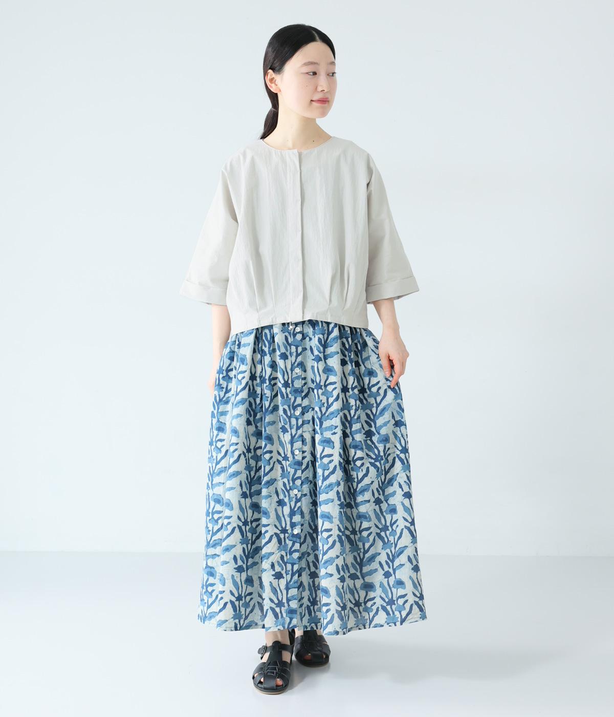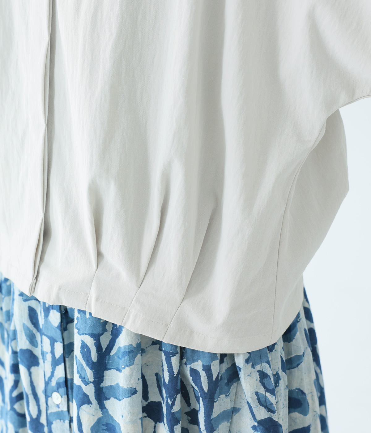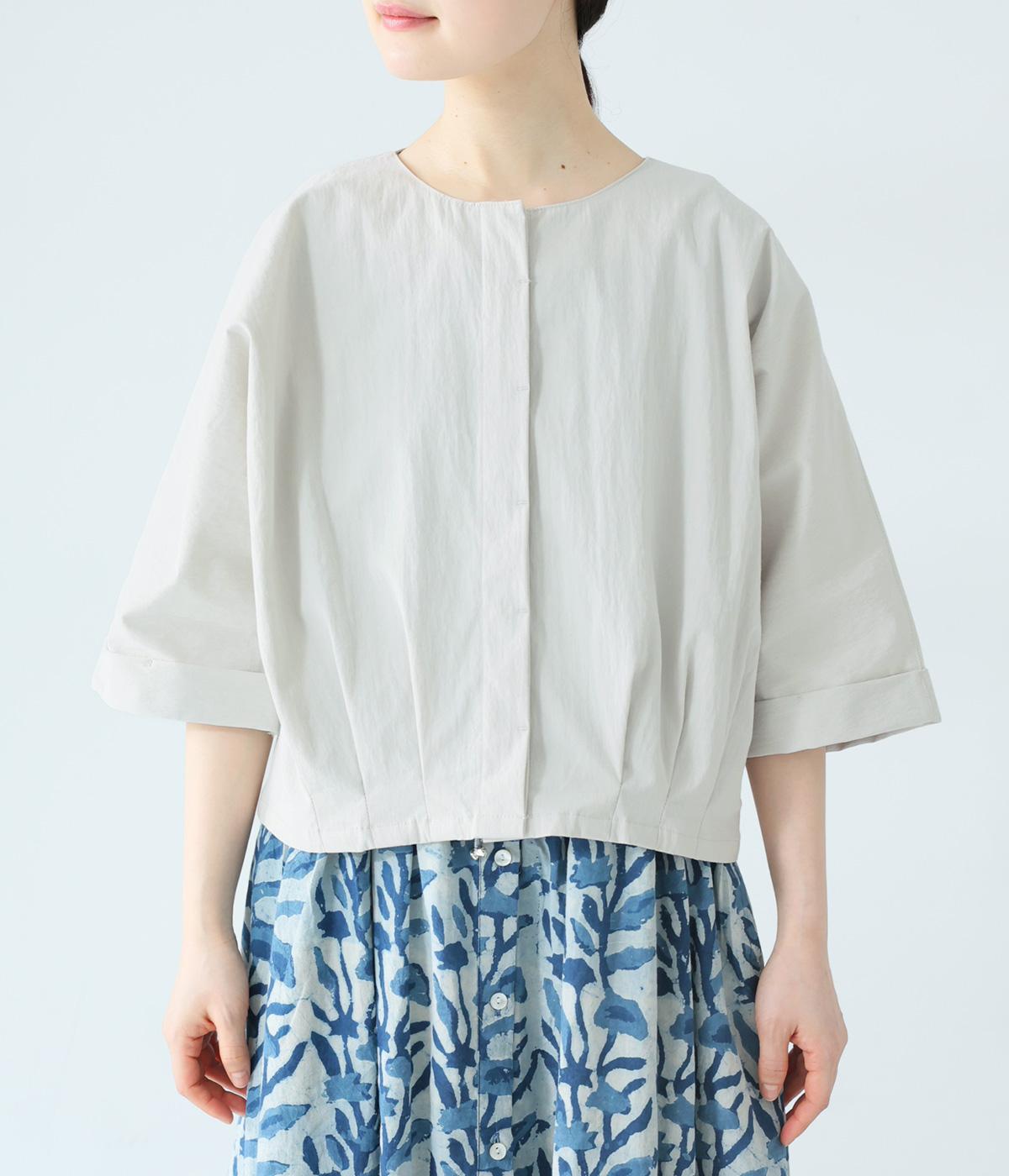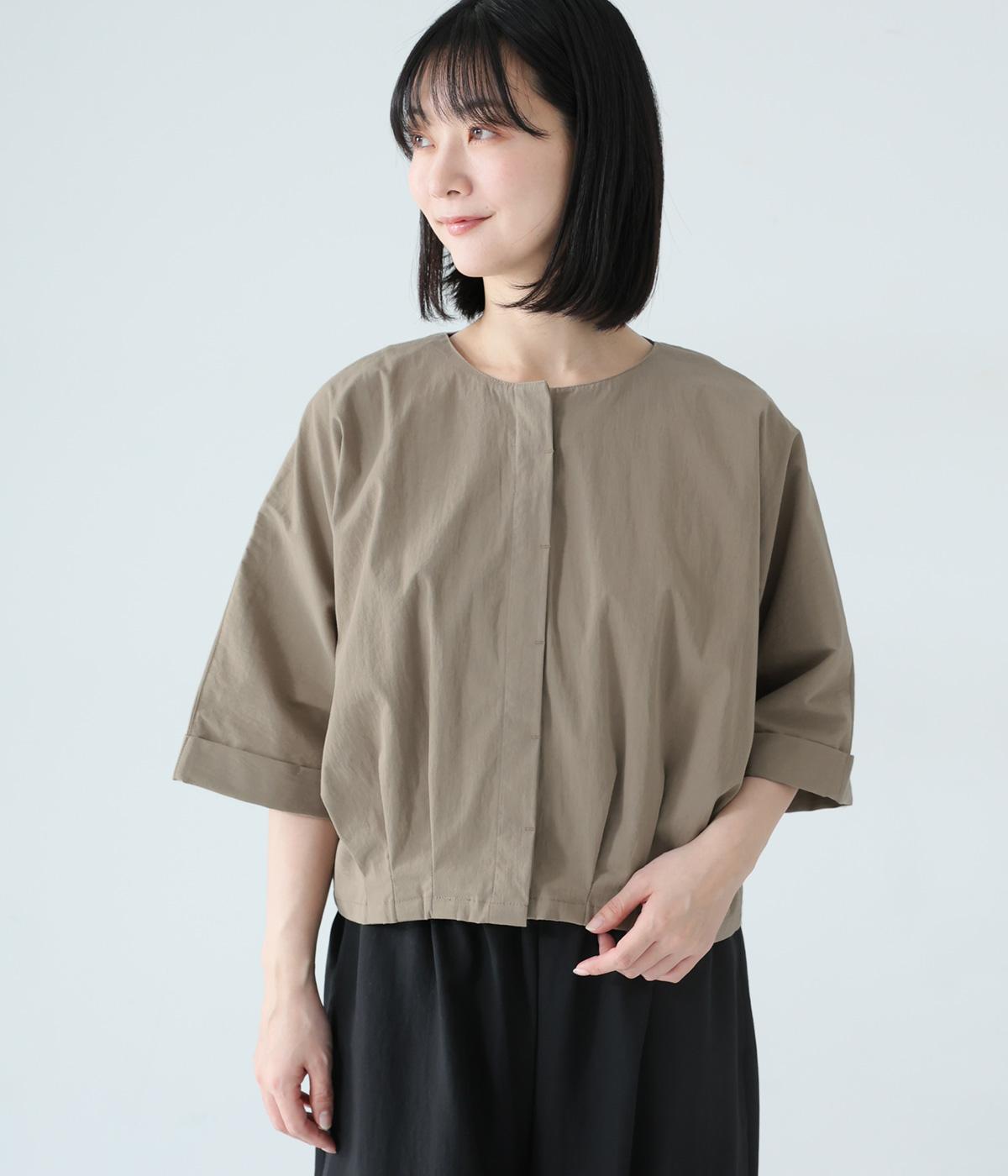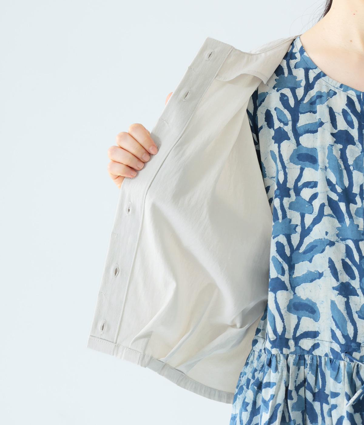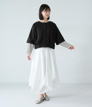 ゆったりとしたドルマンスリーブの七分袖ジャケット。比翼仕立てのフロントがすっきりとした印象を添え、裾にほどこしたタックがやわらかな立体感を生み出します。ほどよいゆとりで、軽やかに羽織れます。