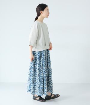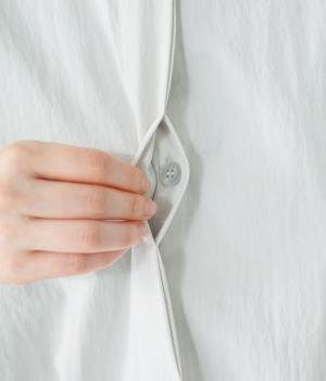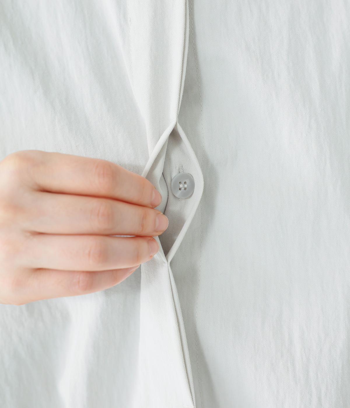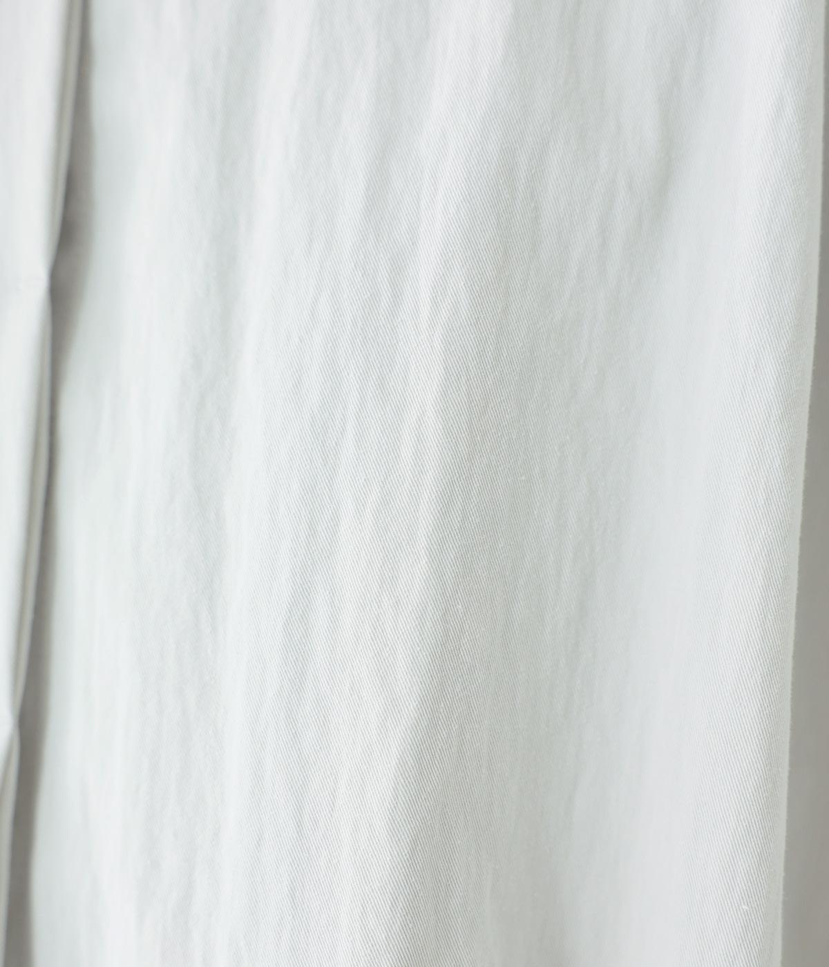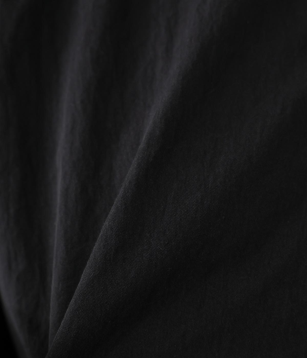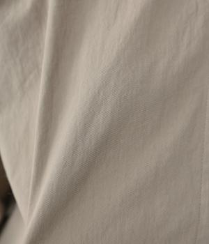コットンのやさしい肌ざわりに、ナイロンのほどよいハリと耐久性を備えた混紡生地。厚すぎず薄すぎないほどよい厚みで、軽やかな着心地に仕上げています。