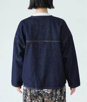 すっきりとしたデニム生地の見た目で、あたたかな着用感をたのしめる裏ボア素材のジャケット。首元に抜け感を添えるノーカラー仕様で大人らしく仕上げました。随所のステッチや左胸のパッチポケットがアクセントになっています。