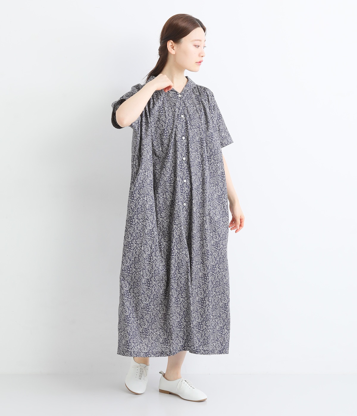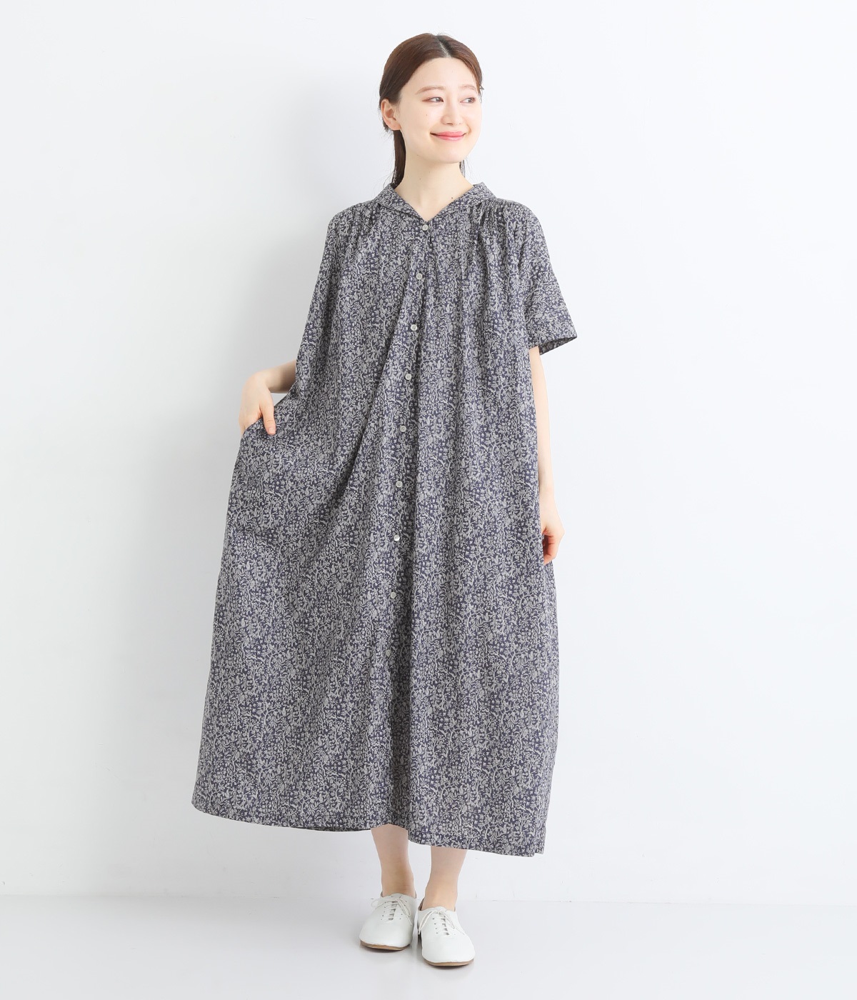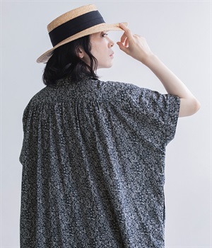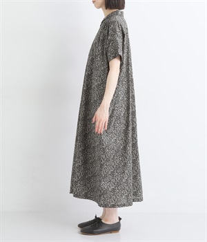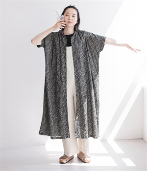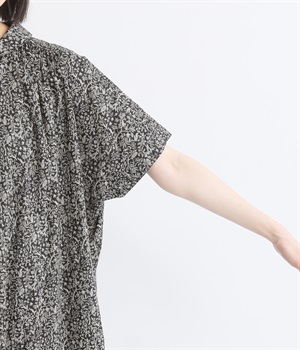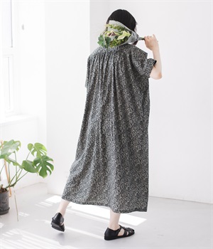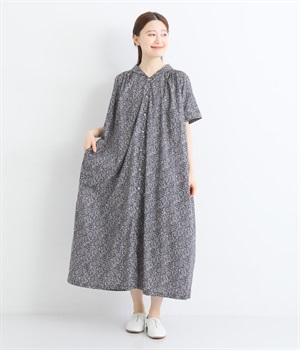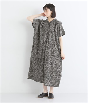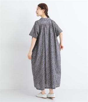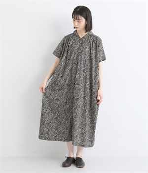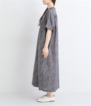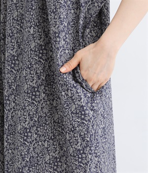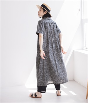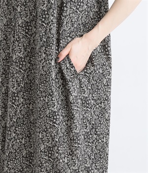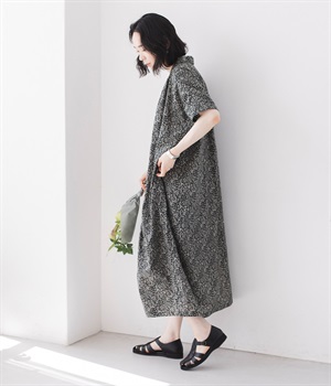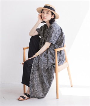 柄物が苦手な方も手に取りやすい控えめな配色が、大人の装いにすっと馴染みます。さらりと軽い肌触りで、真夏に活躍するワンピースです。