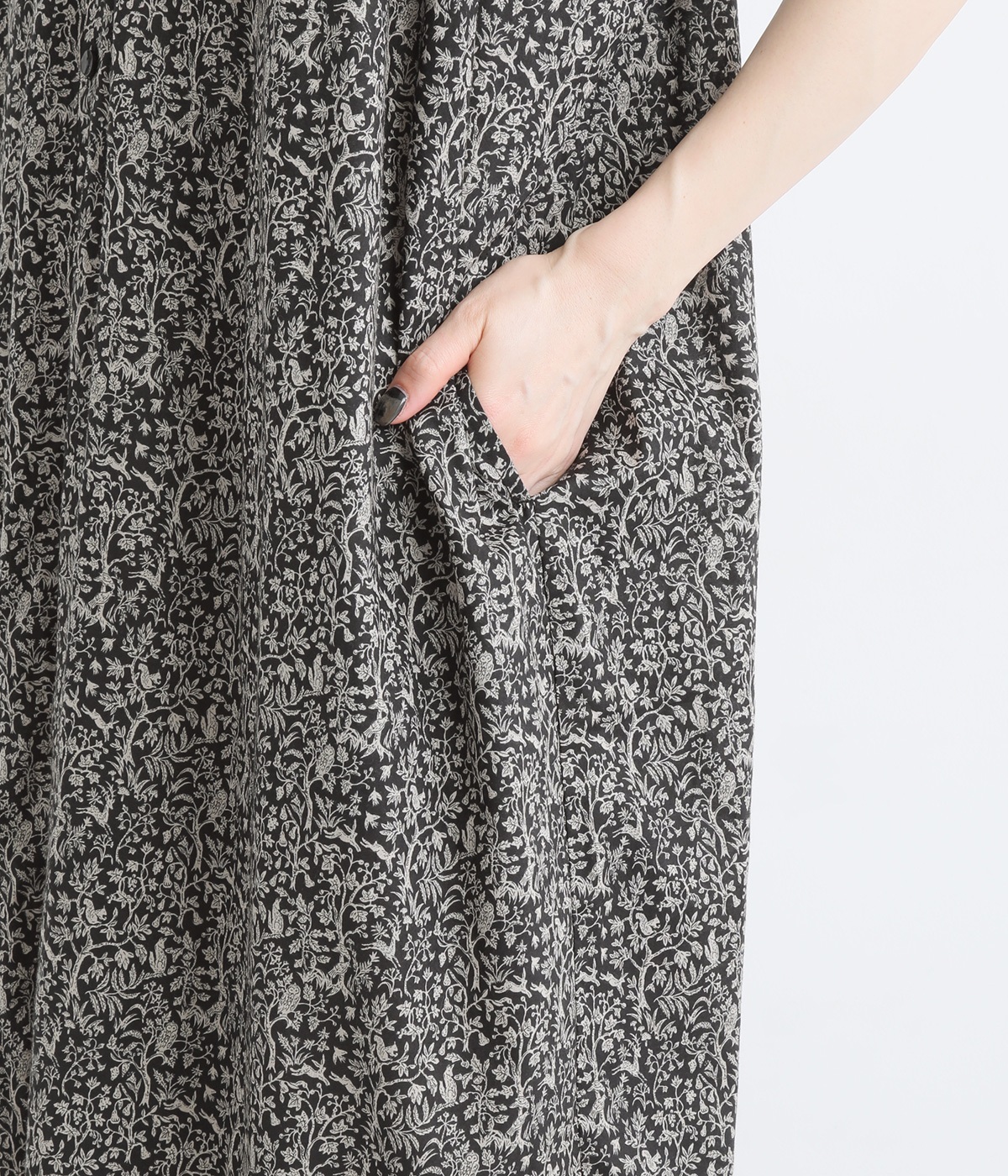 森の暮らし柄 ショールカラーワンピース