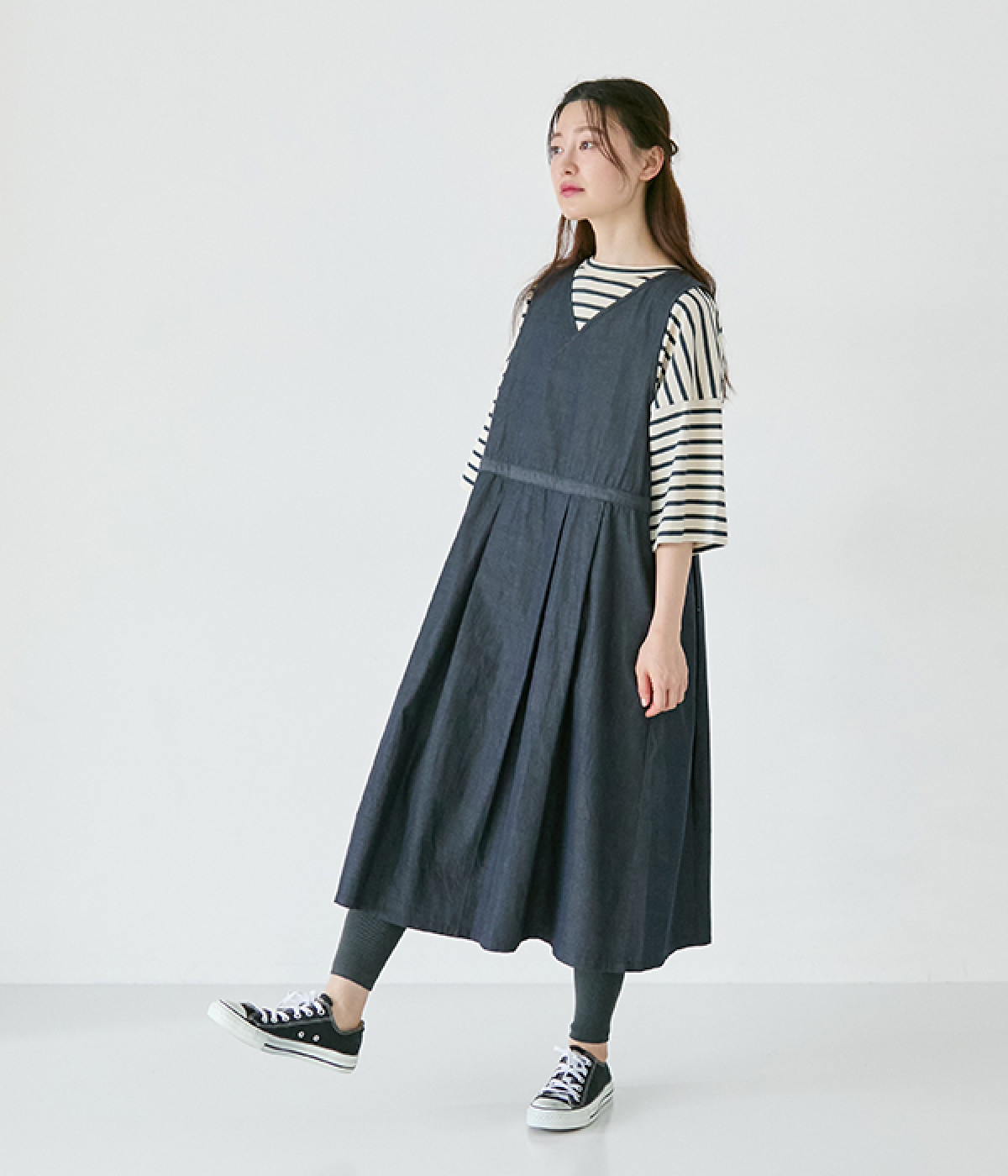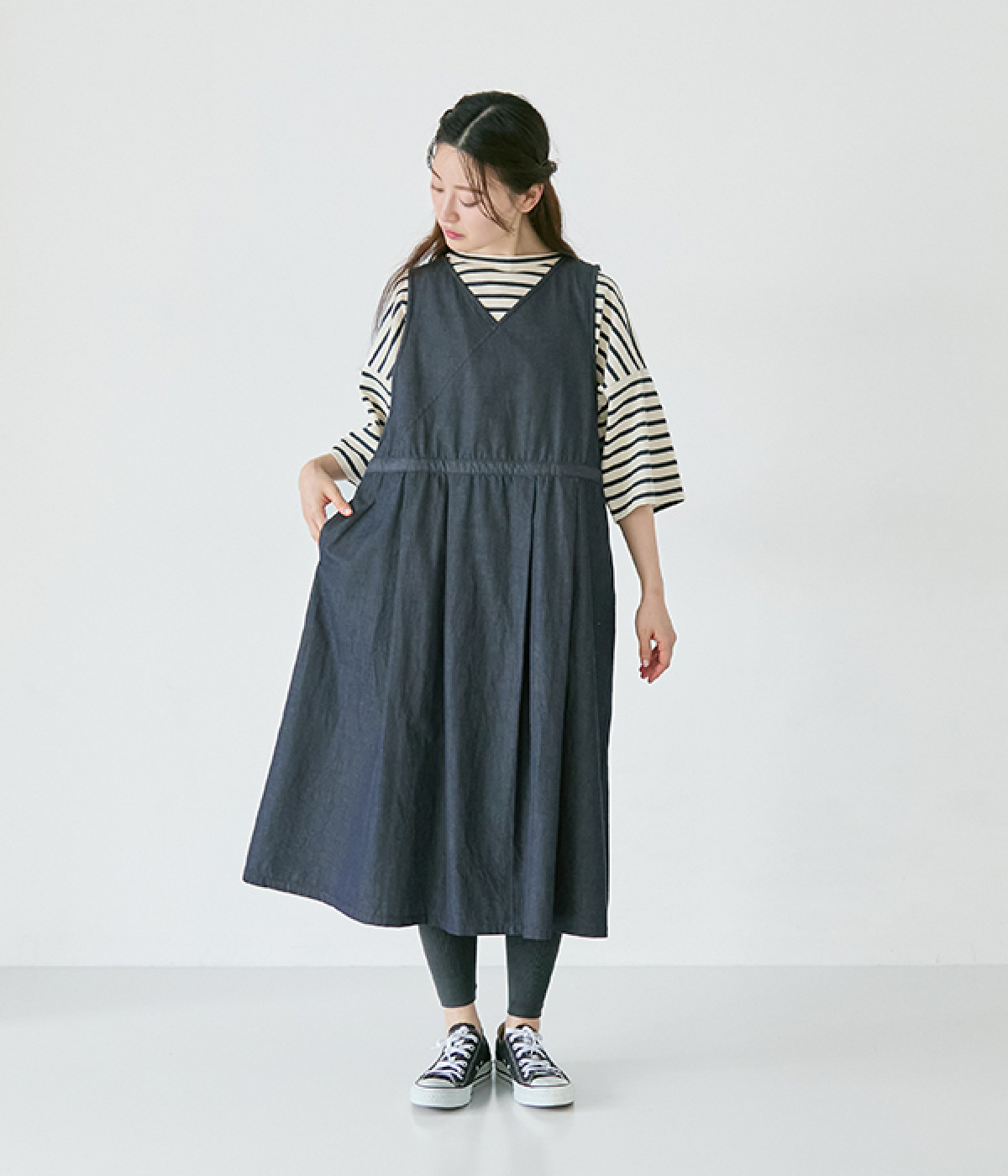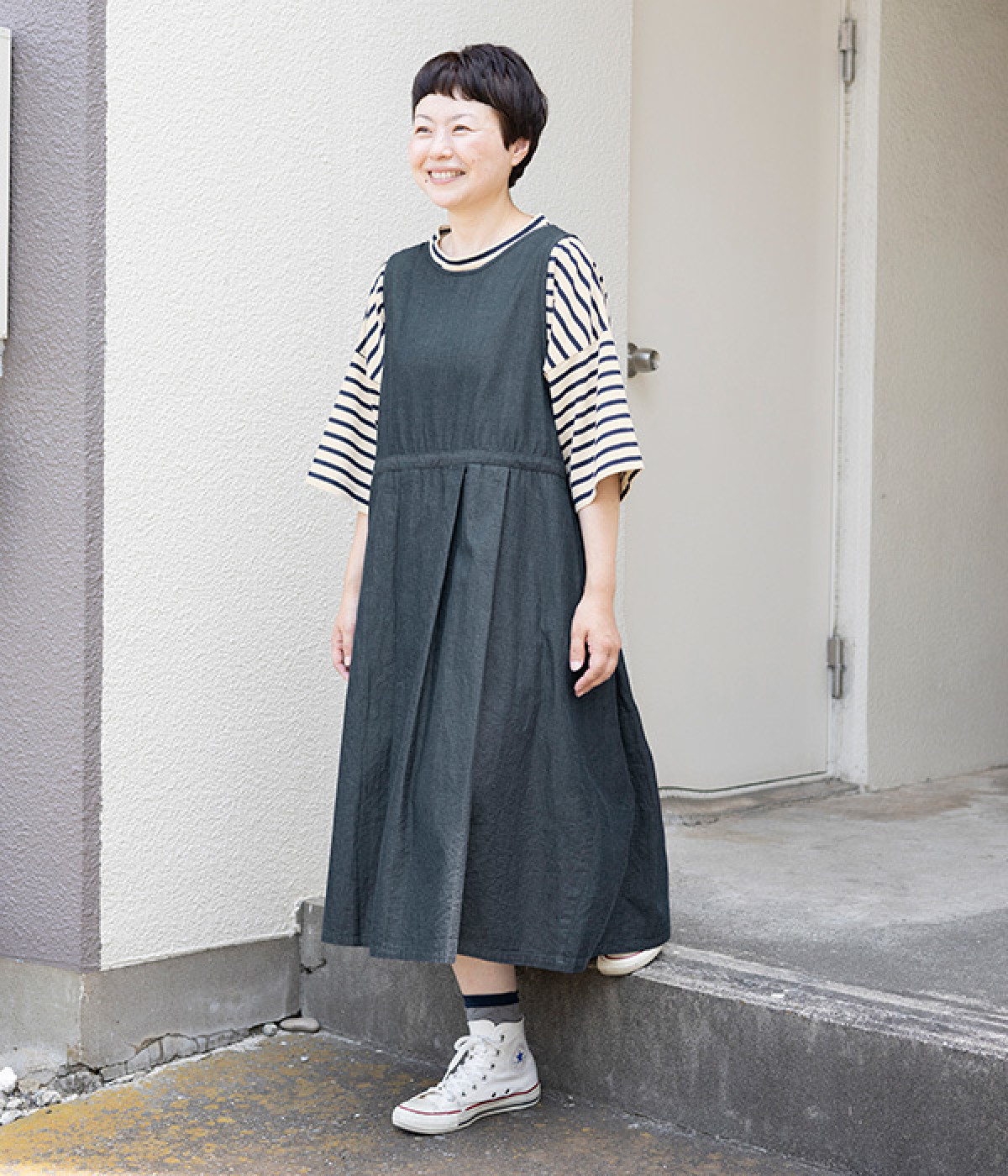 装いにメリハリを生み出す、ウエスト切り替えラインが◎