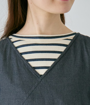 クルーネックとVネック、どちらを前にしても着られる2way