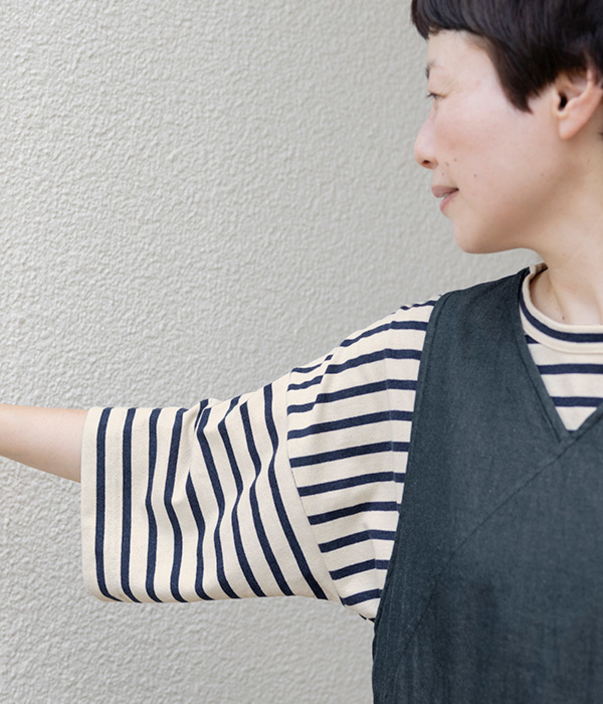 ドルマンブラウスにも合わせやすい、広々としたアームホール