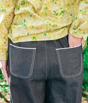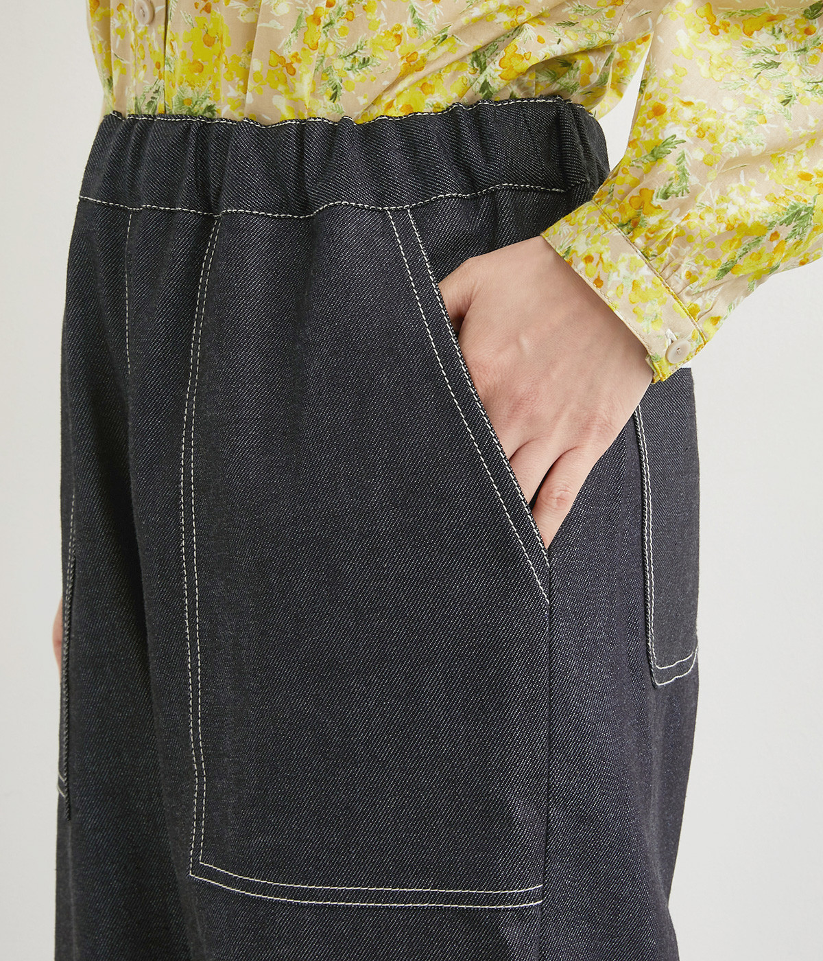 目を惹く配色ステッチでデニムスタイルをライトな印象に
