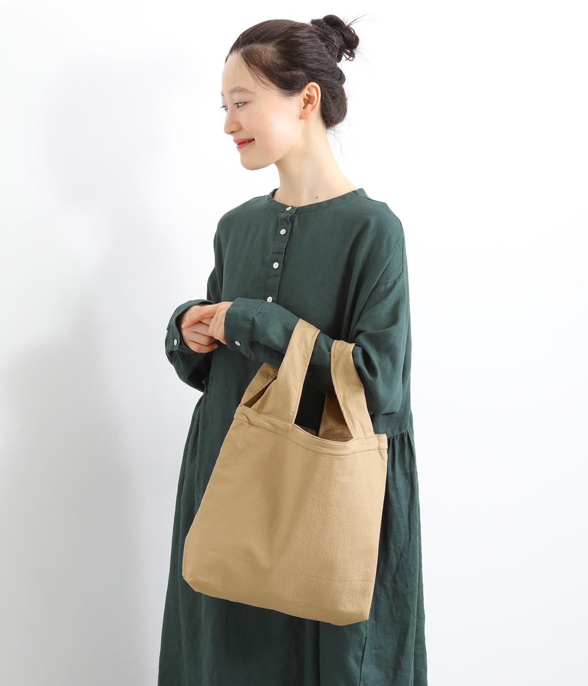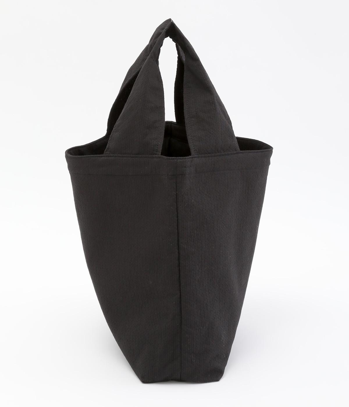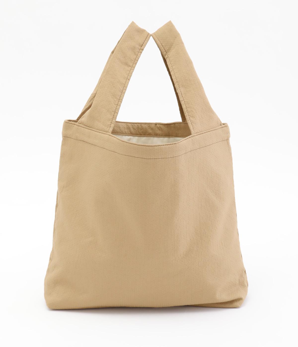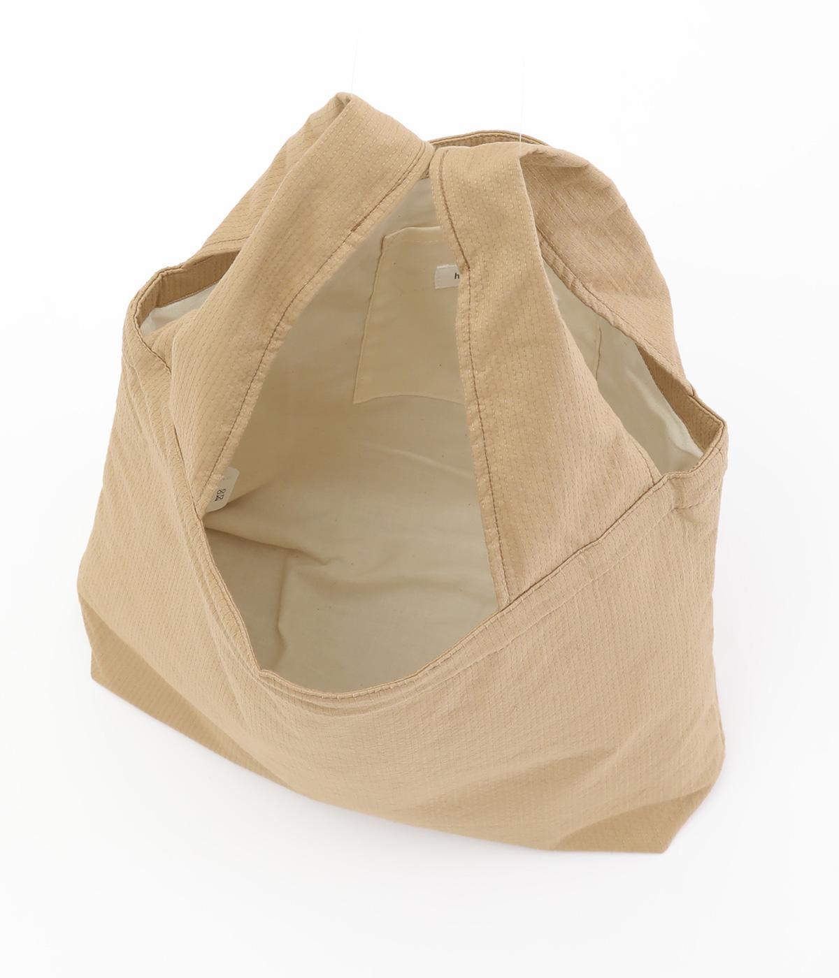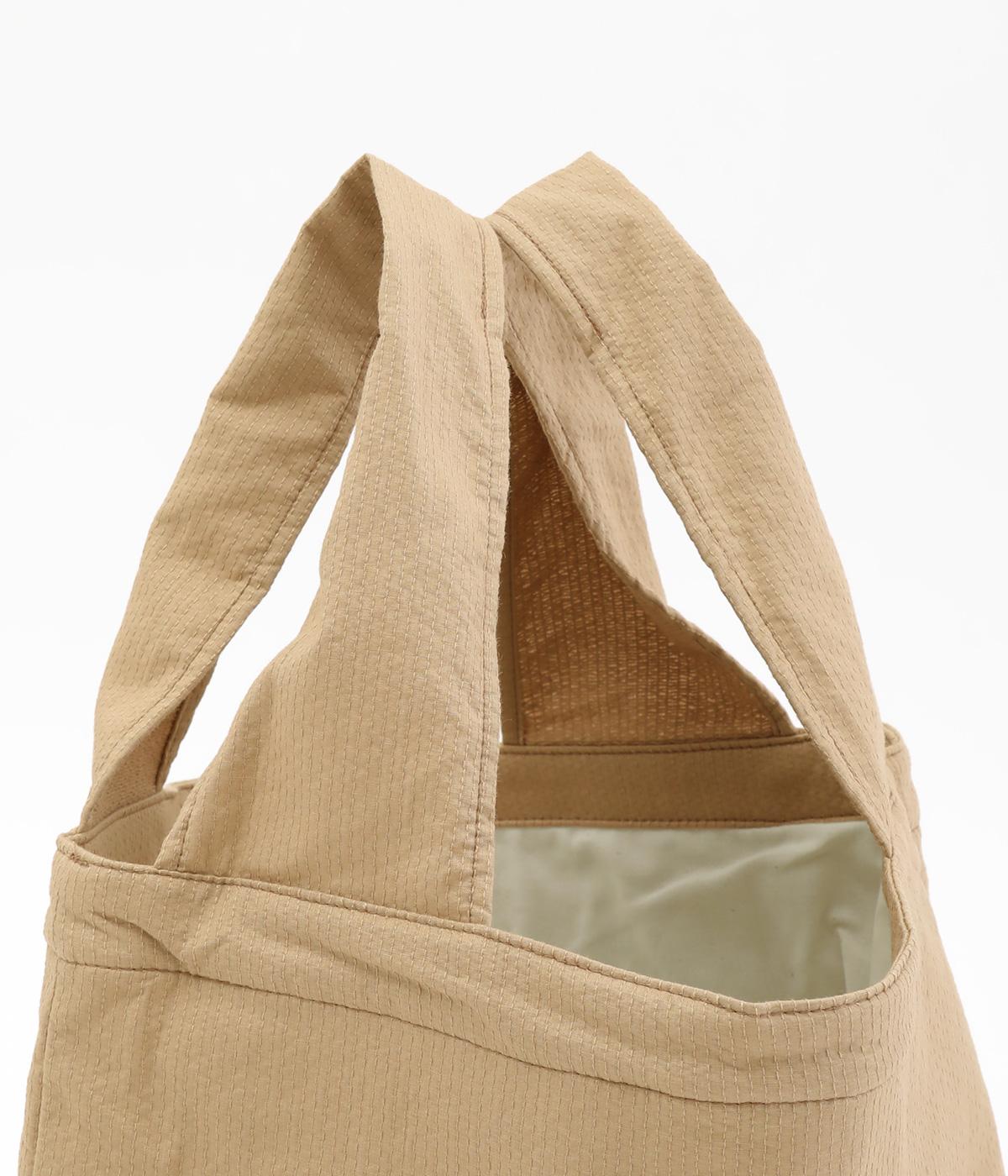 ストライプ状に細かく入ったステッチがポイントのコットン生地。軽くてやわらかく、折り畳むとコンパクトになるのでエコバッグのように持ち歩くこともできます。