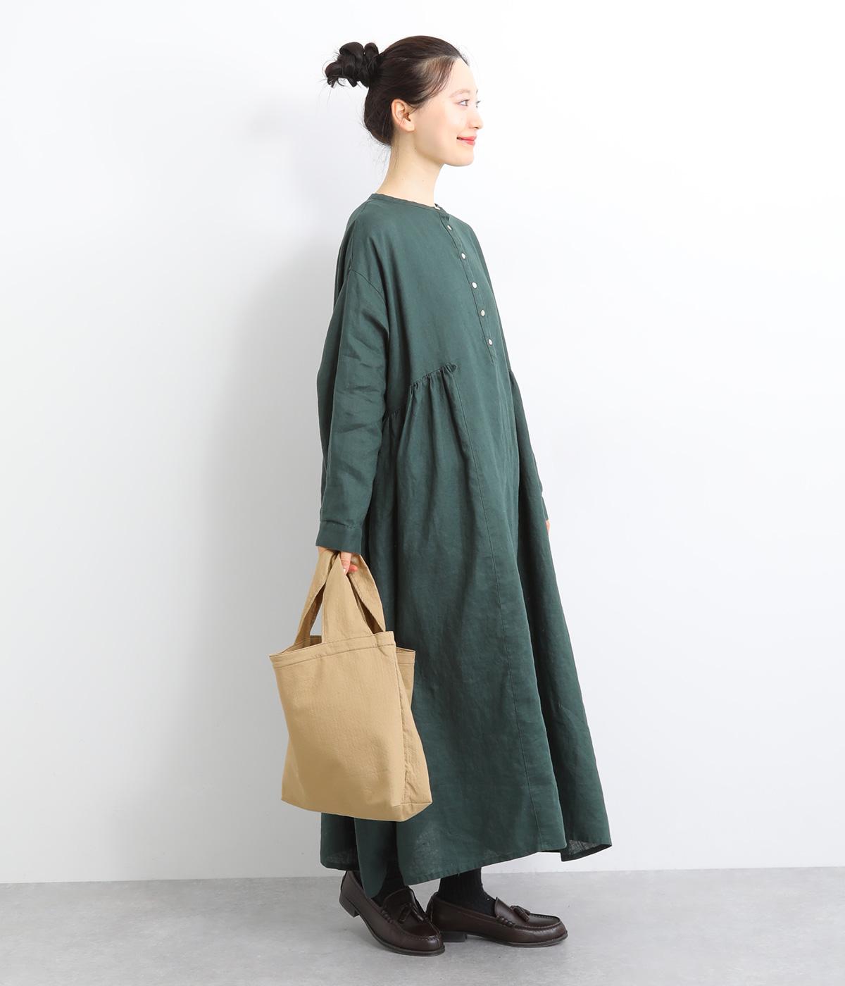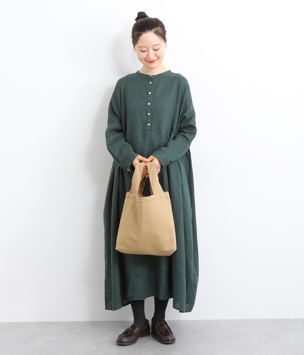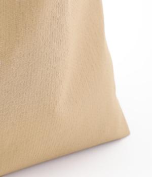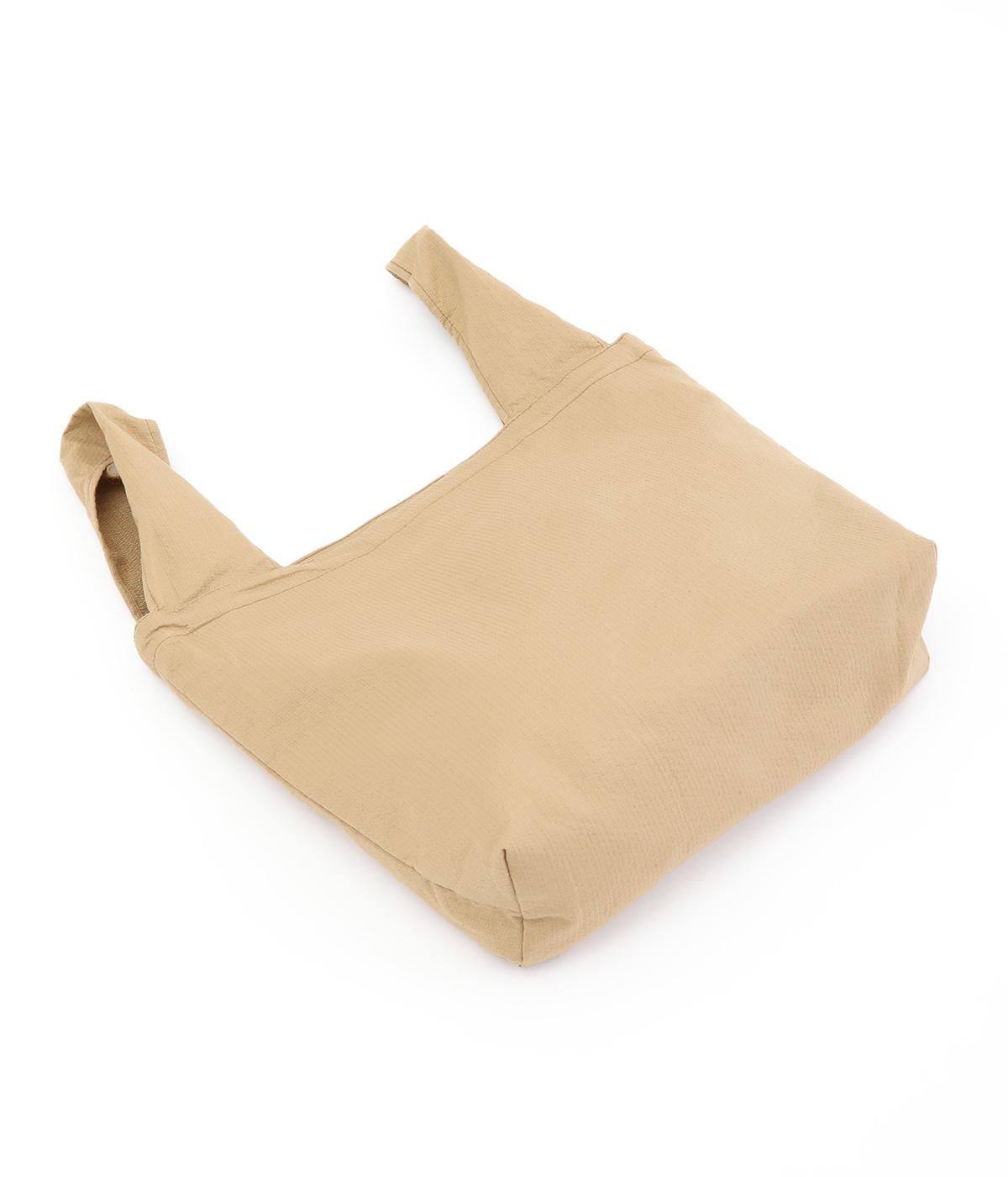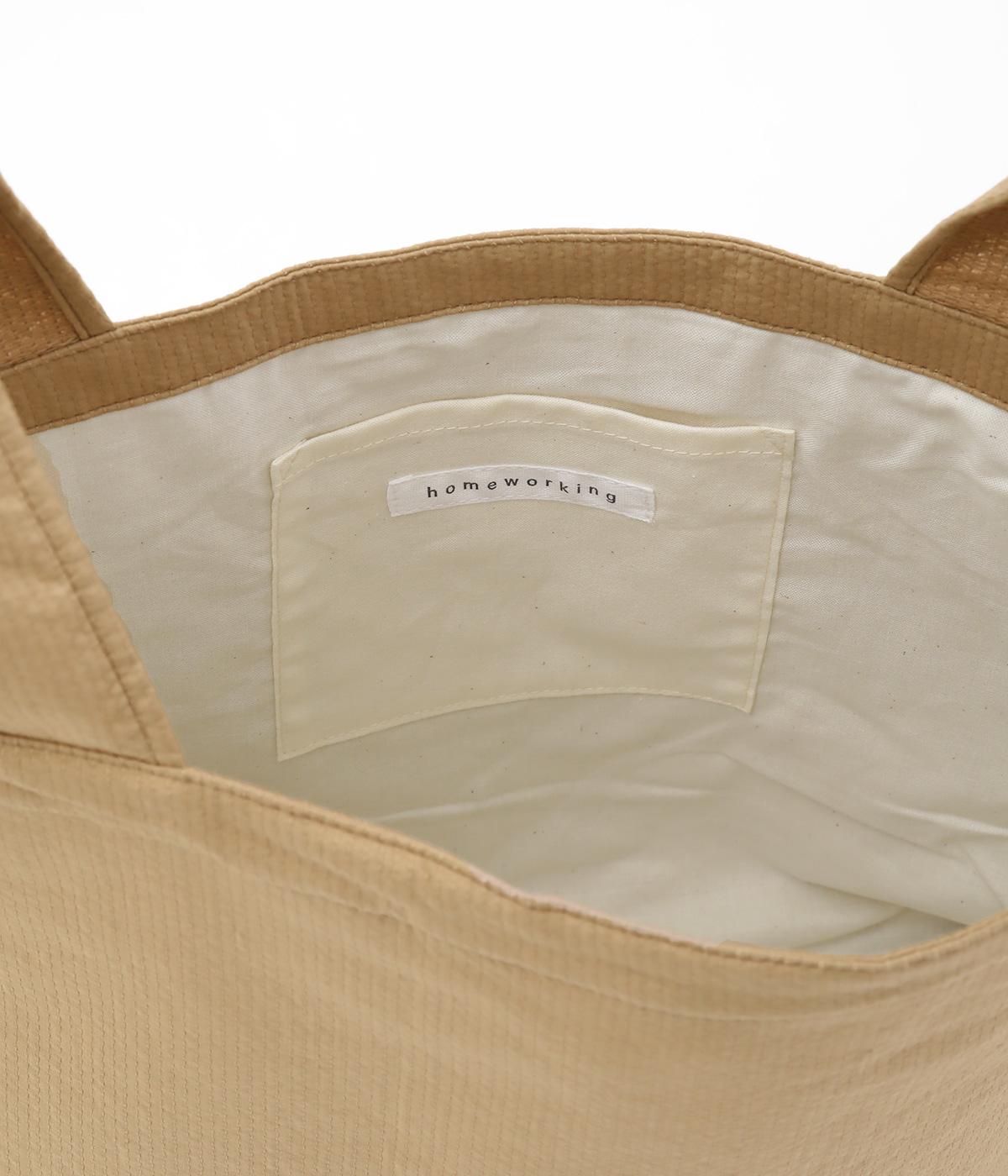 ストライプ状に細かく入ったステッチがポイントのコットン生地。軽くてやわらかく、折り畳むとコンパクトになるのでエコバッグのように持ち歩くこともできます。